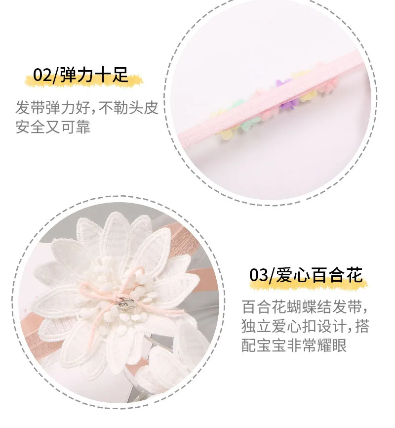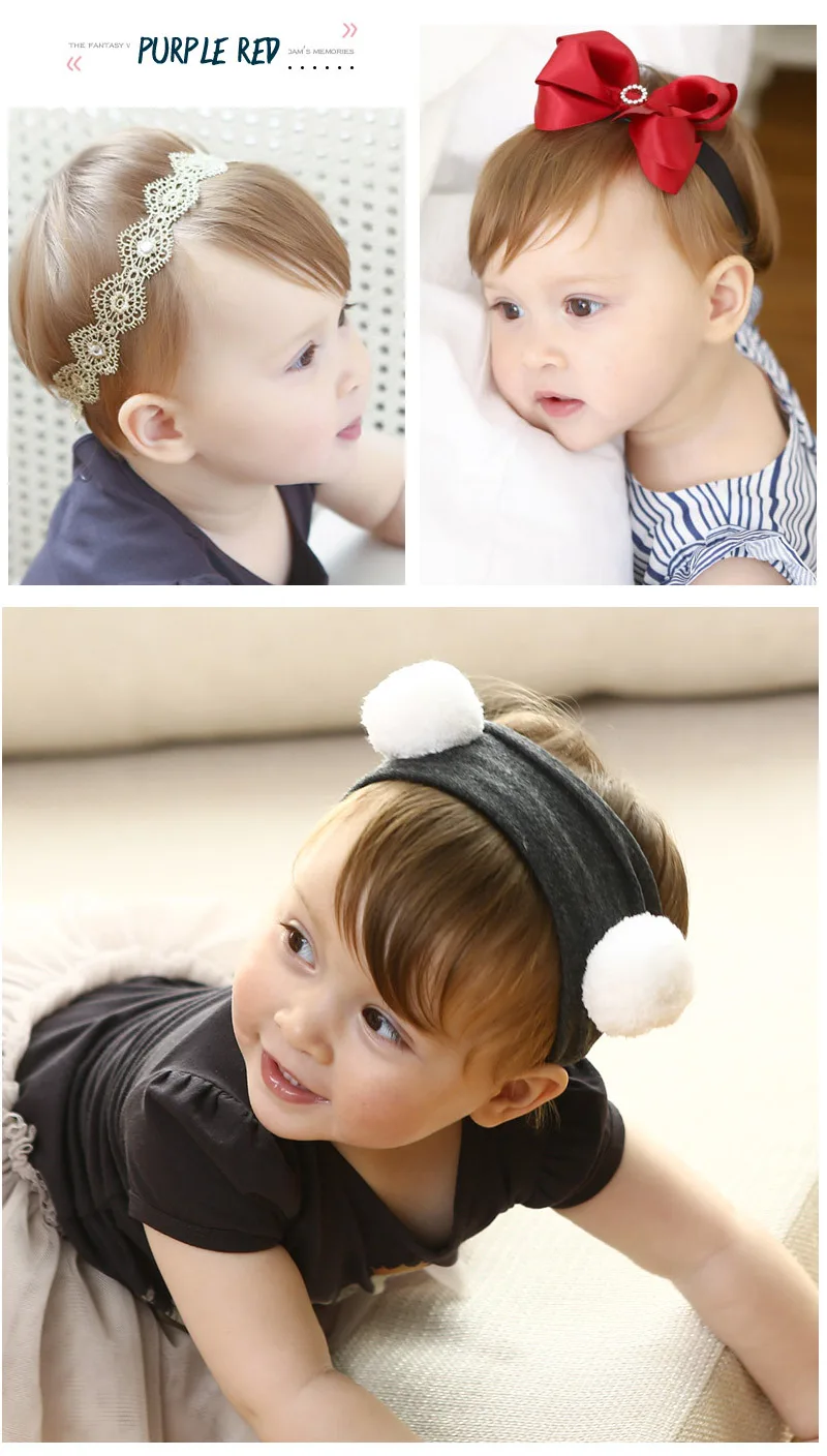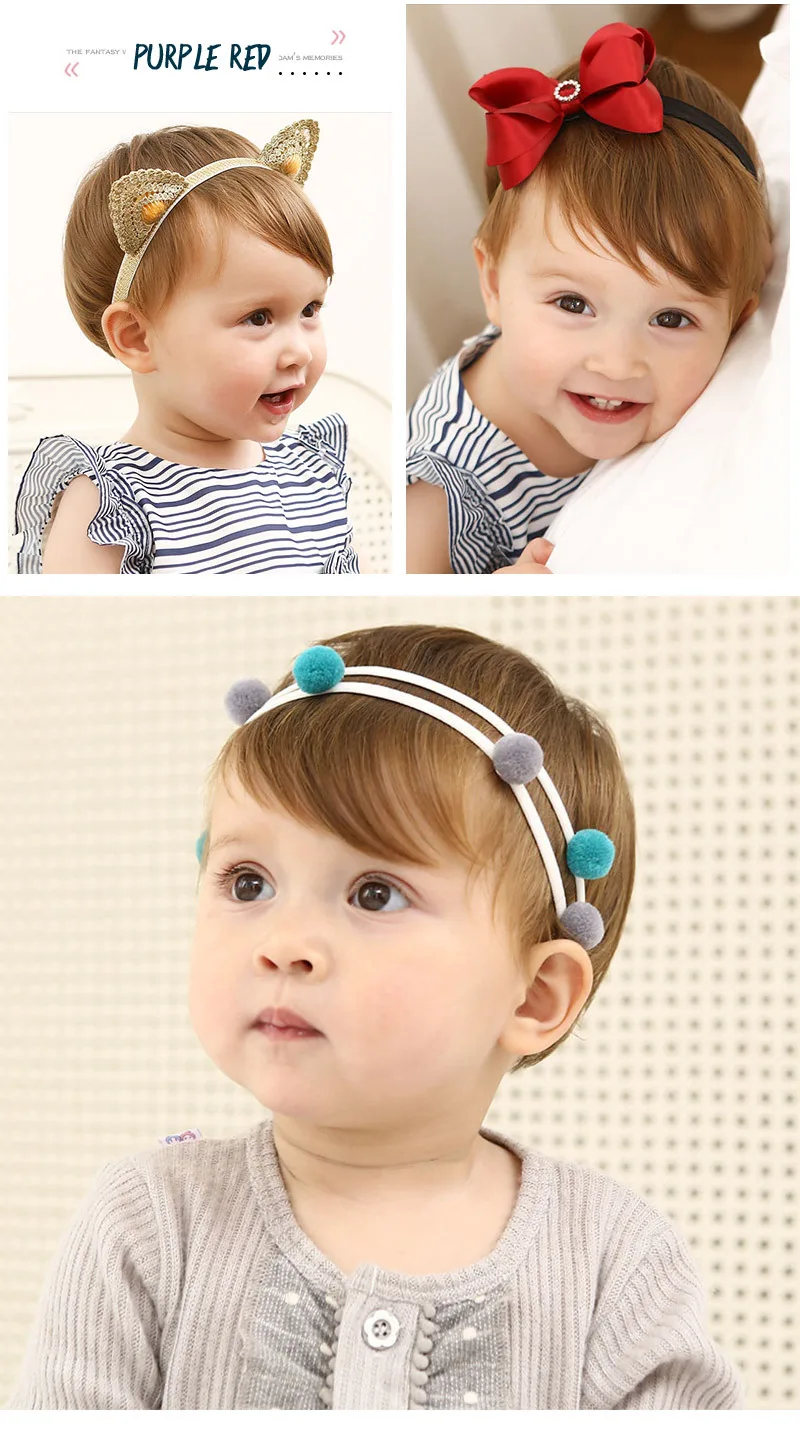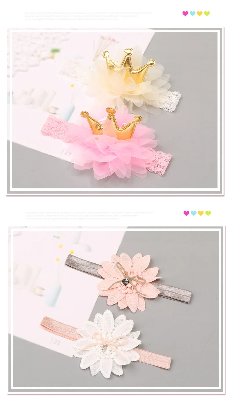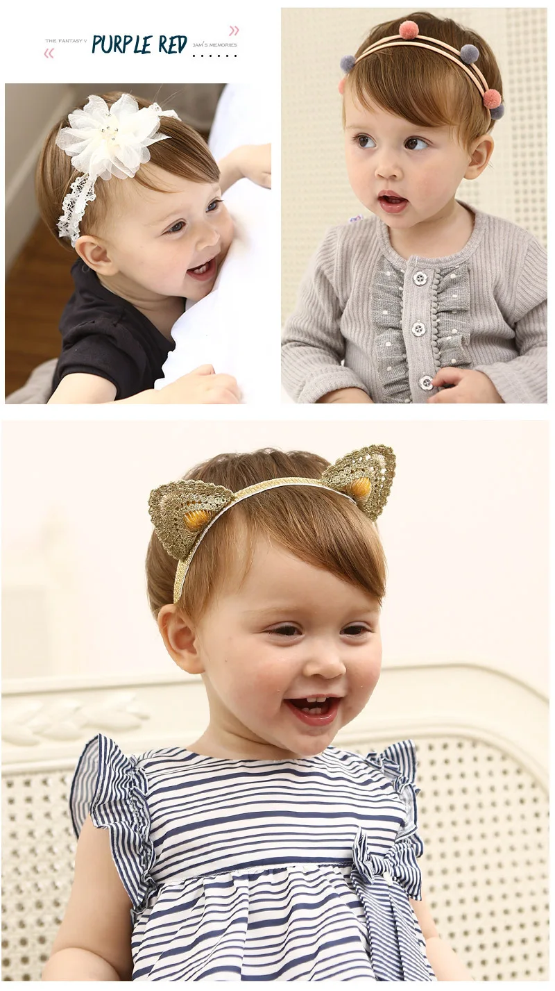 Nuevas diademas florales de encaje para bebé, diademas de princesa con orejas de pompones para niñas, accesorios para el cabello para fotografía de recién nacidos