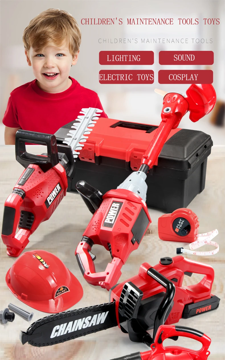 Comprar Nuevas herramientas de mantenimiento, sierra eléctrica, soplador de césped, cortacésped, herramientas de mantenimiento de simulación, juego de simulación con juguetes de jardín para niños, regalo