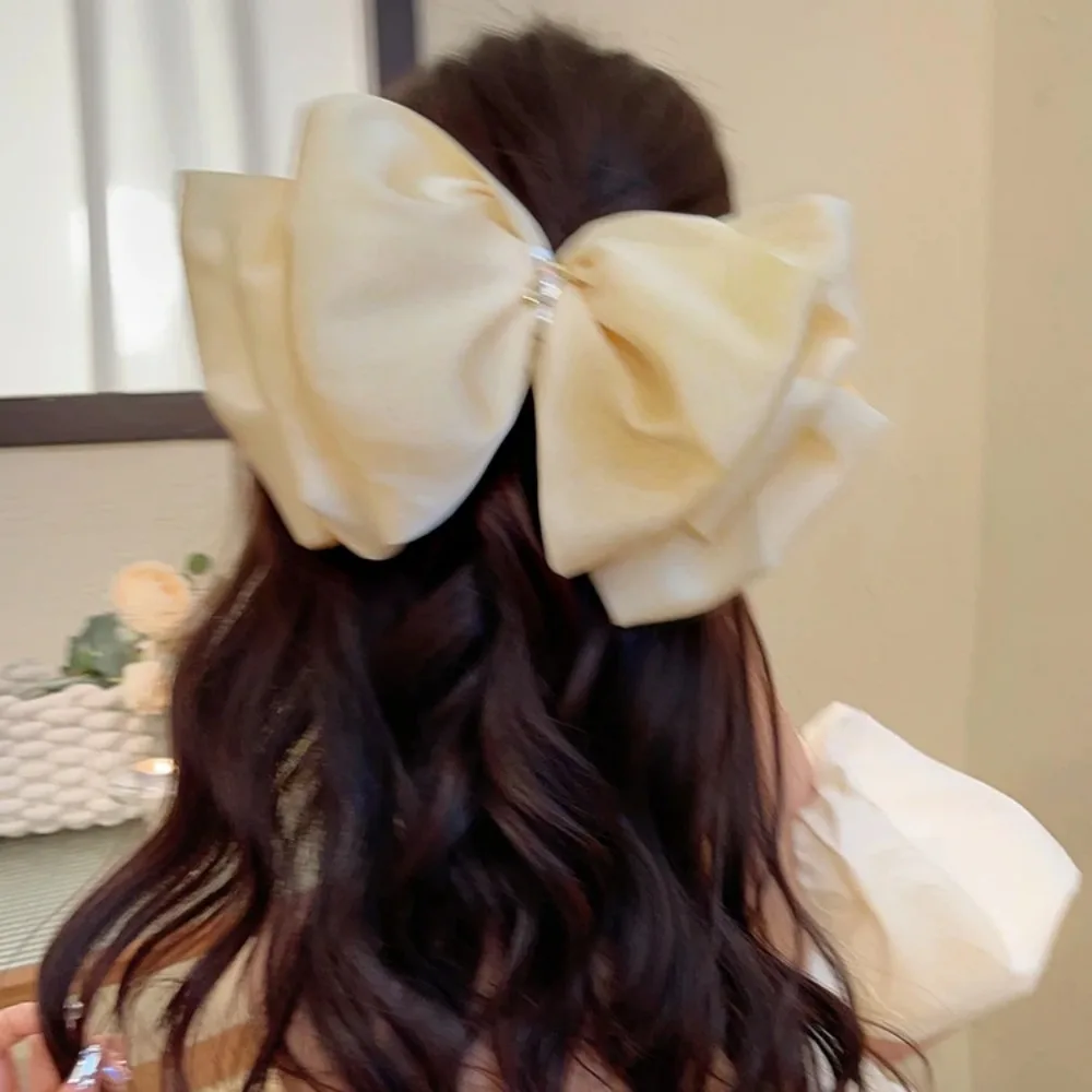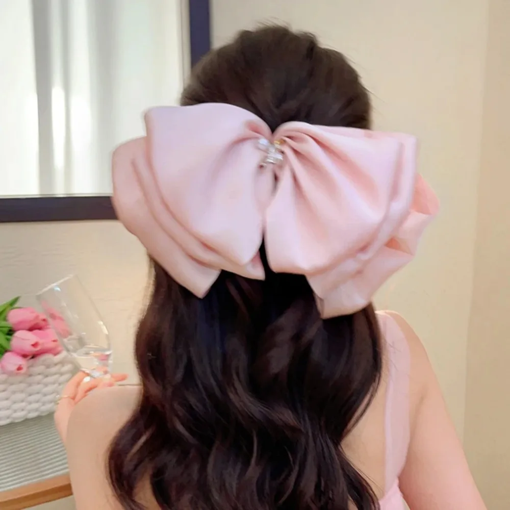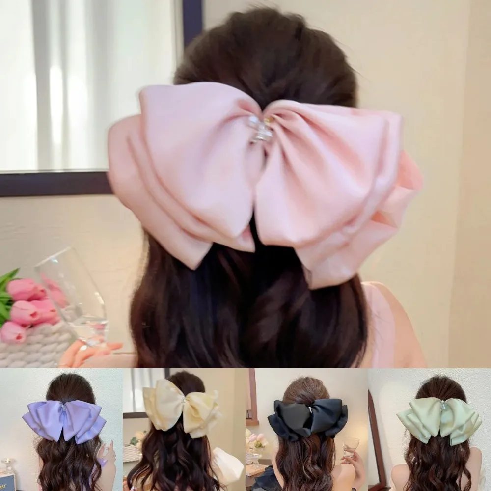 Nuevas horquillas con lazo, pinzas para el cabello con lazo grande de Color sólido, pasadores de satén suave para mujeres y niñas, accesorios para el cabello para fiesta y boda