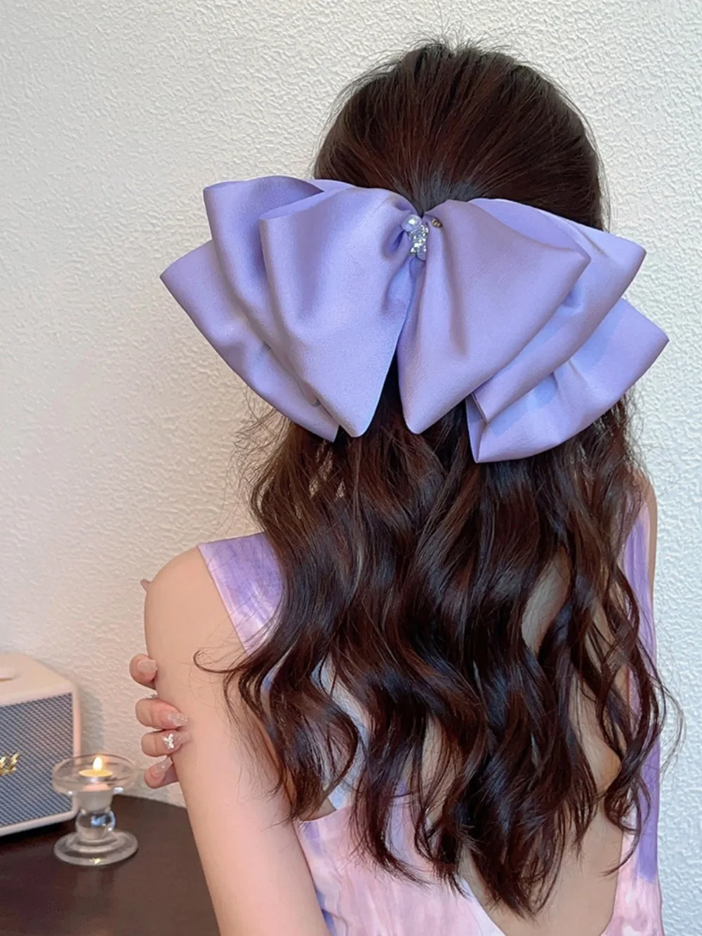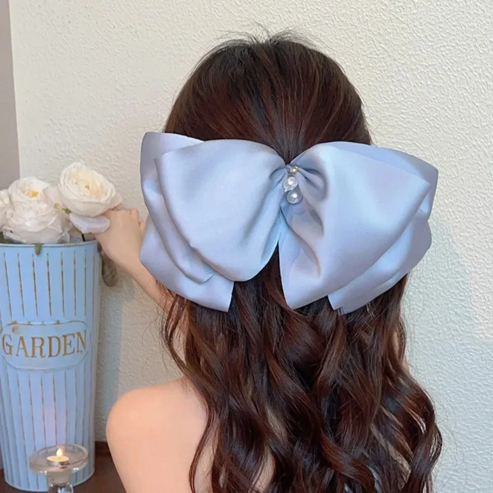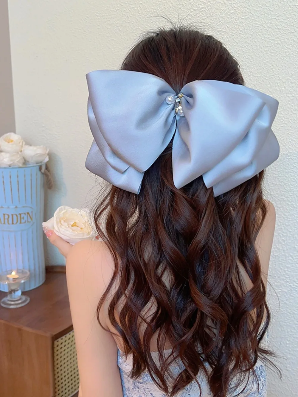 Nuevas horquillas con lazo, pinzas para el cabello con lazo grande de Color sólido, pasadores de satén suave para mujeres y niñas, accesorios para el cabello para fiesta y boda