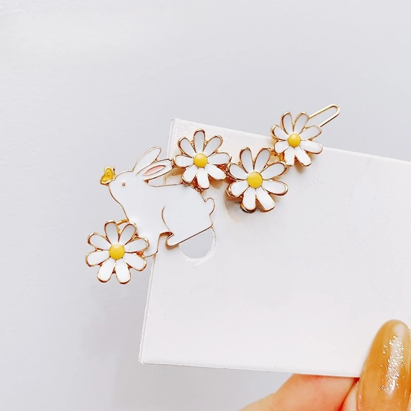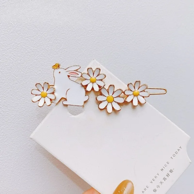 Nuevas pinzas para el cabello de conejo esmaltadas hechas a mano: detalles de margaritas, pasador estilo hada, accesorios para el cabello lindos y delicados y versátiles.