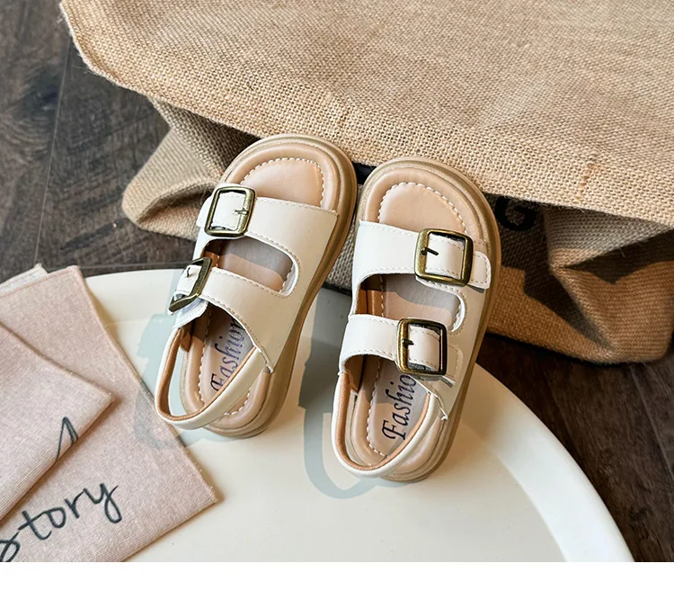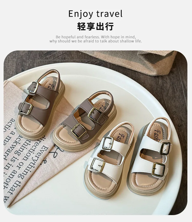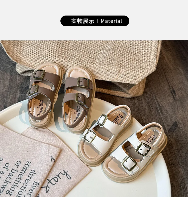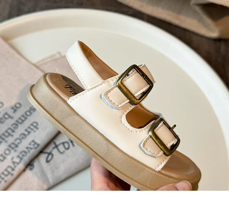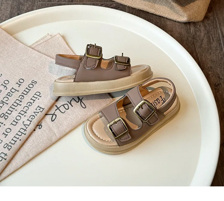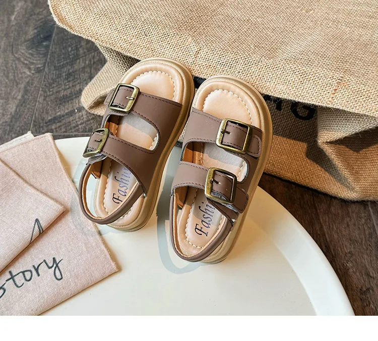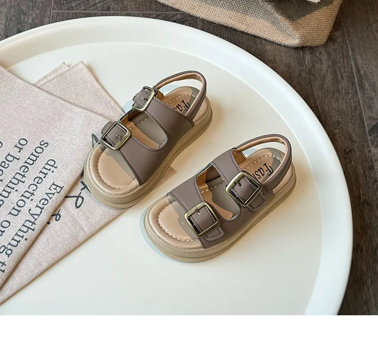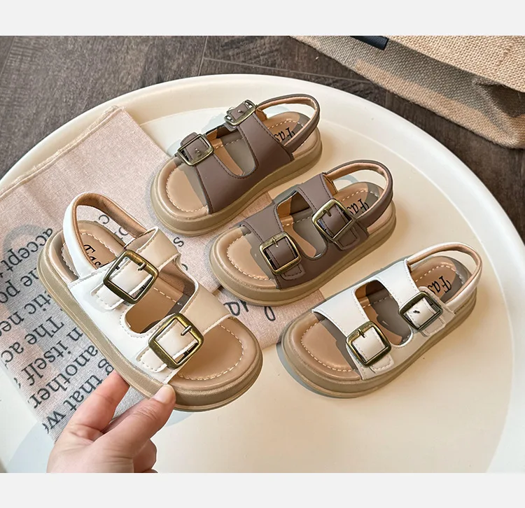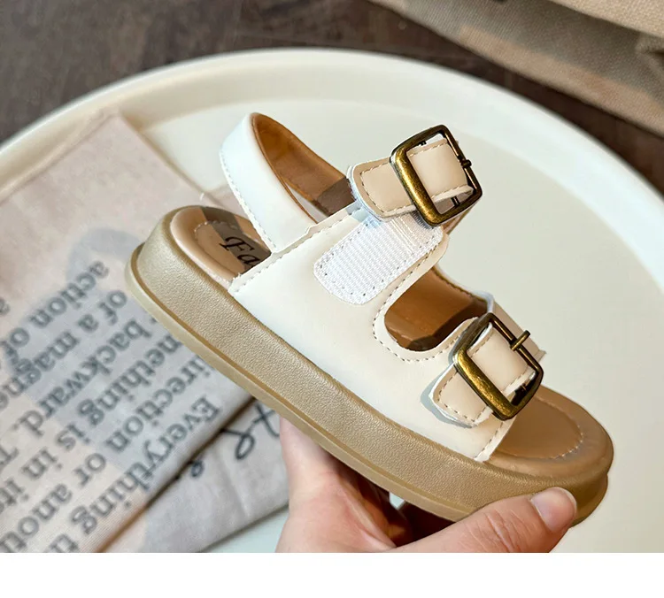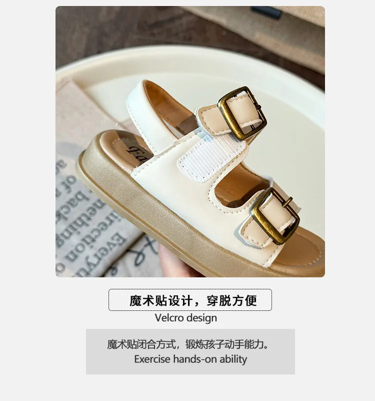 Nuevas sandalias de moda versátiles y transpirables para niña, zapatos cómodos informales para playa para chico, sandalias antideslizantes suaves Retro simples para niño
