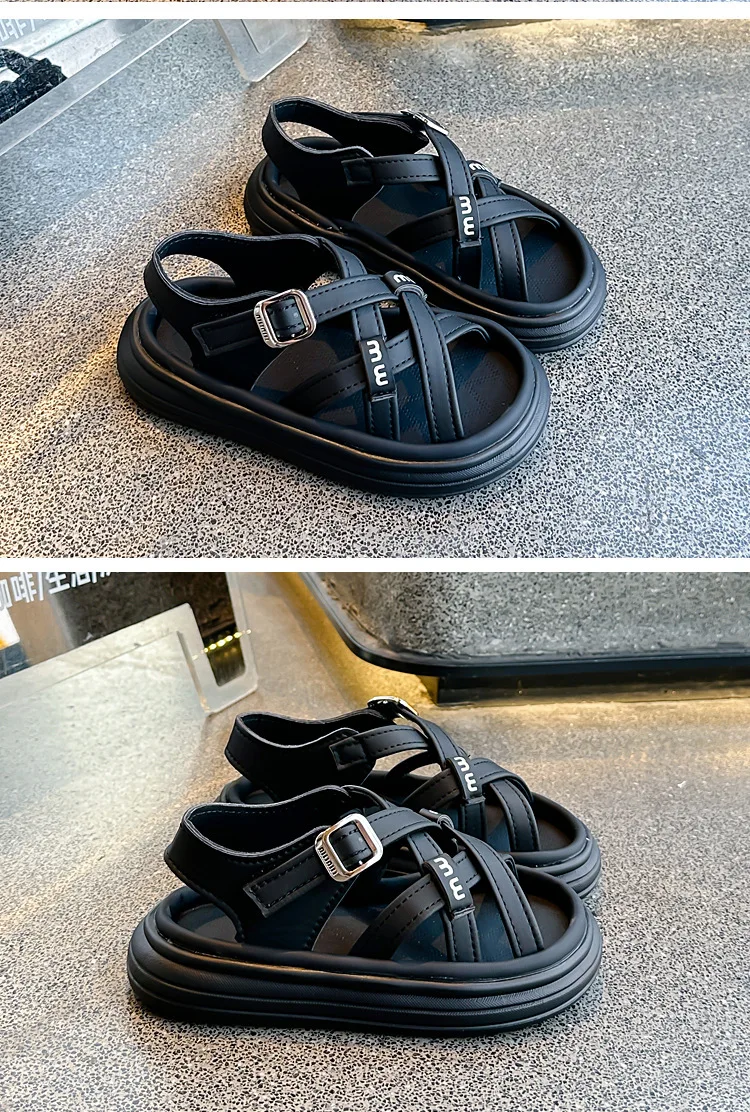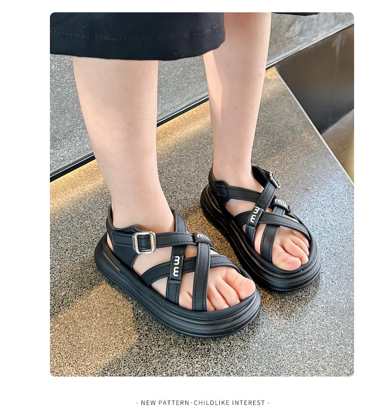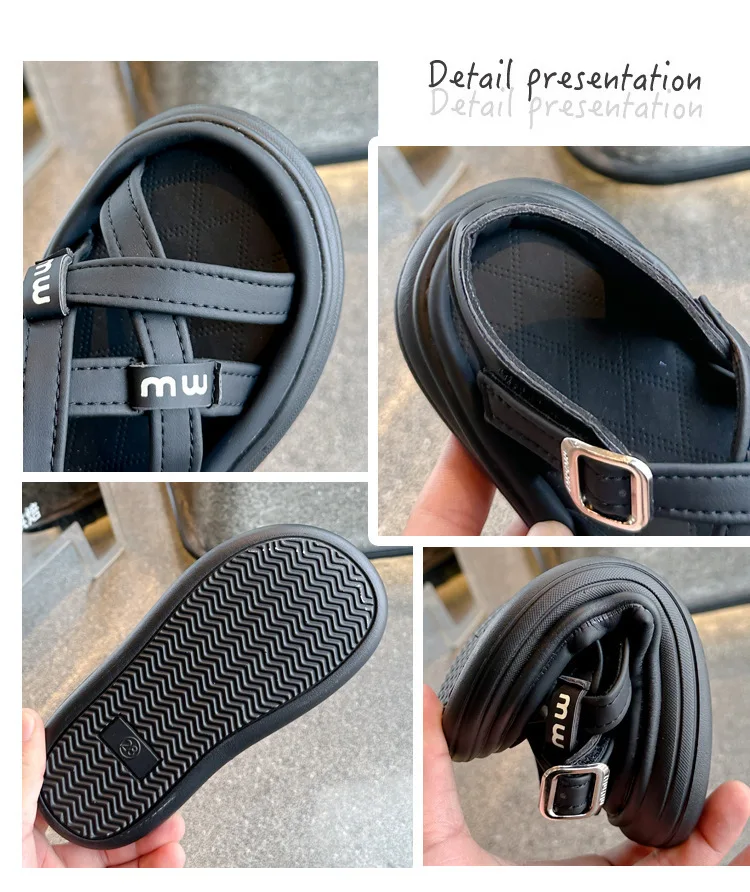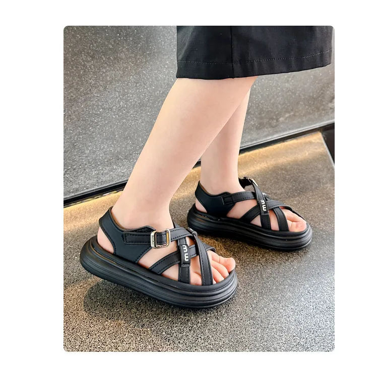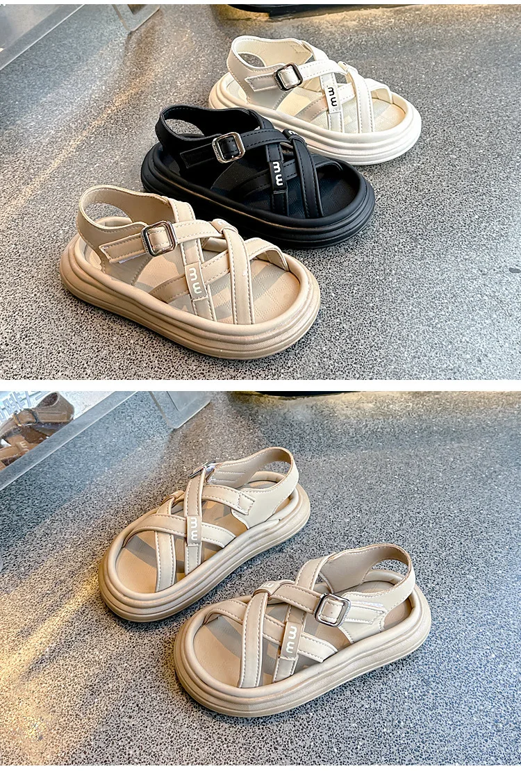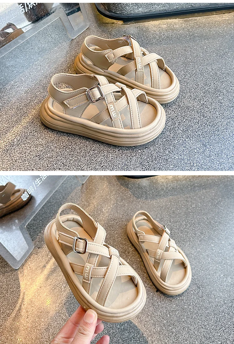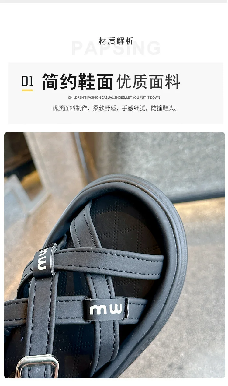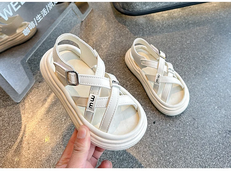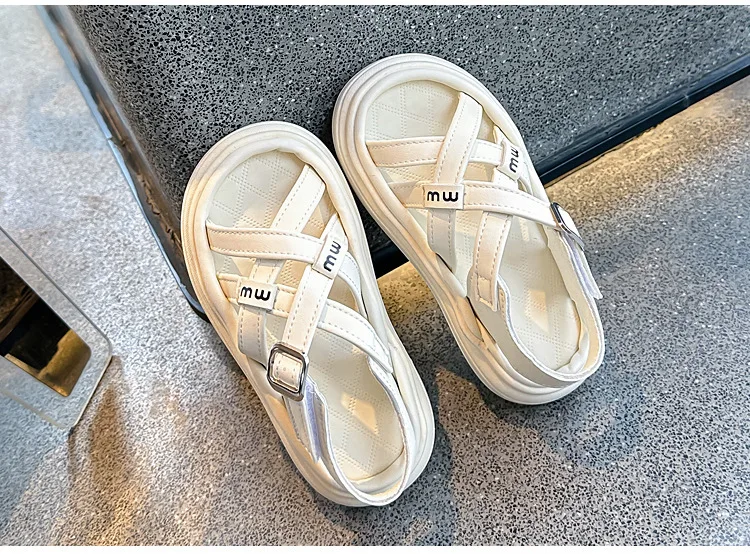 Nuevas sandalias de moda, zapatos versátiles de suela blanda para niñas, zapatos simples Retro versátiles para niños, zapatos de playa antideslizantes ligeros romanos