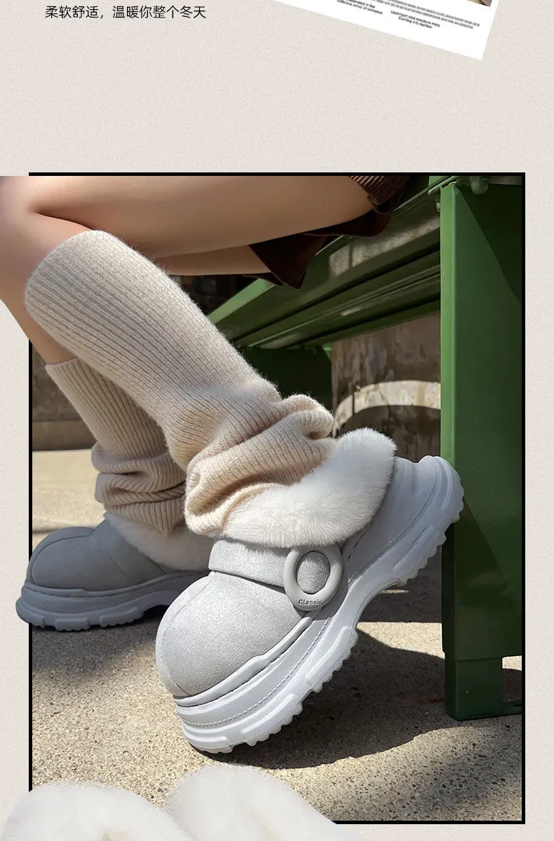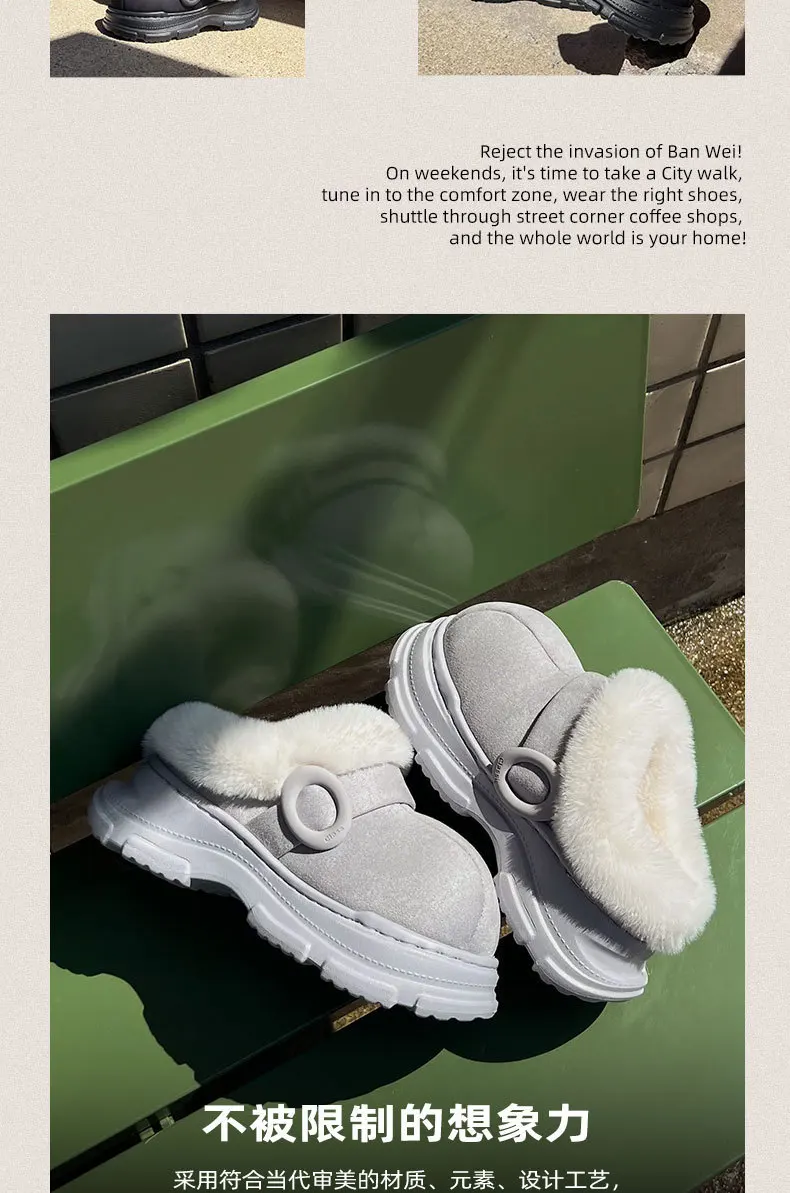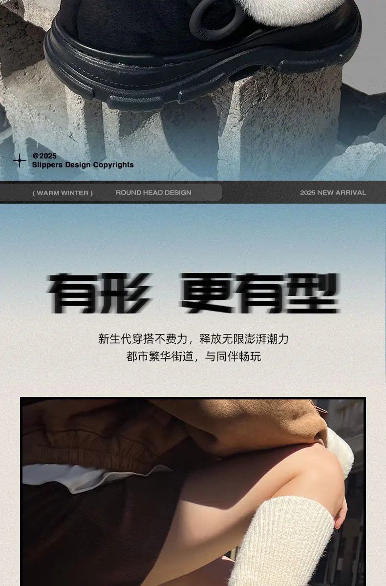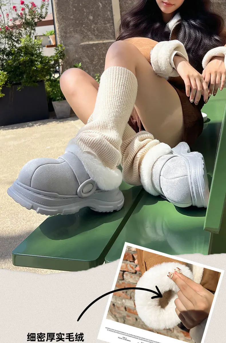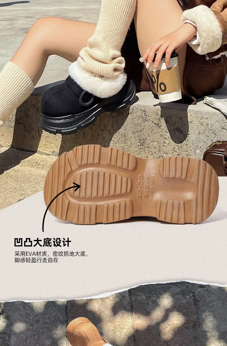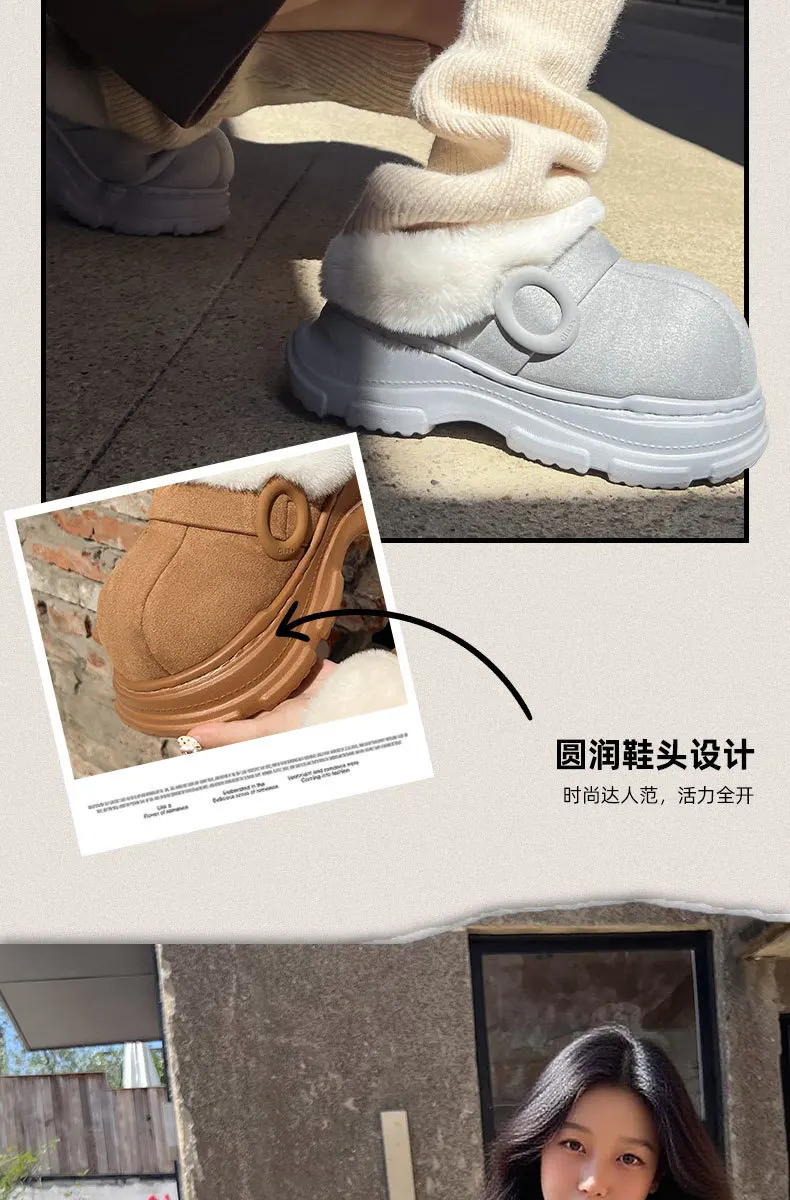 Nuevas zapatillas cálidas para mujer, botas de nieve de suela gruesa antideslizantes para interior del hogar, invierno 2025, se pueden usar al aire libre