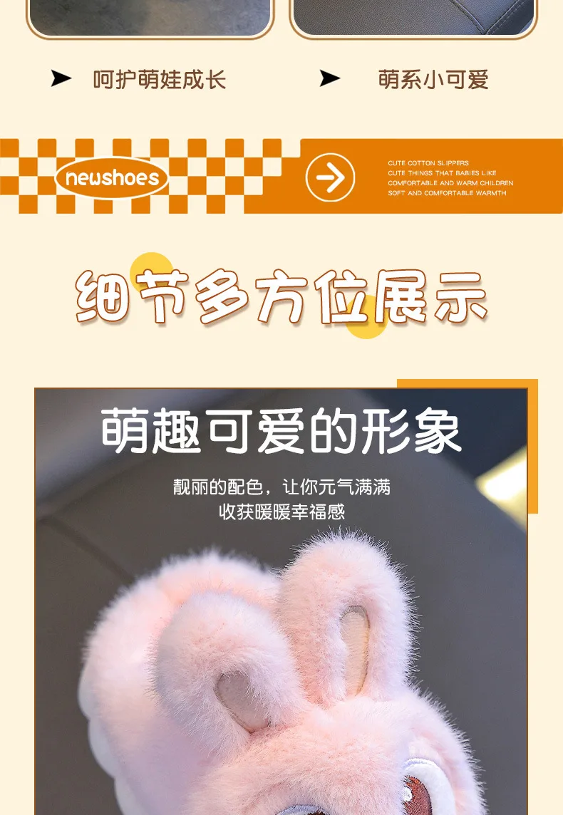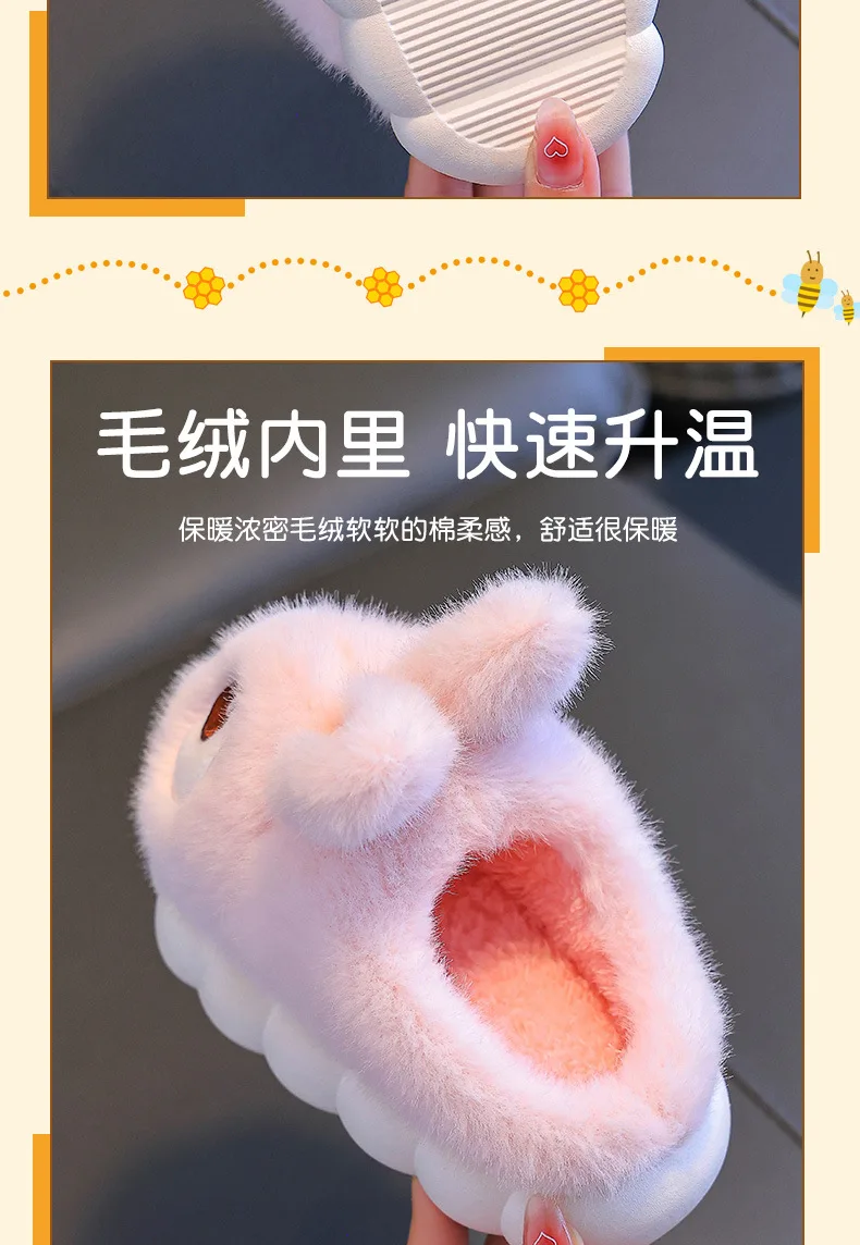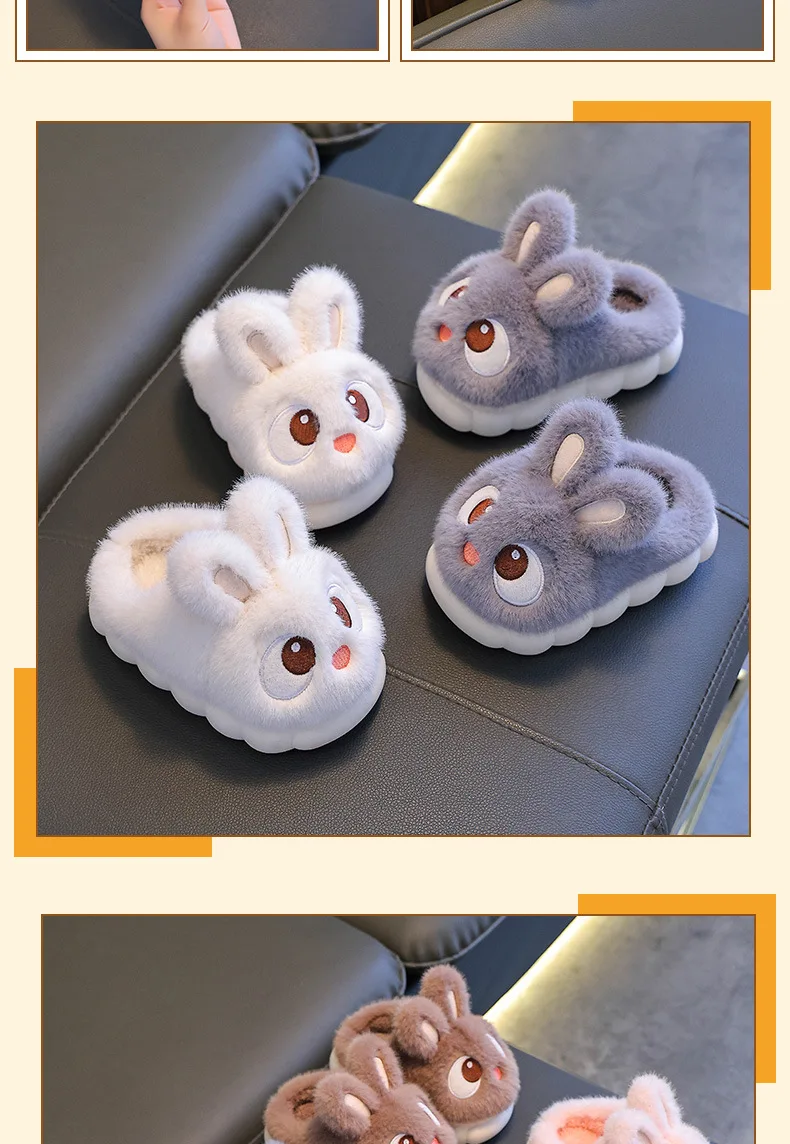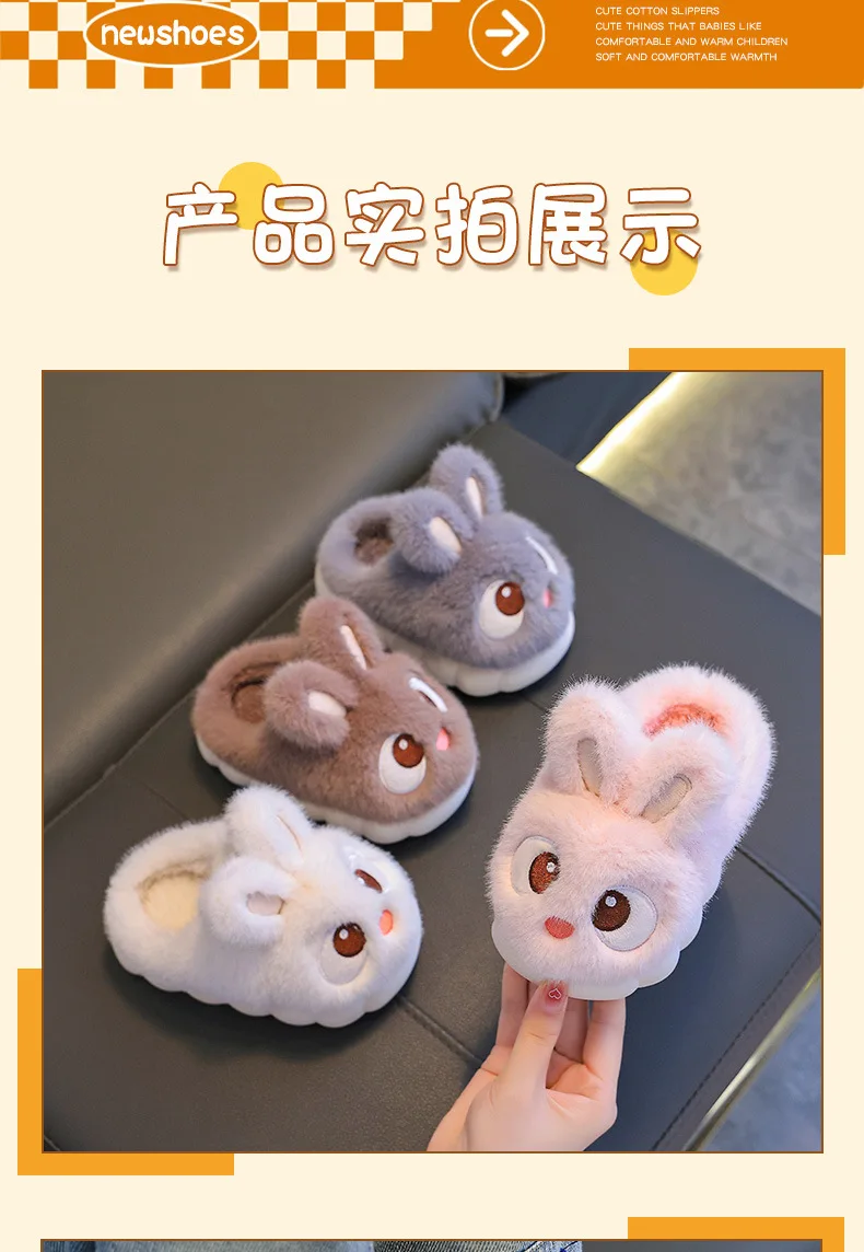 Nuevas zapatillas mullidas antideslizantes y cálidas impermeables con conejo de ojos grandes para niños y niñas, zapatos de algodón para interiores para el hogar, invierno