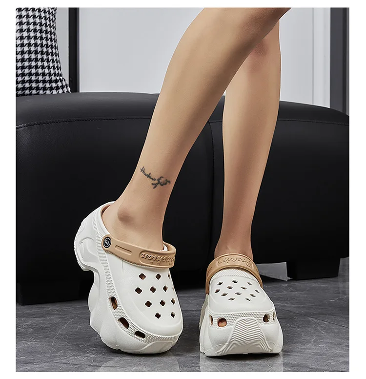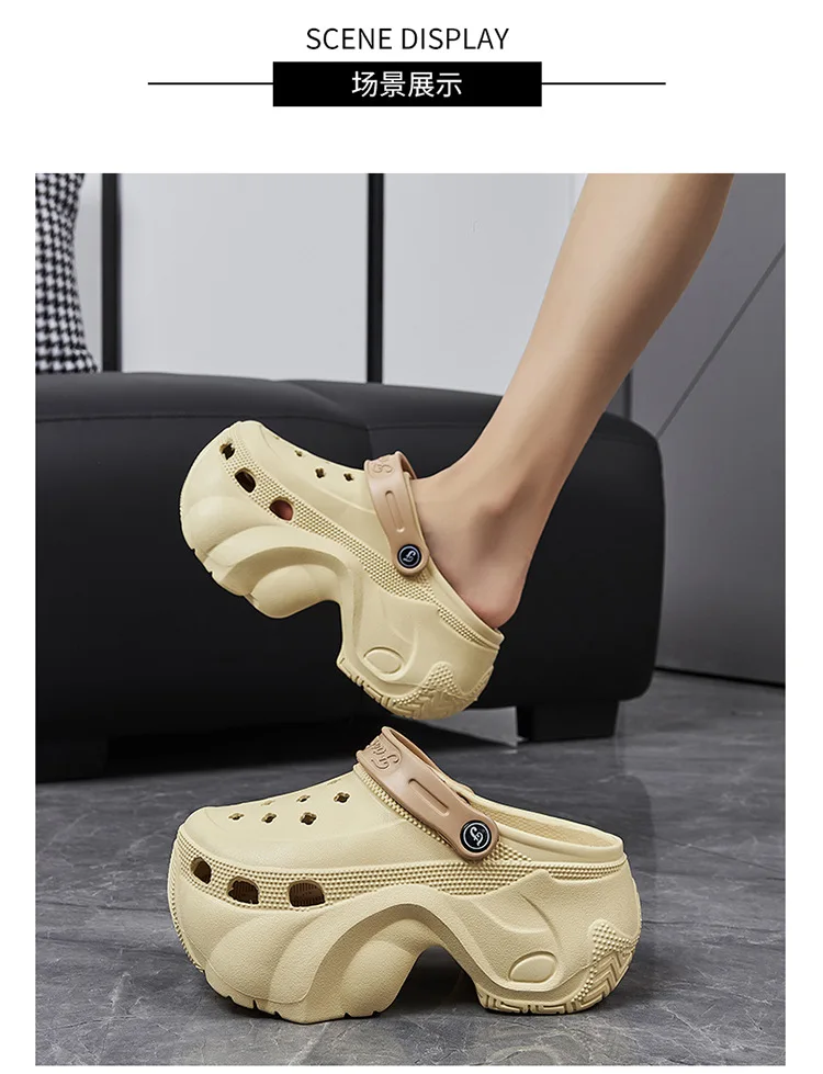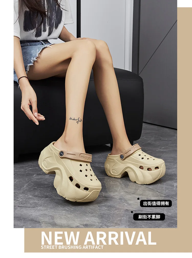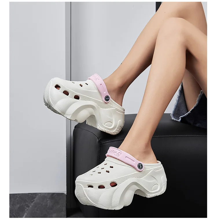 Nuevas zapatillas de plataforma de 8cm, zuecos de moda para mujer, suela gruesa, punta cerrada, chanclas de playa de calle para niñas, Sandalias de tacón alto sin cordones para mujer