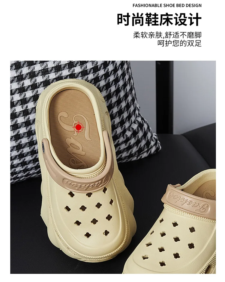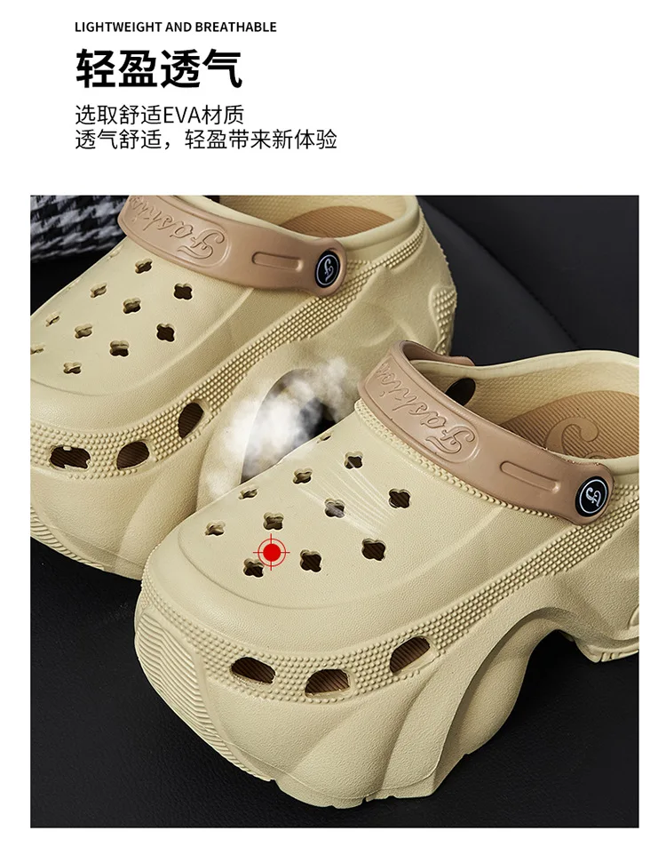 Tipo: zapatillas de plataforma para interiores y exteriores para mujer, zuecos de moda, sandalias de ocioEVA suave / desgaste bidireccional / suela gruesaColor: caqui/negro/caféTabla de tallas :CN36/37 Apto para pies de 23 cm de longitud