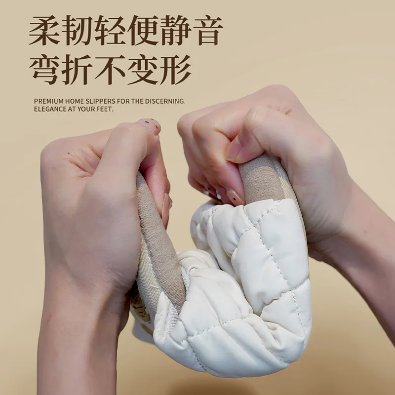 Comprar Nuevo 2025 zapatillas silenciosas de interior para mujer, zapatos de primavera y verano con punta abierta para parejas, chanclas de casa de tela transpirable de estilo silencioso para mujer