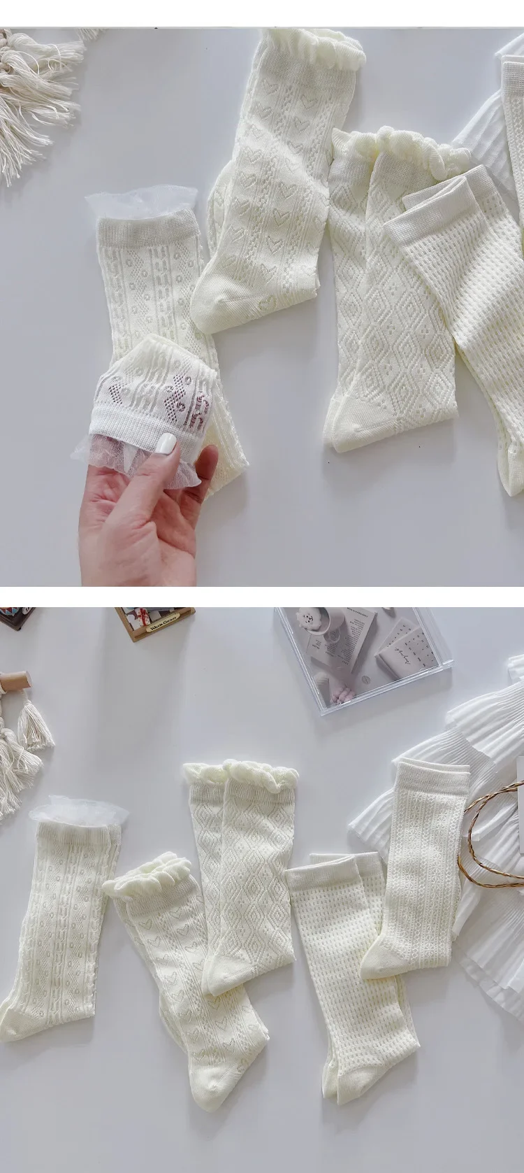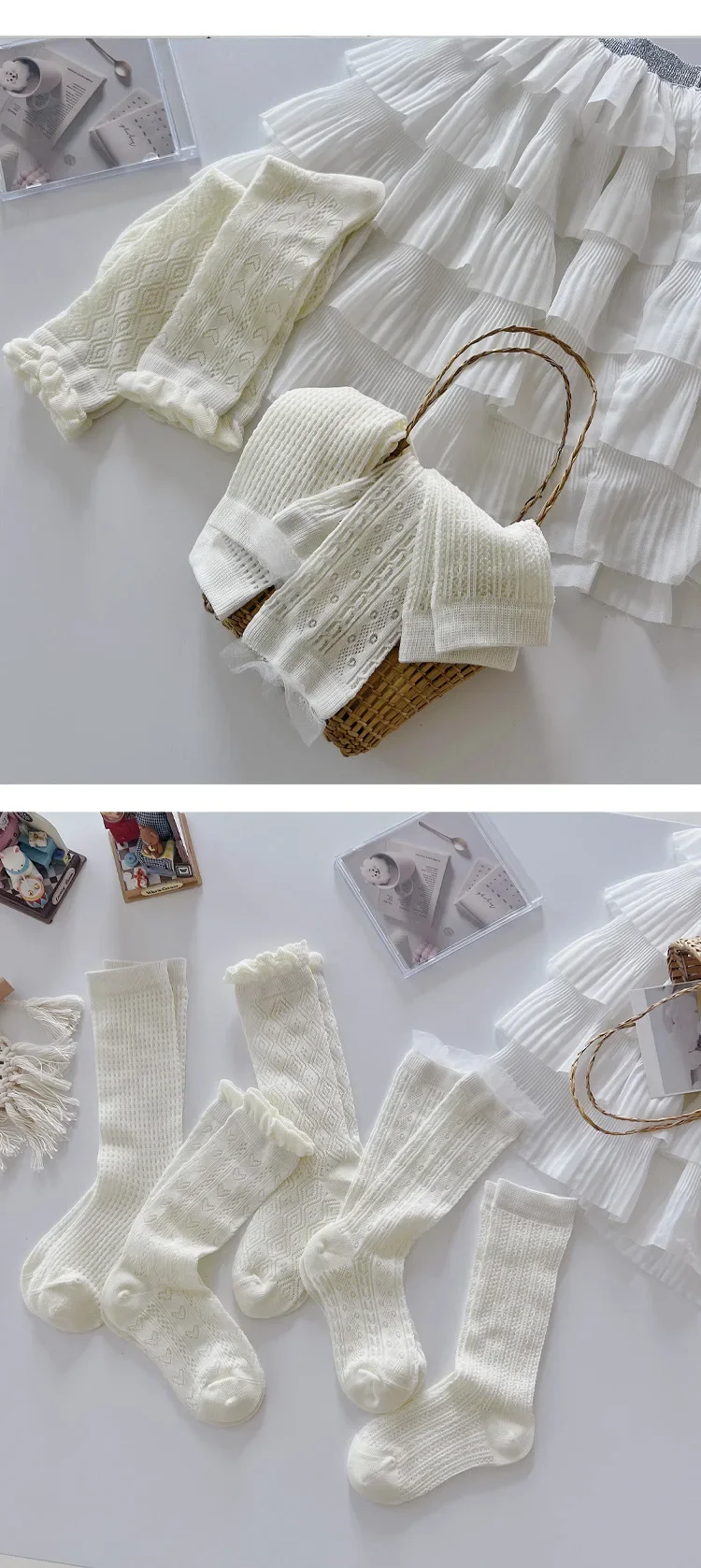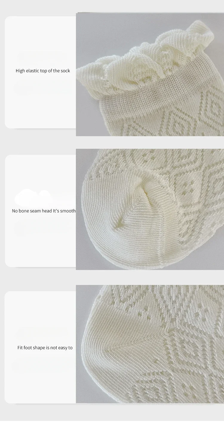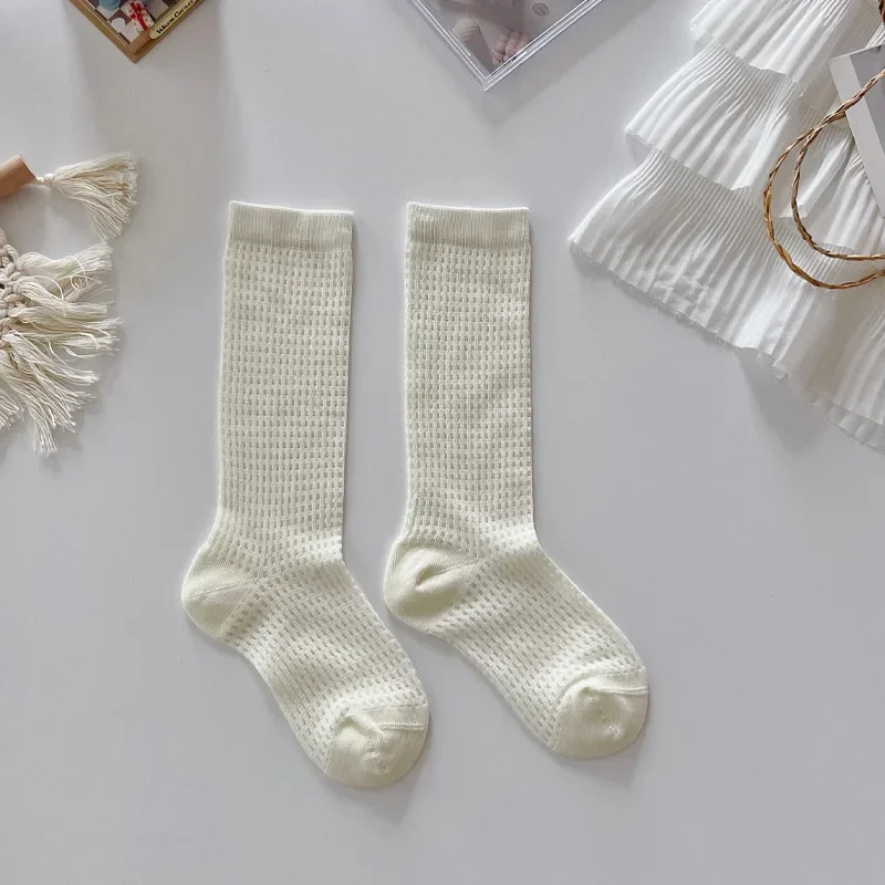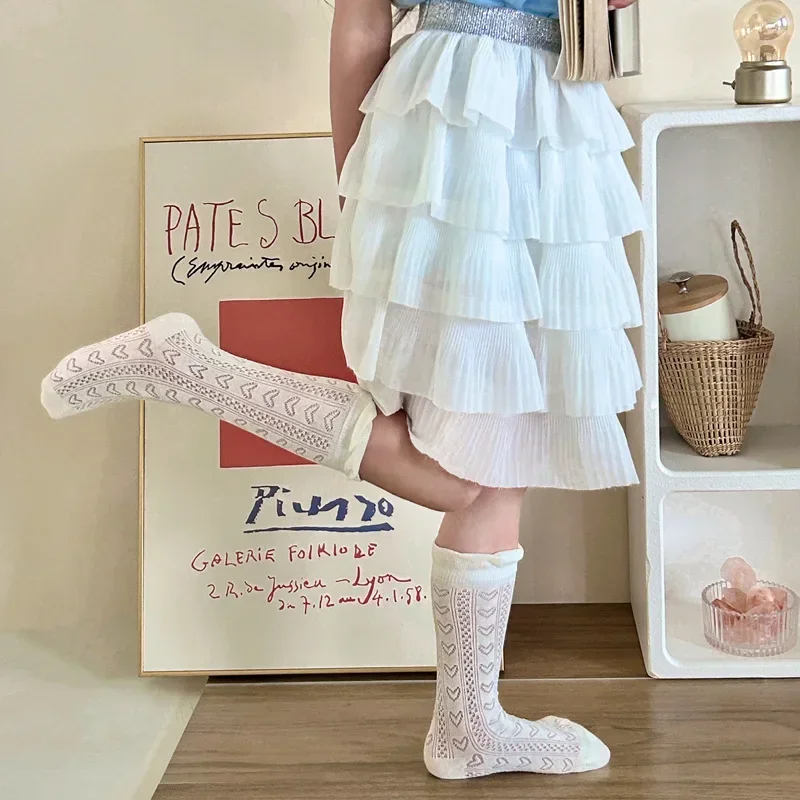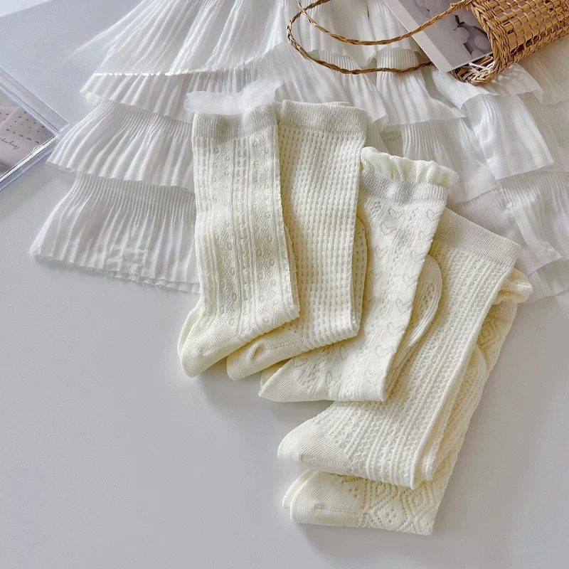 Comprar Nuevo calcetín fino de malla hasta la pantorrilla para niños y niñas, calcetín escolar suave y transpirable con encaje de corazón de Color Beige
