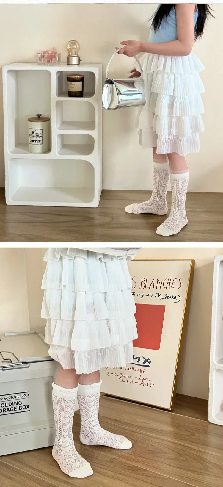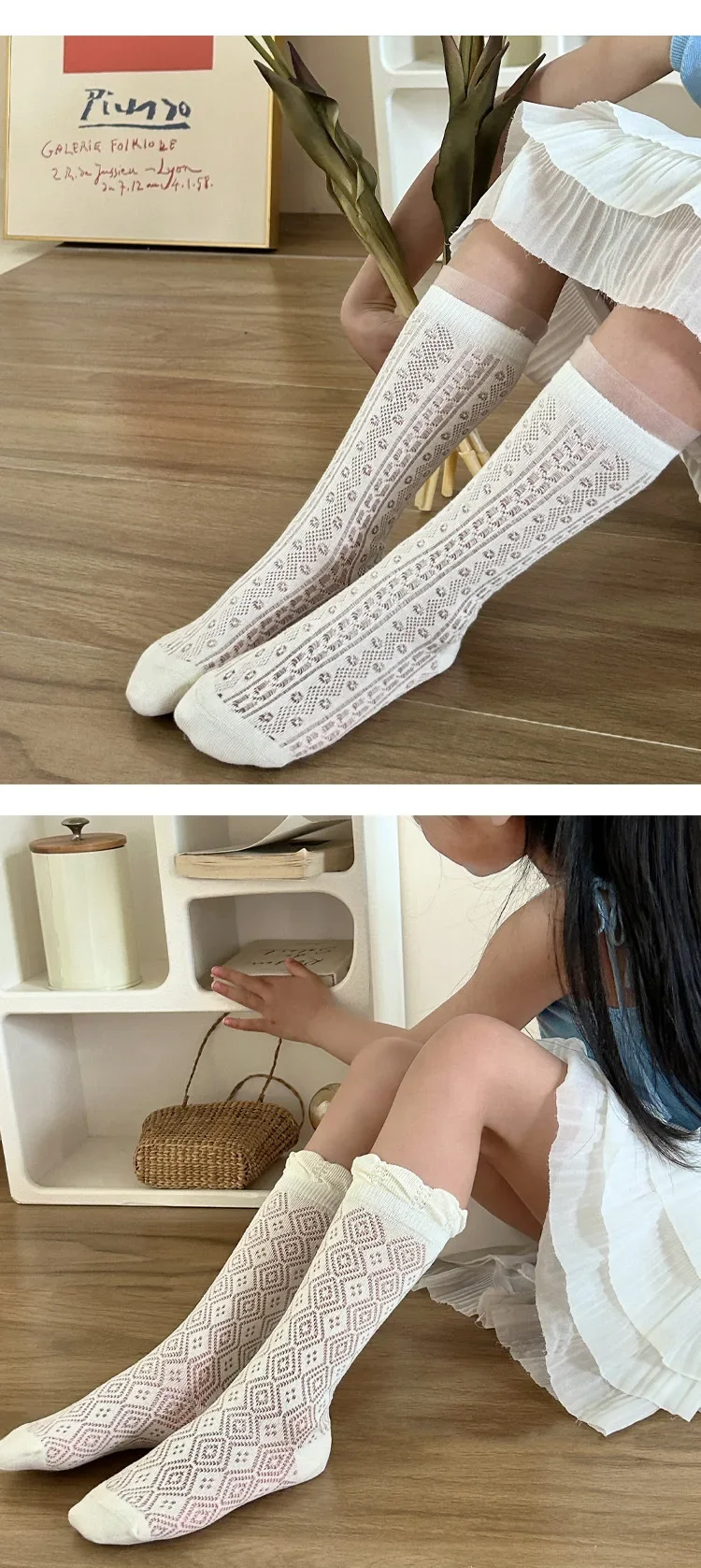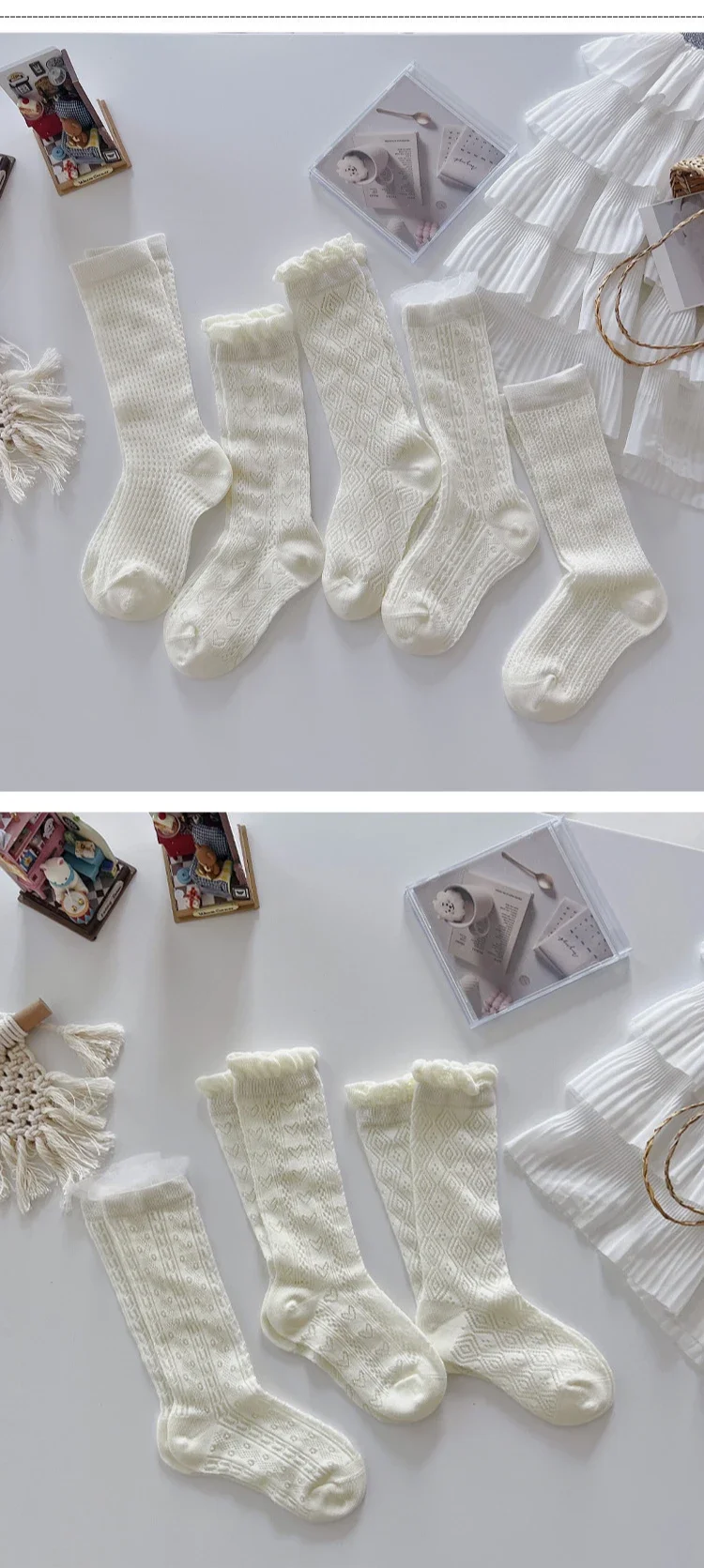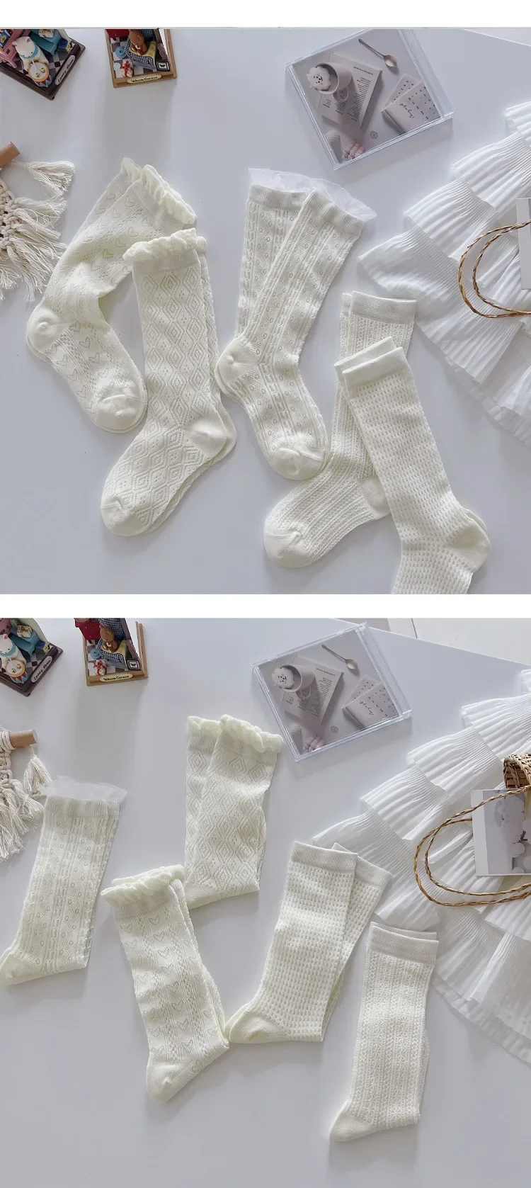Comprar Nuevo calcetín fino de malla hasta la pantorrilla para niños y niñas, calcetín escolar suave y transpirable con encaje de corazón de Color Beige
