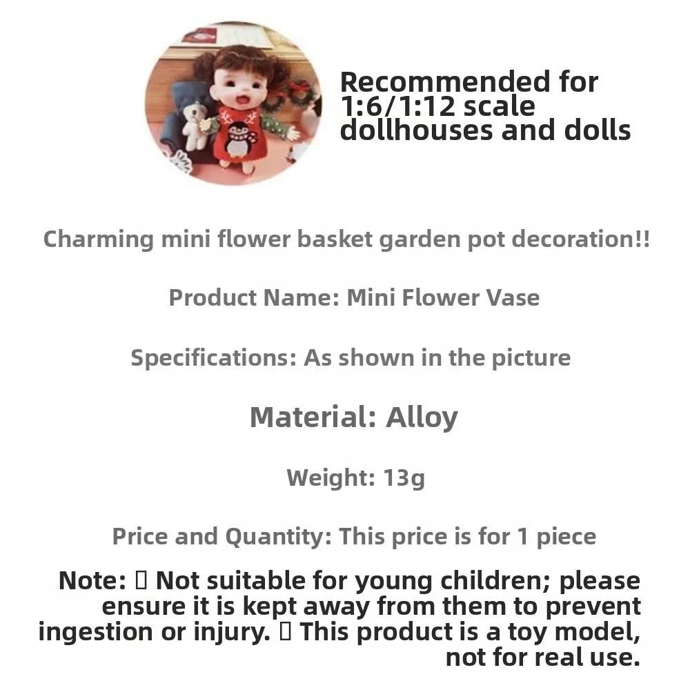Brand new and high quality Material: Metal alloy Size: 41*18*39mm(1.61*0.71*1.54in) Type: dollhouse decor toy Color:White Blue Pink Grey Yellow Orange Green Purple Quantity:1pc Description: Lifelike design and excelent workmanship Great accessory for dollhouse decoration Real-like design with excellent workmanship,suitable for 1:12 or 1:6 mini house. Applicable for miniature dollhouse or dollhouse collection. Exquisite collection for dolls, a superb addition to any traditional. Dolls house, great for adding life atmosphere for your dollhouse. Place it in your doll house for more realistic detail life scene effect. This product is a small piece, not a toy for children under 3 years old. Tips: All of our items are miniatures for doll's houses and miniature scenes, they are NOT life size items or toys. Due to manual measurement , there may be 5mm(0.20in) deviation exist,hope you can understand. There are slight difference between the picture and the real item caused by light brightness,hope you can understand. Package Include: 1pc Dollhouse Flower Basket Notice: 1.1cm(0.43in)=10mm=0.39inch. 2.Please allow 1-2mm(0.04-0.08in) error due to manual measurement and make sure you do not mind before ordering. 3.Please understand that colors may exist chromatic aberration as the different placement of pictures.