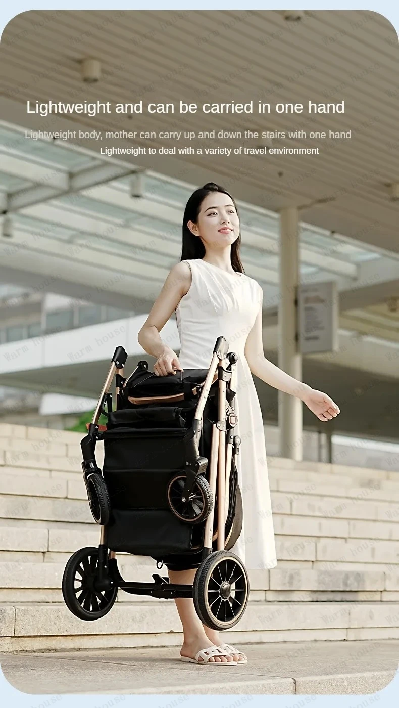 Nuevo cochecito de bebé gemelo de aspecto alto, respaldo ajustable, cochecito de bebé gemelo desmontable, cochecito de bebé doble plegable