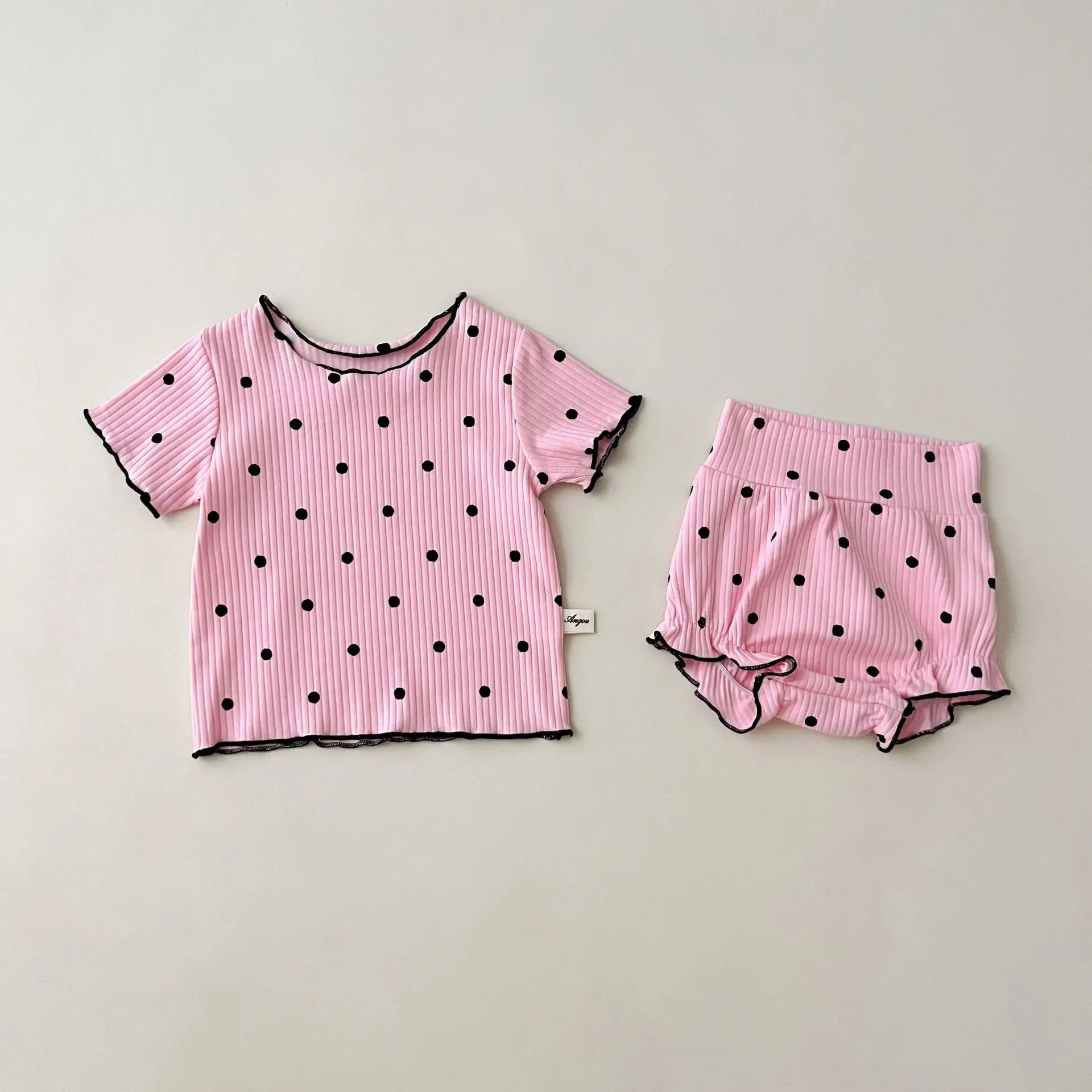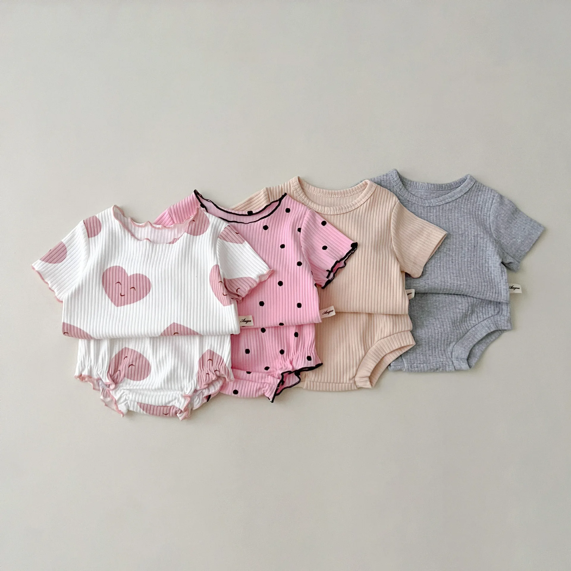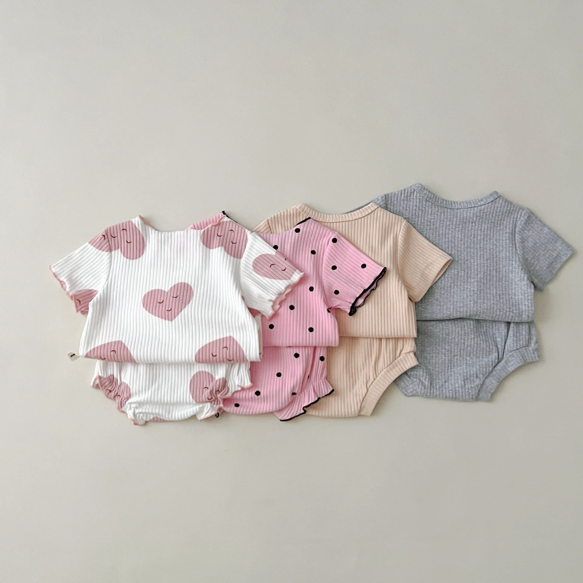 Comprar Nuevo conjunto de ropa de manga corta para niña, bonito estampado de corazón, trajes para niña pequeña, camiseta de verano para bebé + Pantalones cortos, traje de 2 uds.