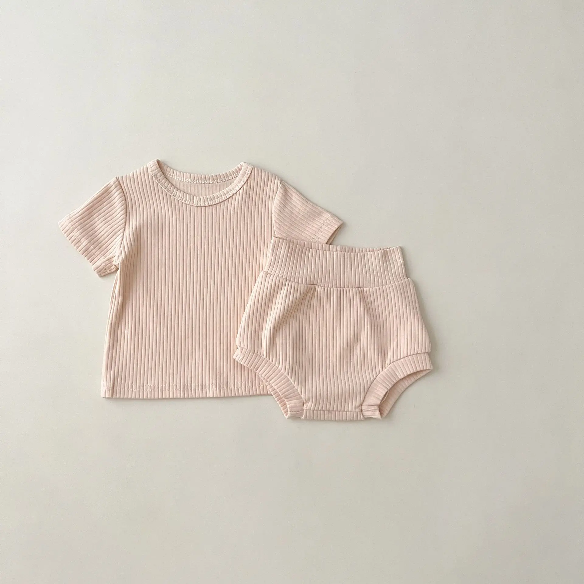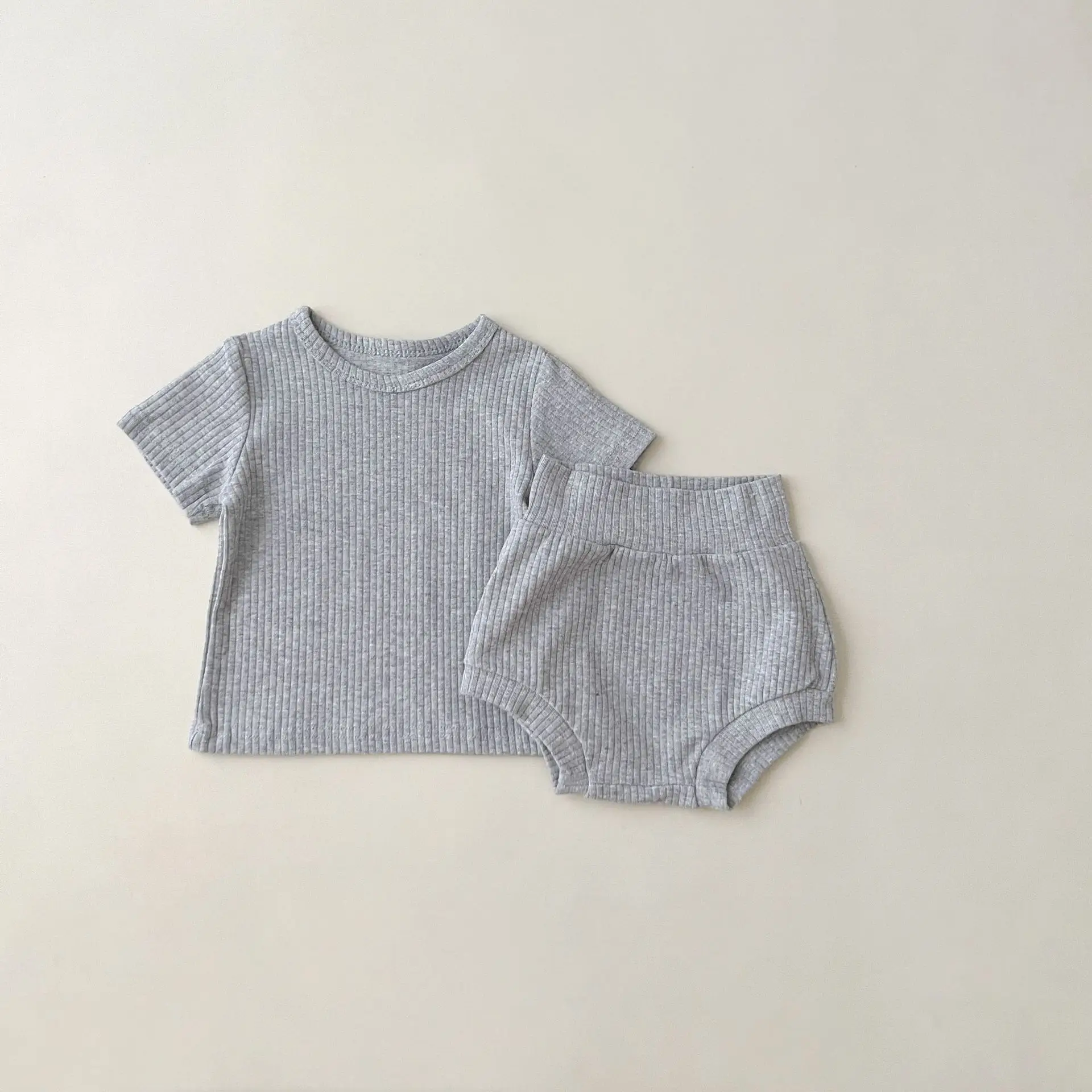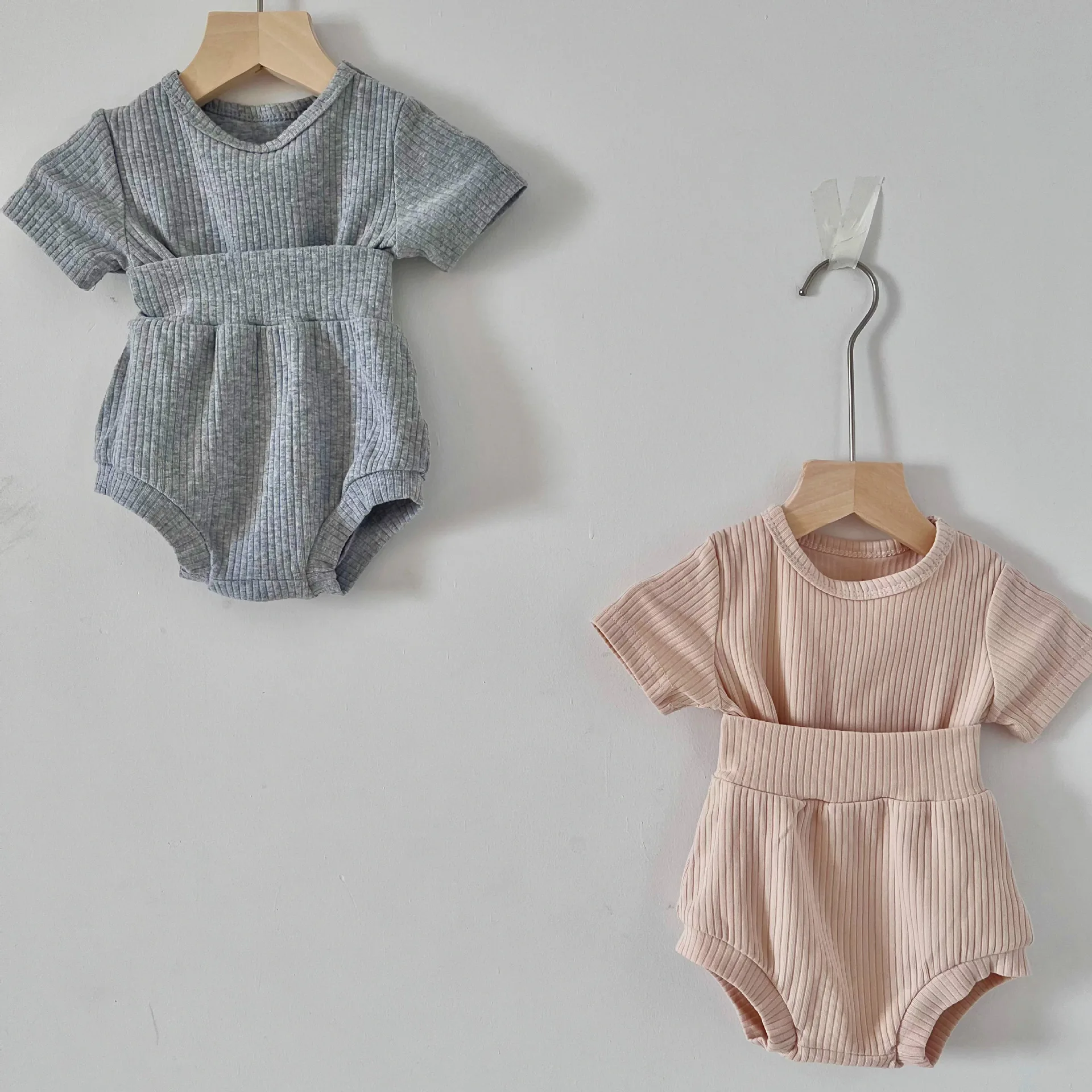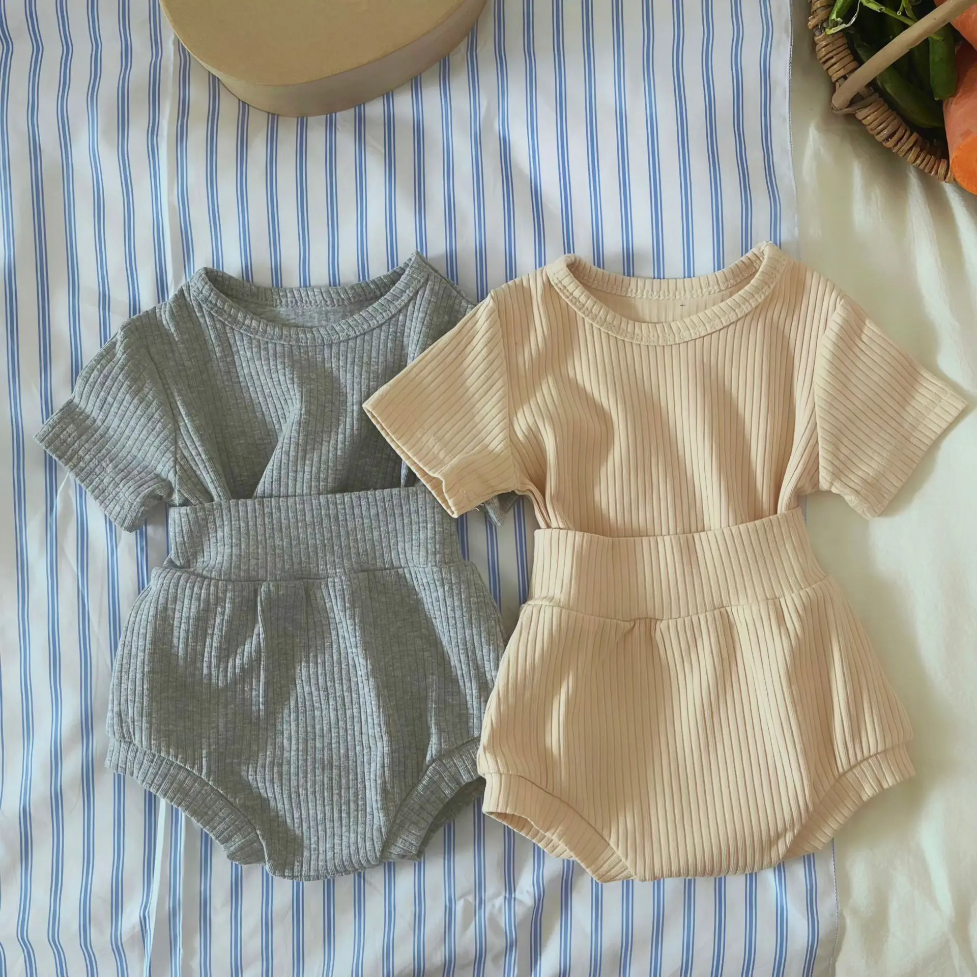 Comprar Nuevo conjunto de ropa de manga corta para niña, bonito estampado de corazón, trajes para niña pequeña, camiseta de verano para bebé + Pantalones cortos, traje de 2 uds.