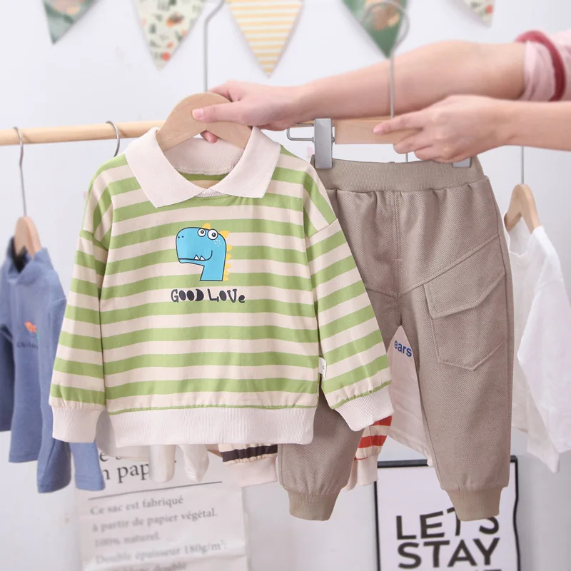 Nuevo conjunto de ropa de bebé de otoño, camiseta a rayas para niños, pantalones, 2 unids/set, ropa para niños, disfraz informal infantil, chándales para niños pequeños de 0 a 4 años