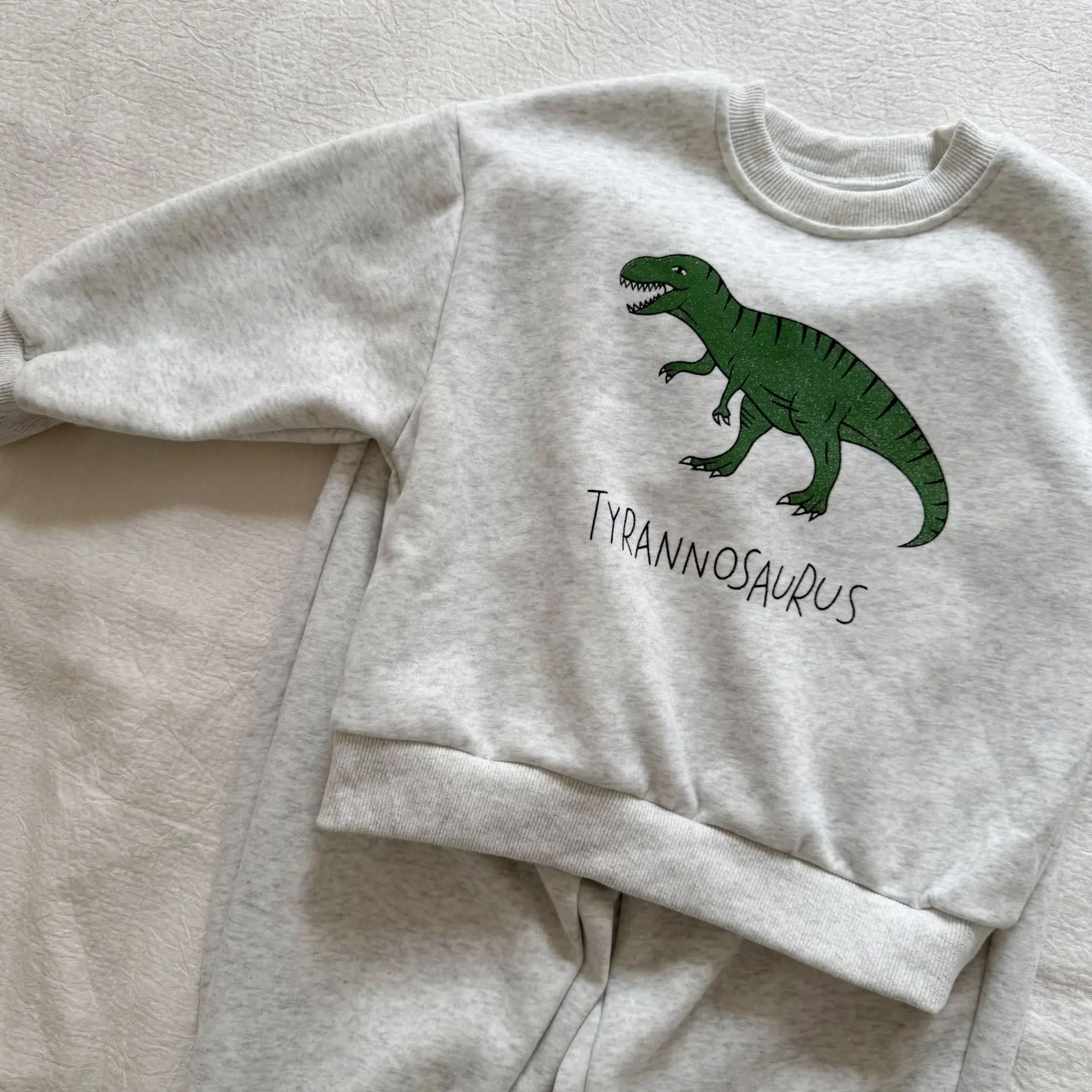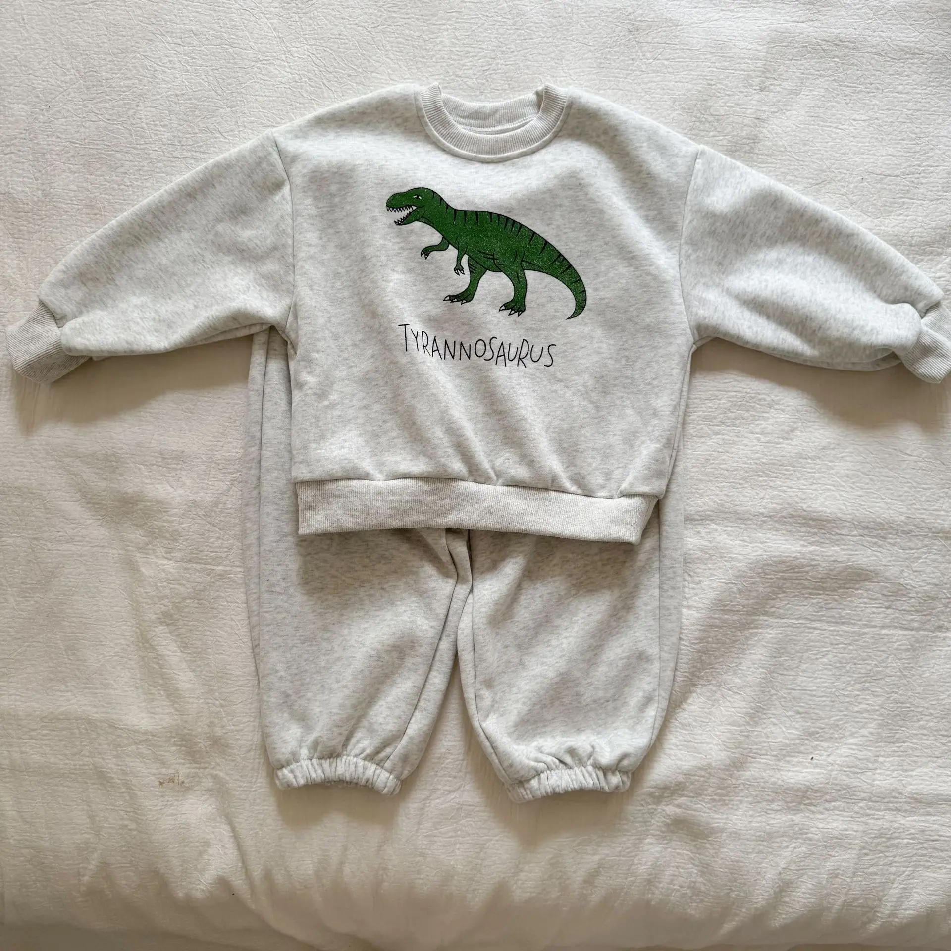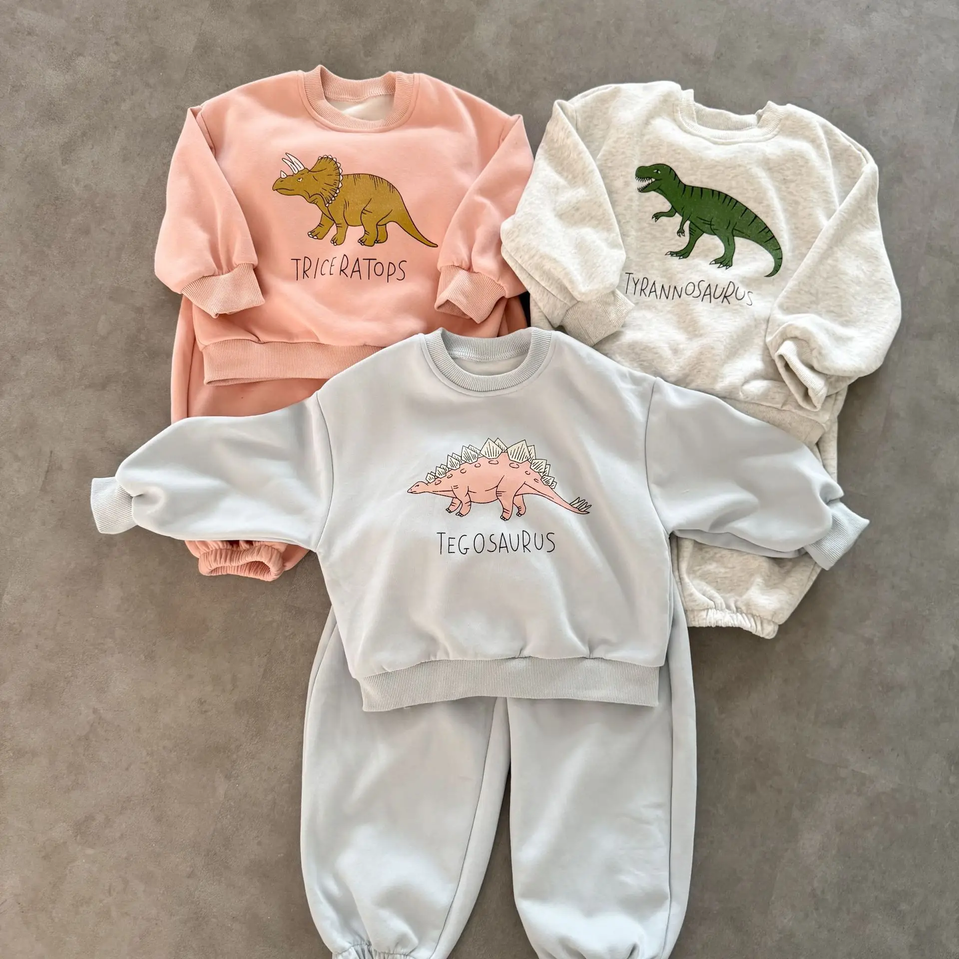 Nuevo conjunto de ropa de otoño para niños, traje deportivo para hermanos y hermanas, Sudadera con capucha y pantalones con estampado de dinosaurio, ropa para niños de 2 uds