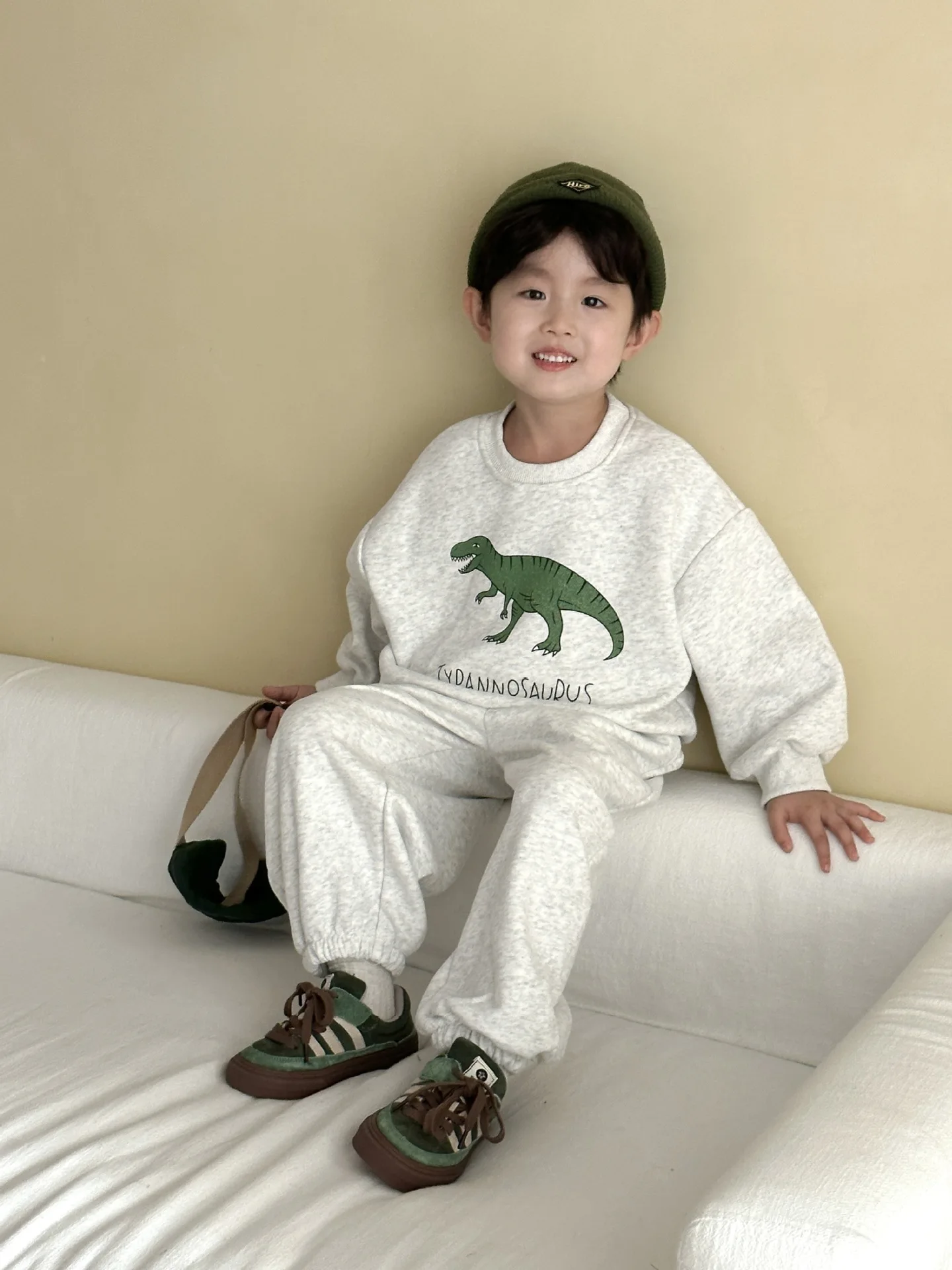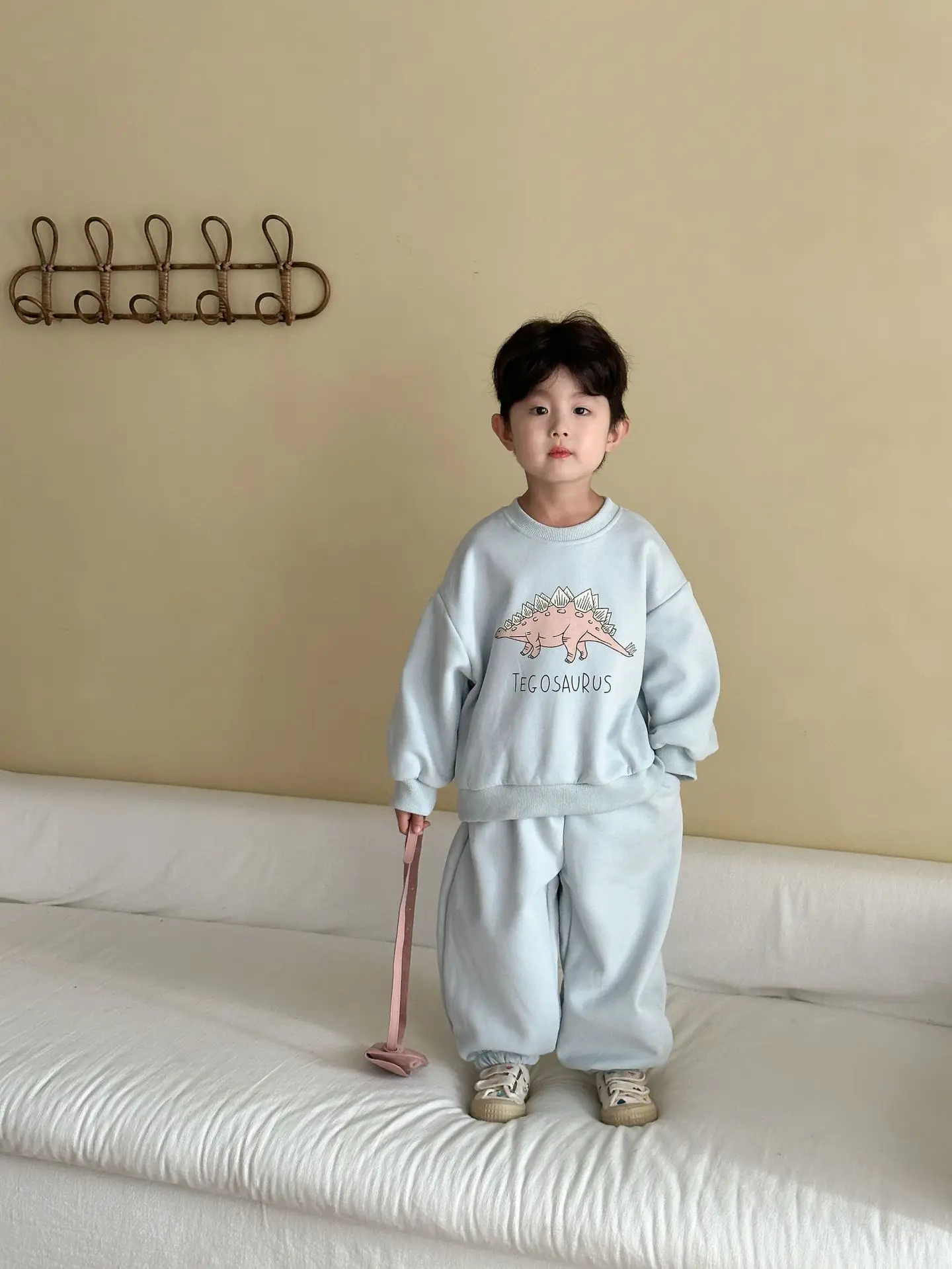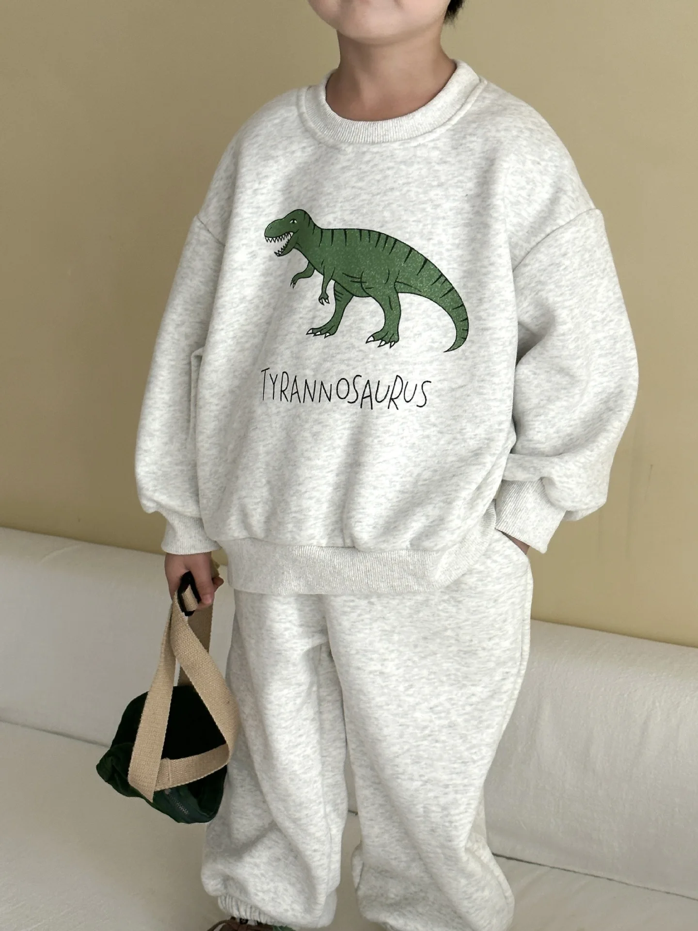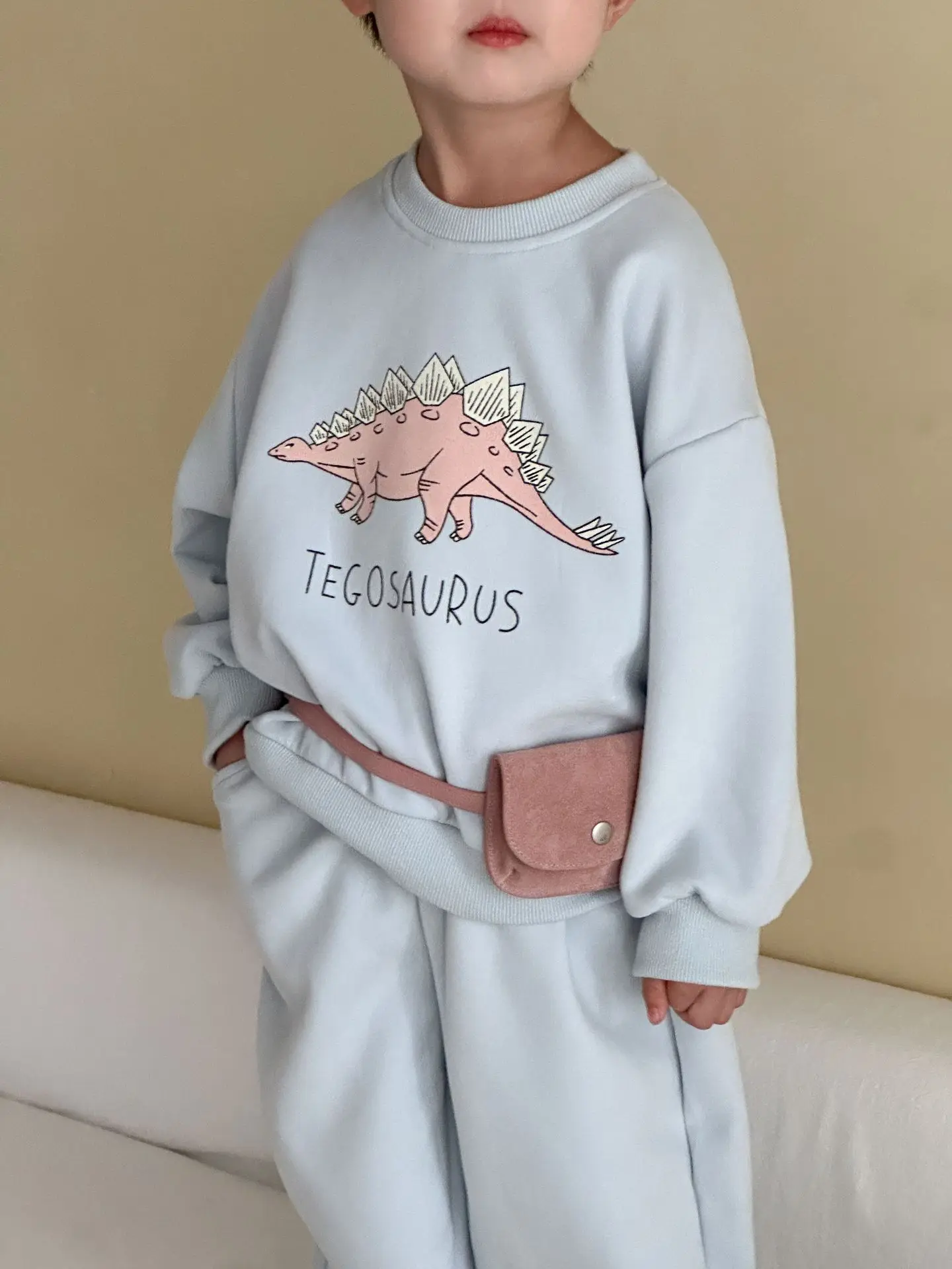 Nuevo conjunto de ropa de otoño para niños, traje deportivo para hermanos y hermanas, Sudadera con capucha y pantalones con estampado de dinosaurio, ropa para niños de 2 uds