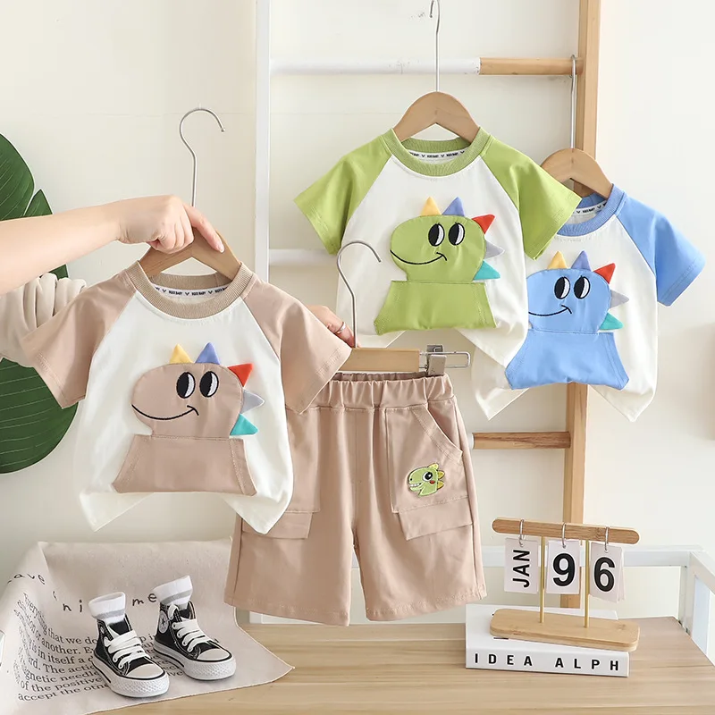 Nuevo conjunto de ropa de verano para bebés, camiseta y pantalones cortos para niños, 2 unids/set, ropa para niñas, disfraz de dibujos animados infantil, chándales para niños pequeños de 0 a 5 años