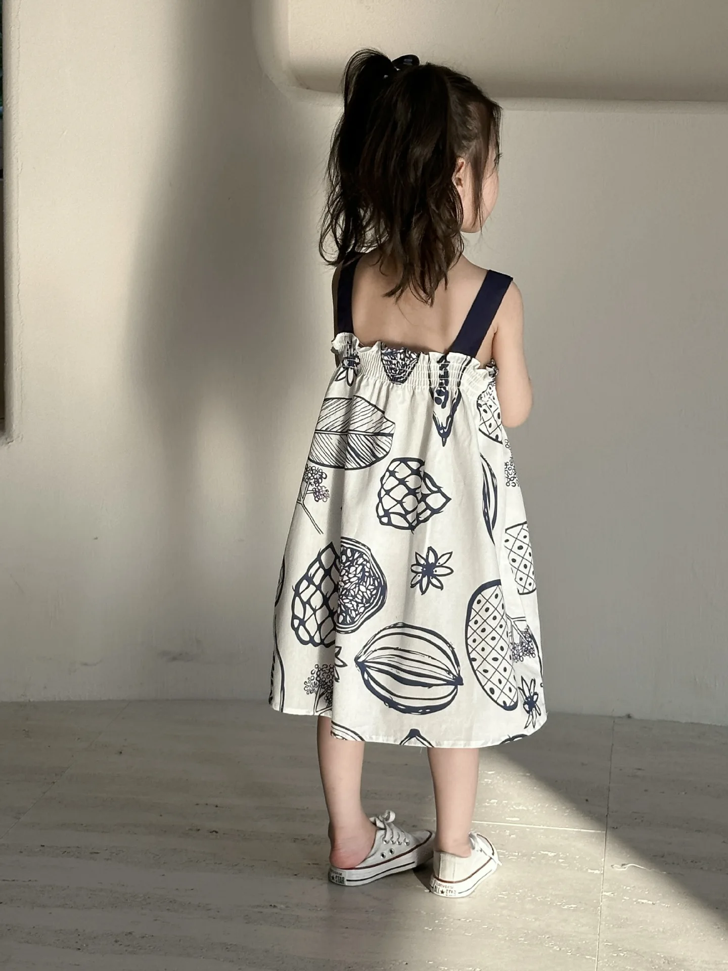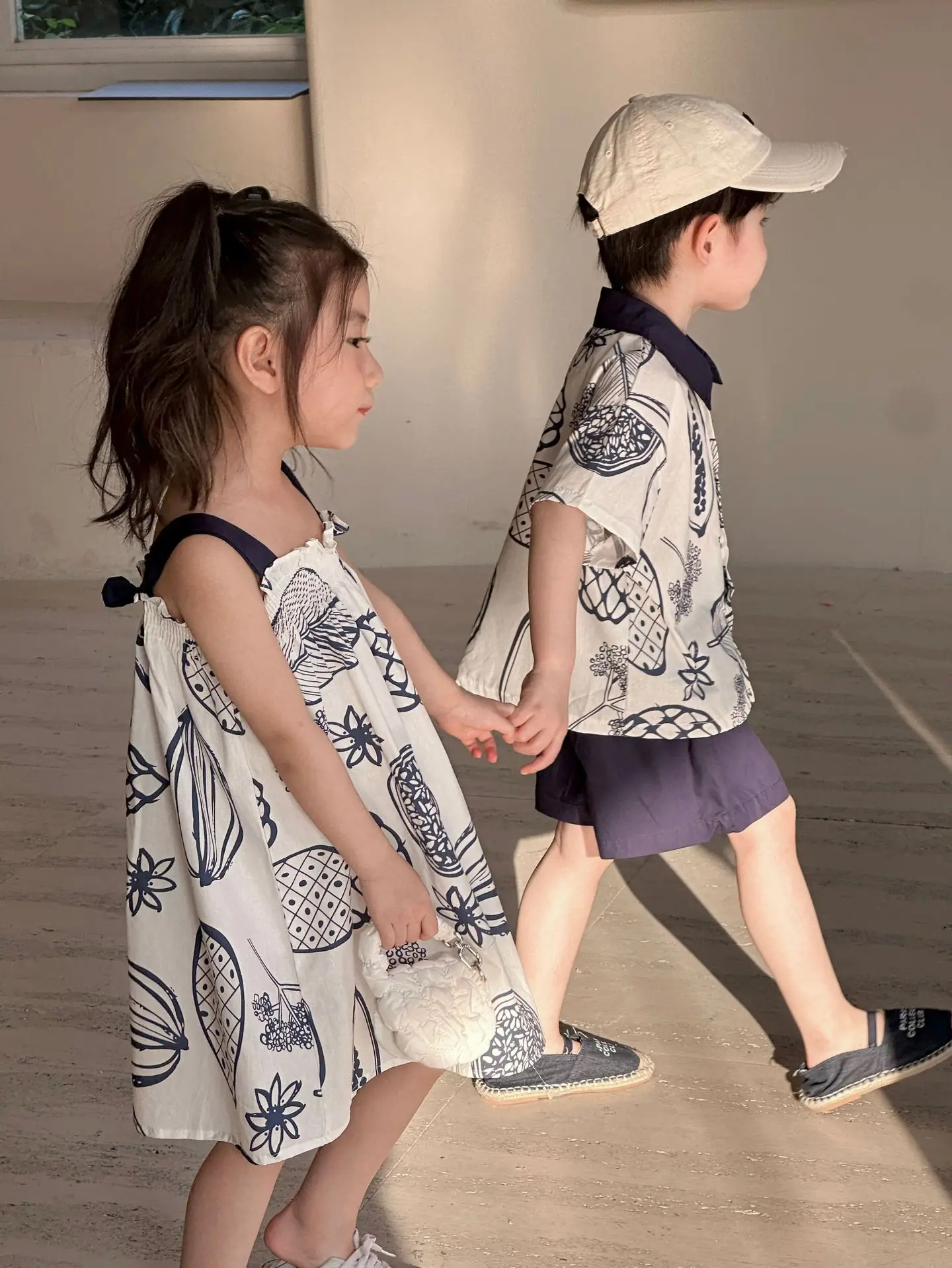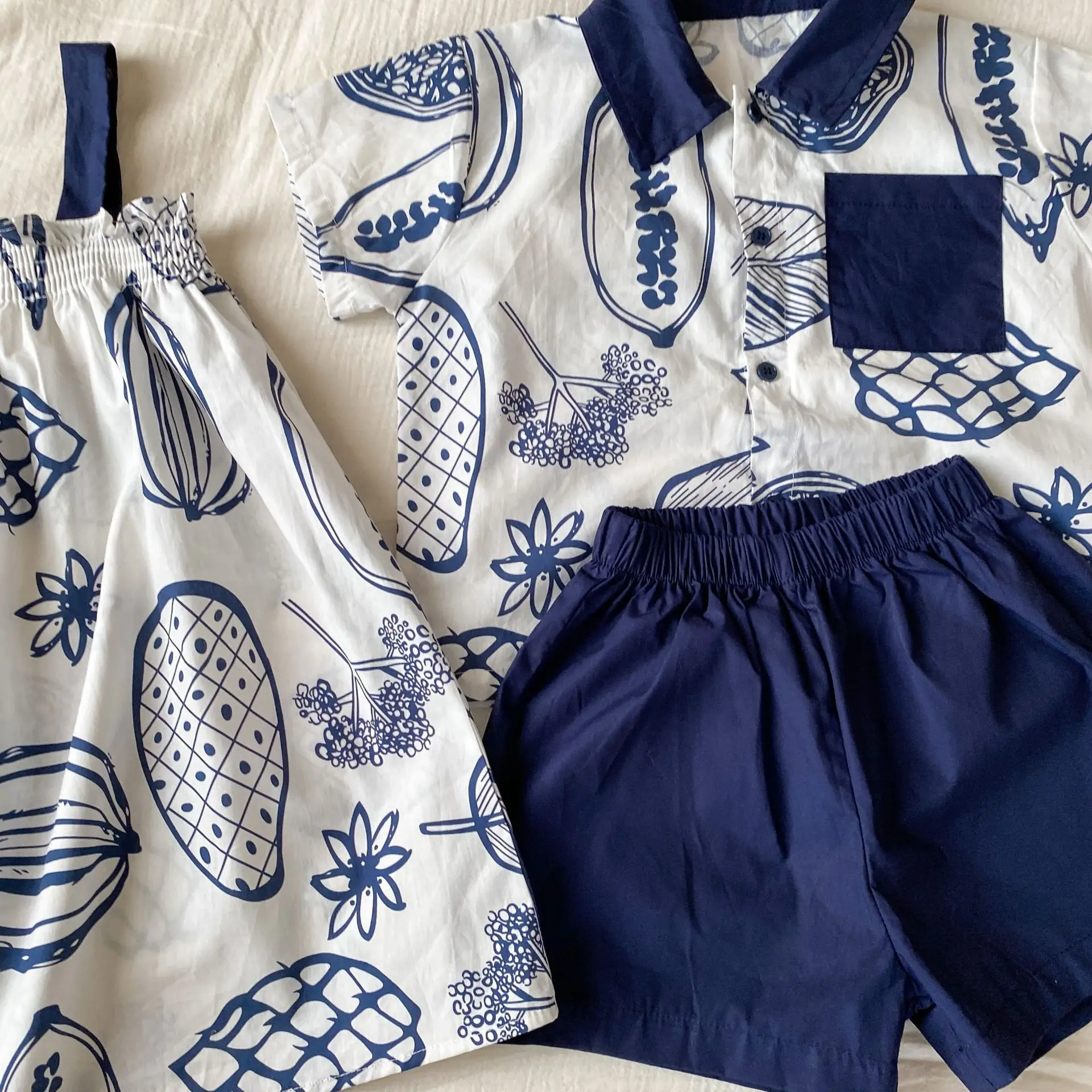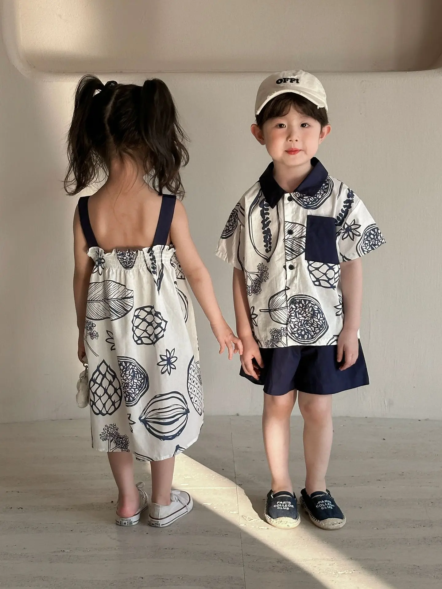 Comprar Nuevo conjunto de ropa de verano para niños, camisa de fruta de dibujos animados + pantalones cortos de Color sólido, vestido de tirantes para niñas