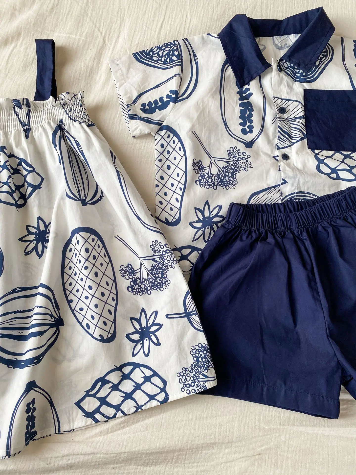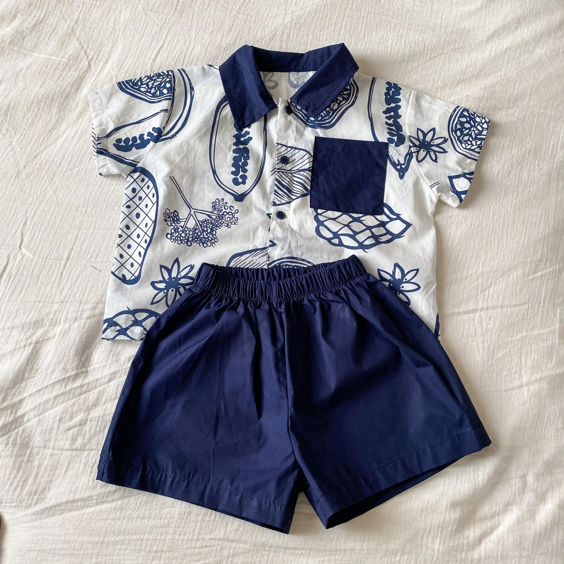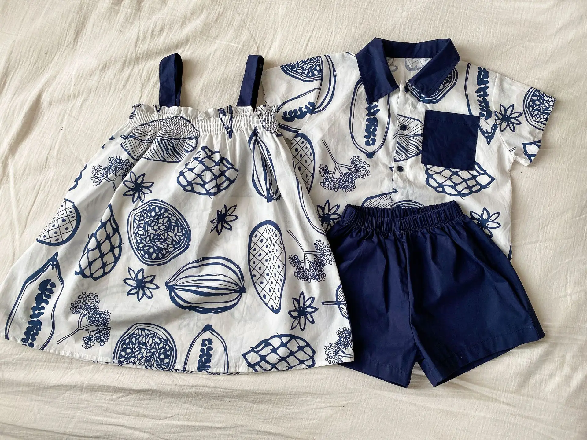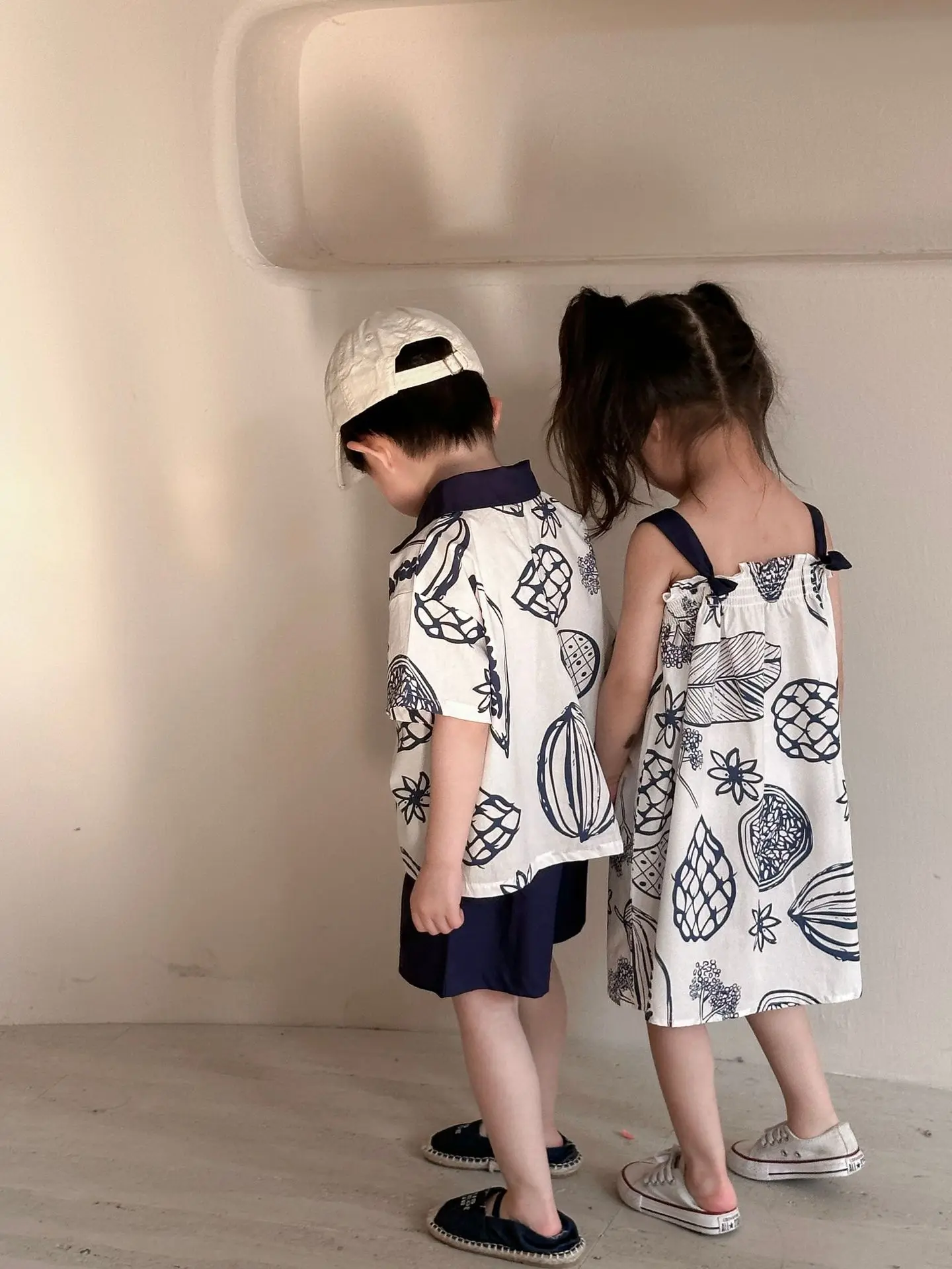 Comprar Nuevo conjunto de ropa de verano para niños, camisa de fruta de dibujos animados + pantalones cortos de Color sólido, vestido de tirantes para niñas