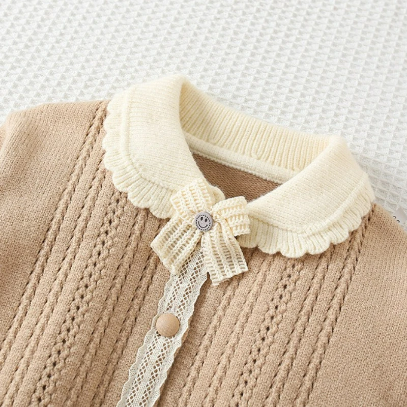 Nuevo conjunto de vestido de otoño e invierno para niñas, versión coreana elegante, cárdigan de punto con cuello de encaje, conjunto de dos piezas para niños