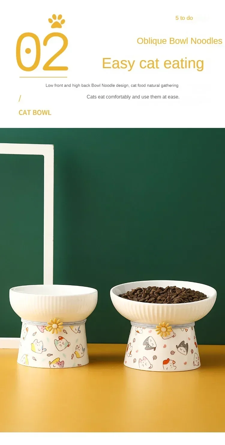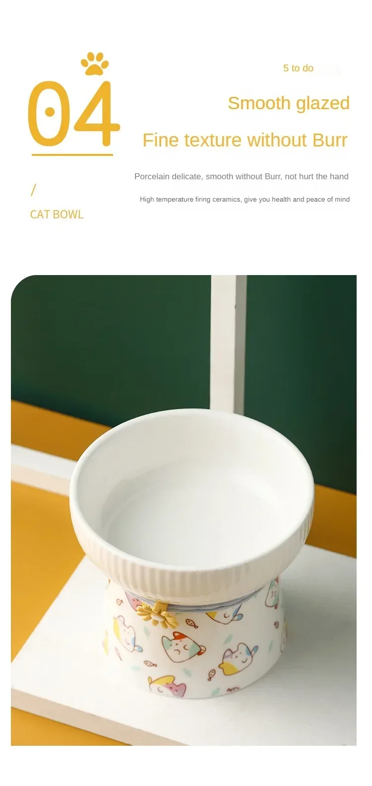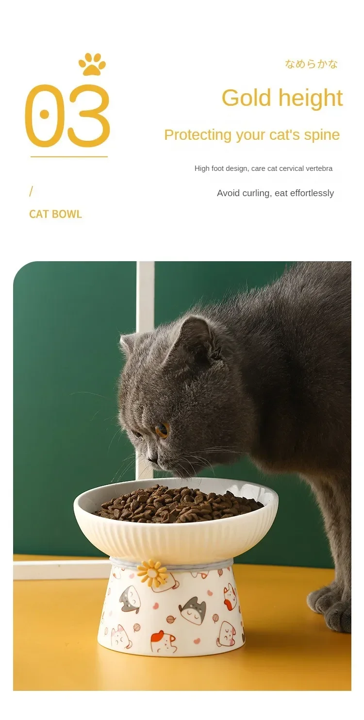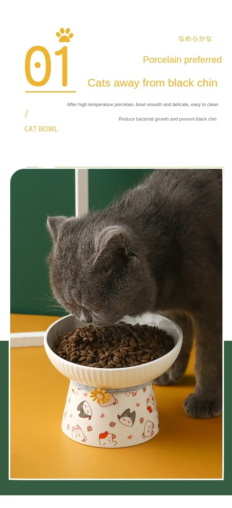 Comprar Nuevo cuenco antidumping de patas altas para gatos, cuenco alimentador de cerámica para barbilla negra, suministros para mascotas, cuenco de comida para gatos de dibujos animados, accesorios para perros