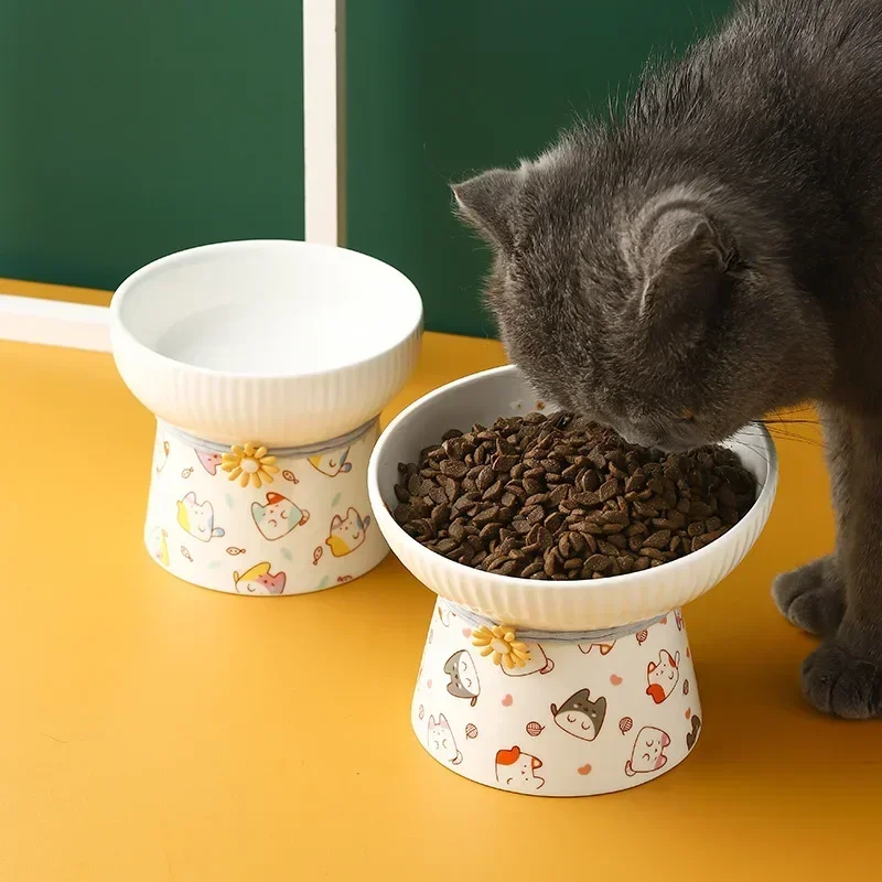 Comprar Nuevo cuenco antidumping de patas altas para gatos, cuenco alimentador de cerámica para barbilla negra, suministros para mascotas, cuenco de comida para gatos de dibujos animados, accesorios para perros