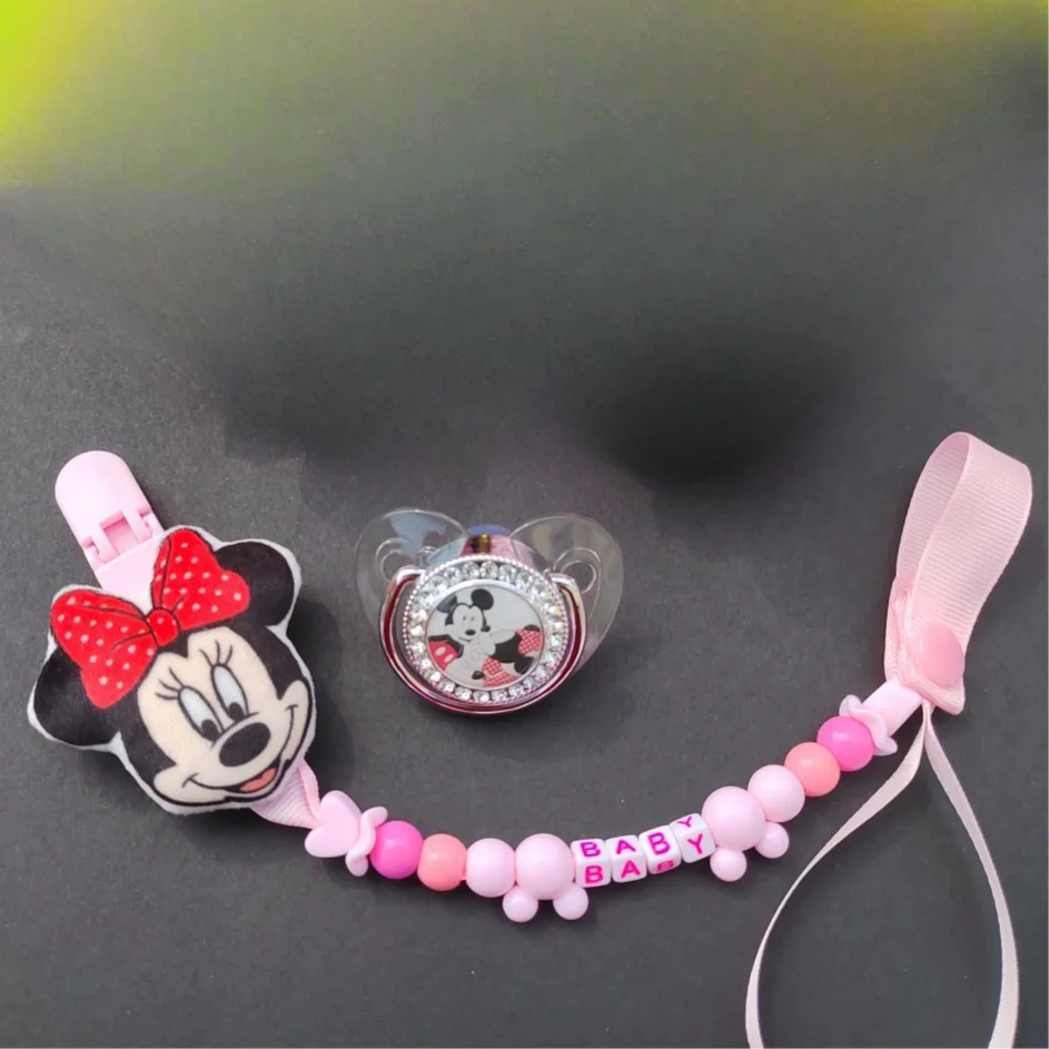 [Nuevo DISEÑO DE Anime] Mickey Mouse bebé pezón con purpurina dorada con clip falso Nuevo traje de gateo Baby shower regalo 0-24M bebé chupeta de luxo