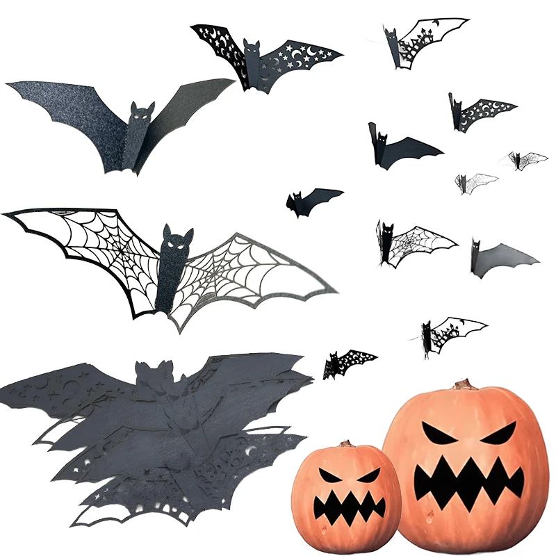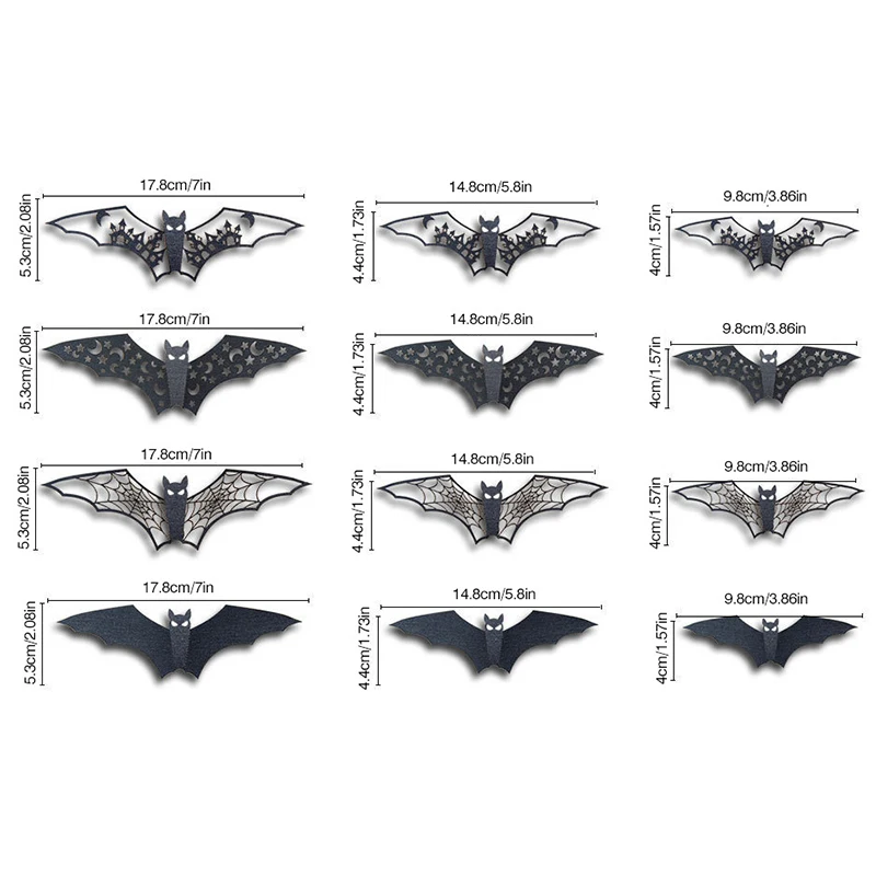 Comprar Nuevo estilo, 12 Uds., pegatina de murciélago hueca 3D, mezcla de varios tamaños, pegatina de murciélago de terror negro, decoración de ambiente festivo de Halloween ZYF
