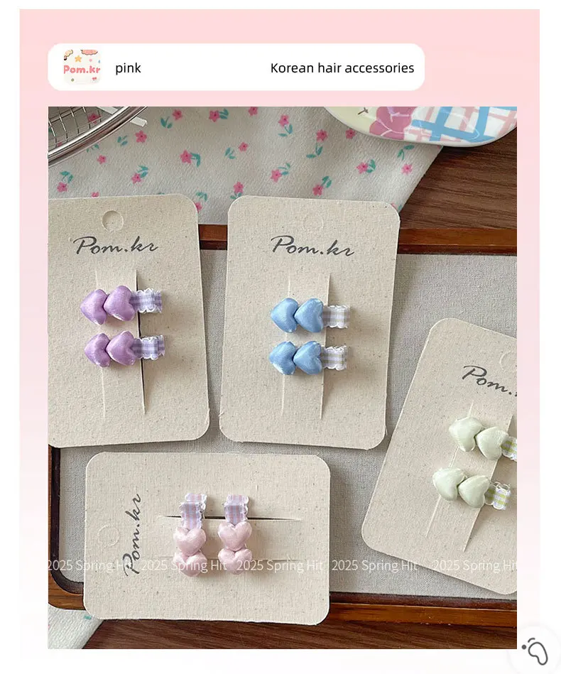 Nuevo estilo coreano a cuadros corazón envoltura completa pinzas para el cabello para niña dulce estilo corazón flequillo lateral frente Clip plano accesorios para el cabello