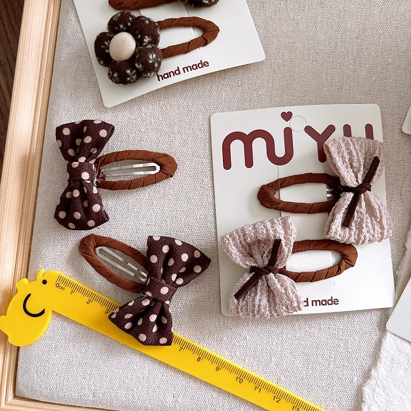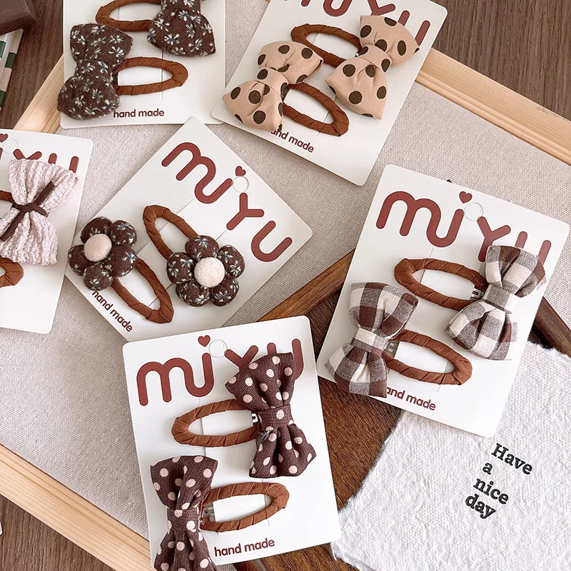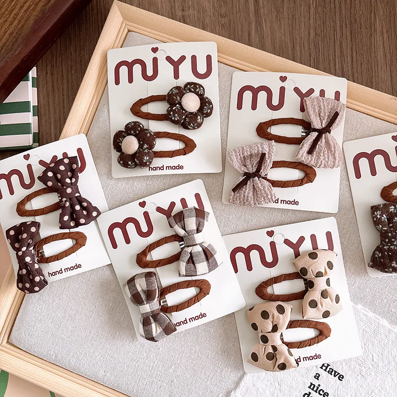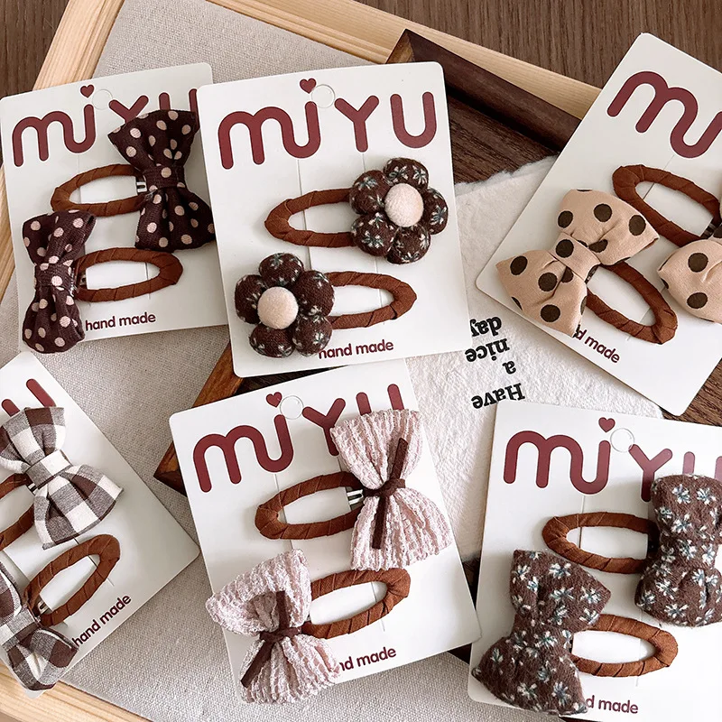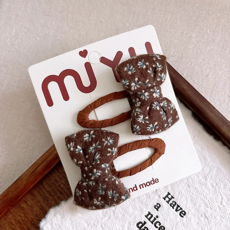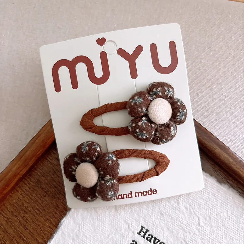 2 unids/set de pinzas para el pelo con lazo de tela marrón para niñas, Otoño Invierno, nueva horquilla para bebé con diseño de flores, pinzas para la cabeza suaves para niños pequeños