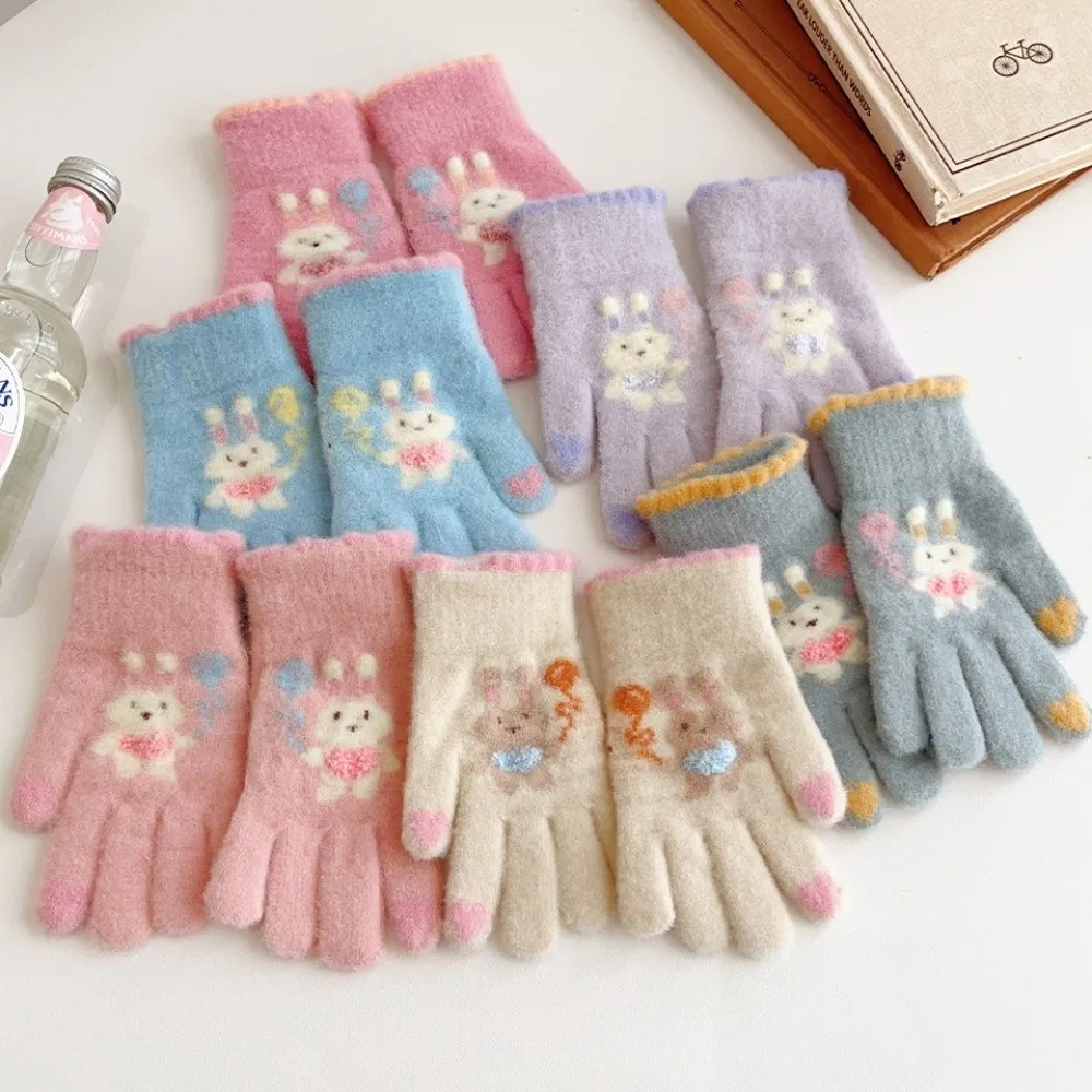 Comprar Nuevo Guantes a prueba de frío, bonitos guantes cálidos a prueba de viento con conejo de dibujos animados, manoplas gruesas para invierno