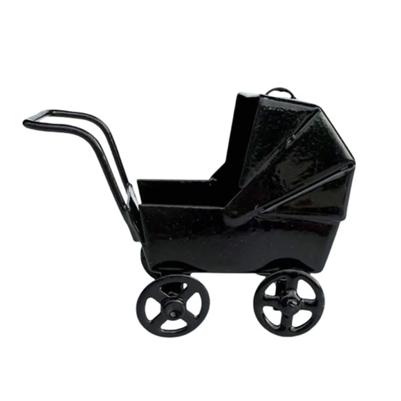 Nuevo Mini cochecito de hierro rosa para casa de muñecas a escala 1/12, modelo bonito, cochecito de muñecas en miniatura, juguetes, Mini casa, rueda pequeña, modelo de carretilla, decoración