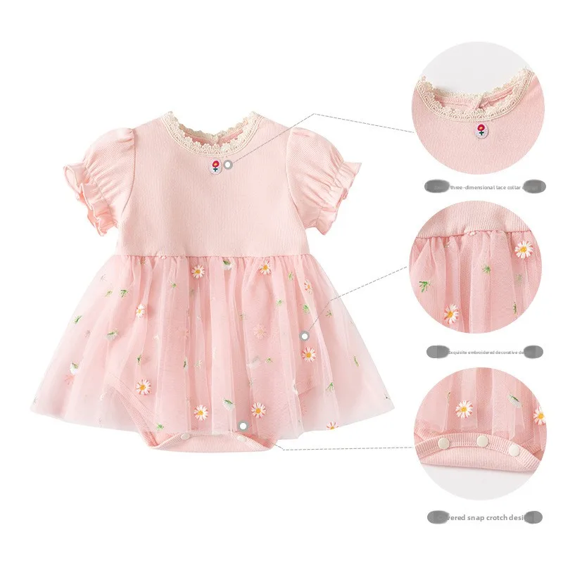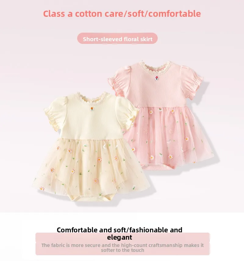 Nuevo mono de verano para bebé con vestido estampado de volantes en red-Body dulce de cumpleaños para bebés