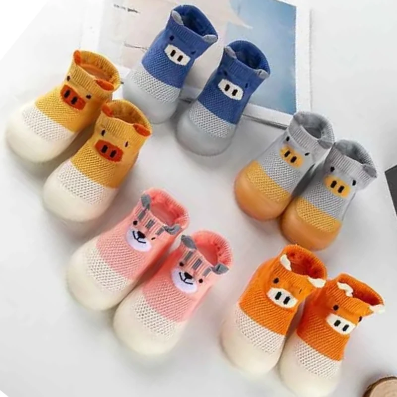 Comprar Nuevo Producto, calcetines de rejilla transpirables, zapatos de suela blanda para bebé, zapatos antideslizantes para interiores para niños pequeños, calcetines bonitos de estilo de dibujos animados para cerdos