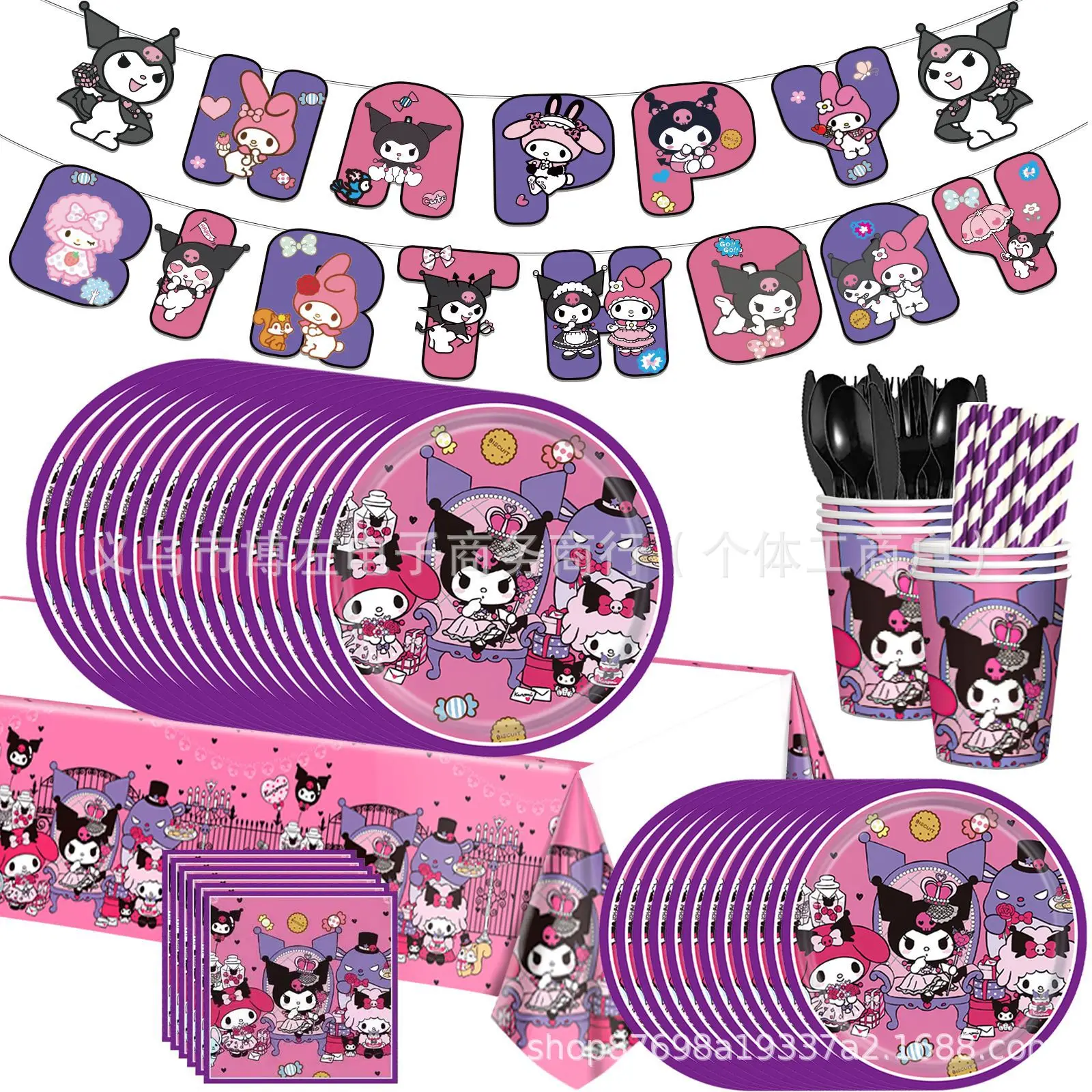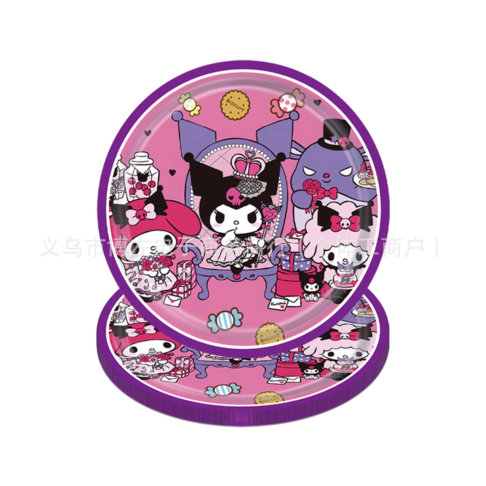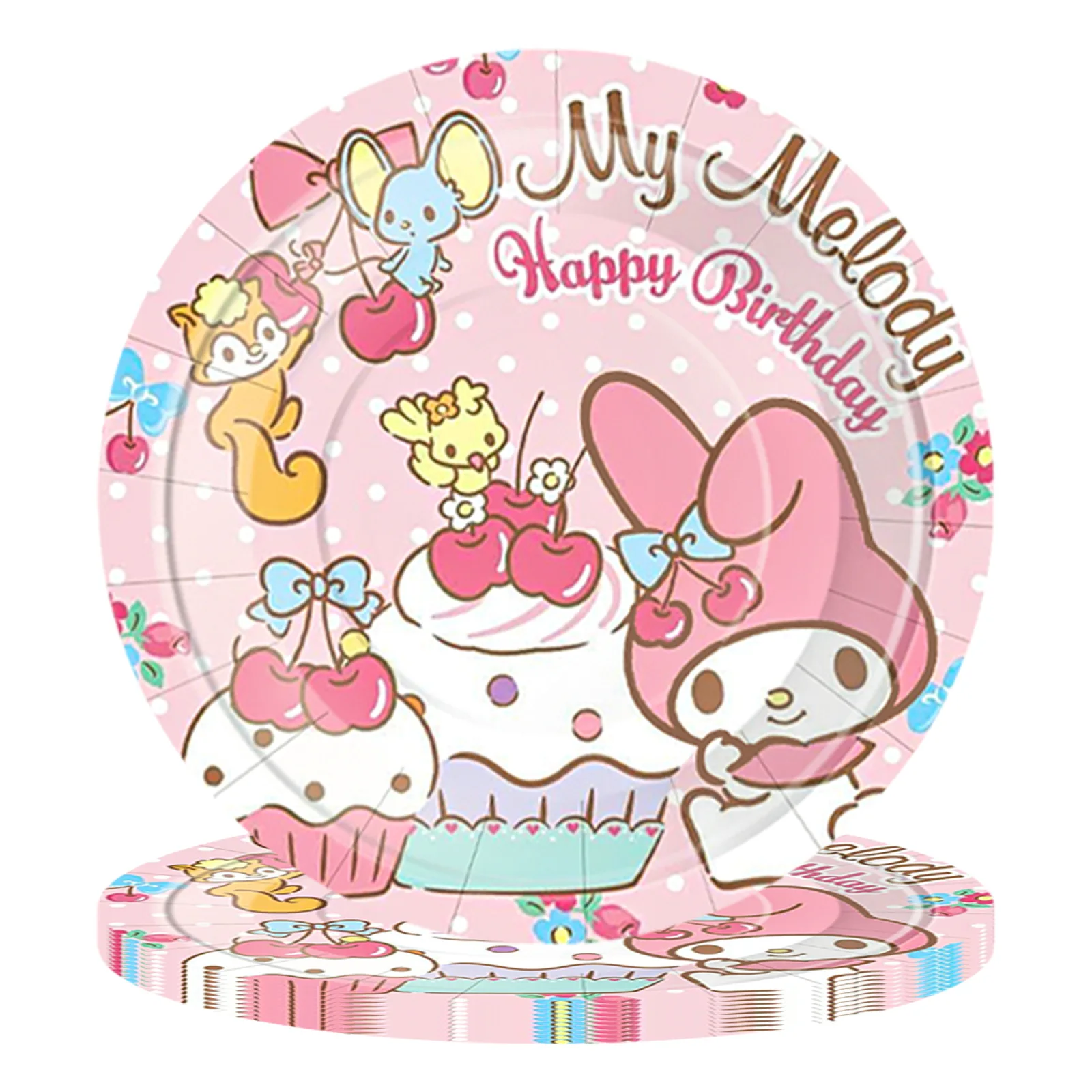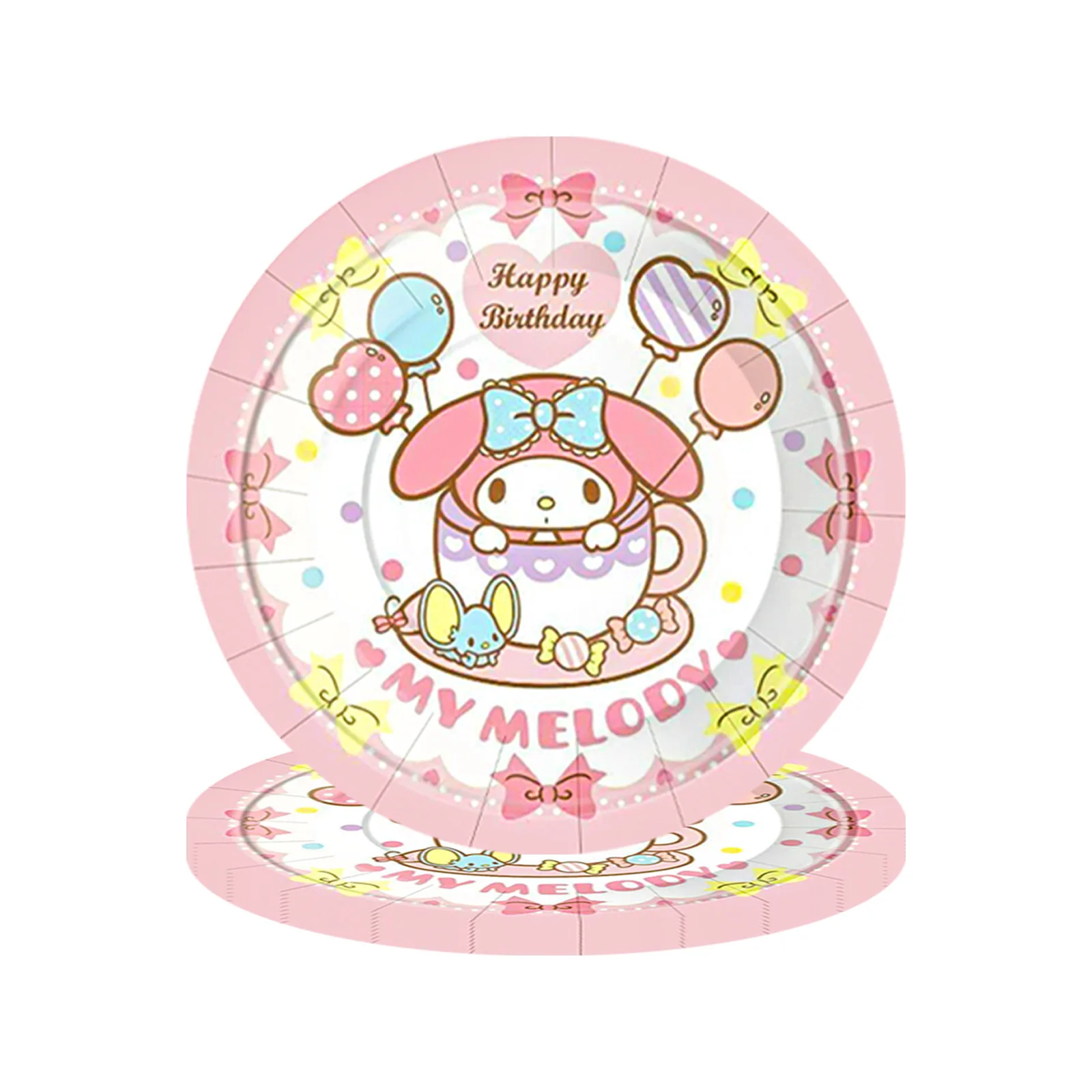 Comprar Nuevo Sanrio-Juego desechable con tema Melody Kuromi, decoración para fiesta de cumpleaños para niños, plato de papel de dibujos animados, servilleta, mantel, regalos