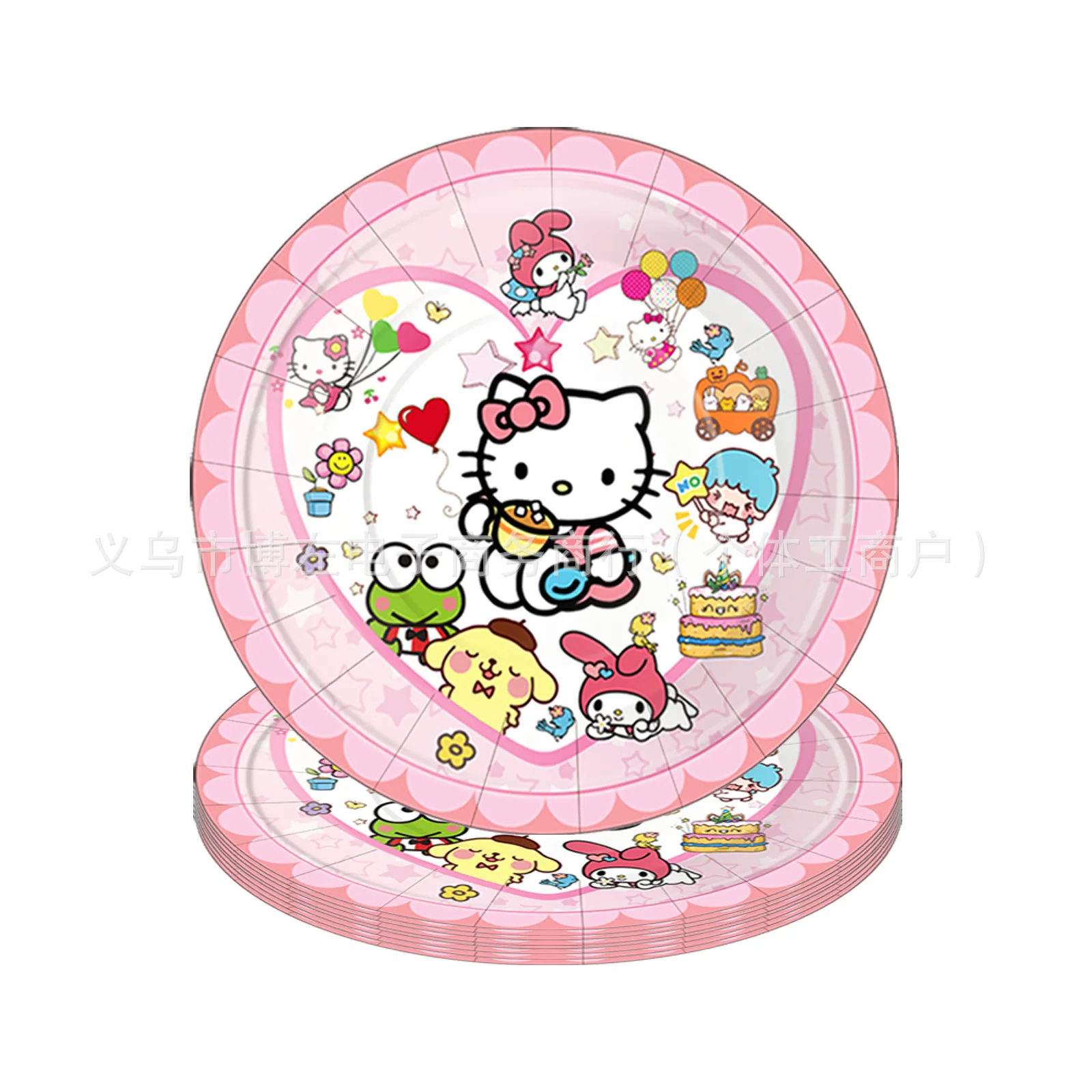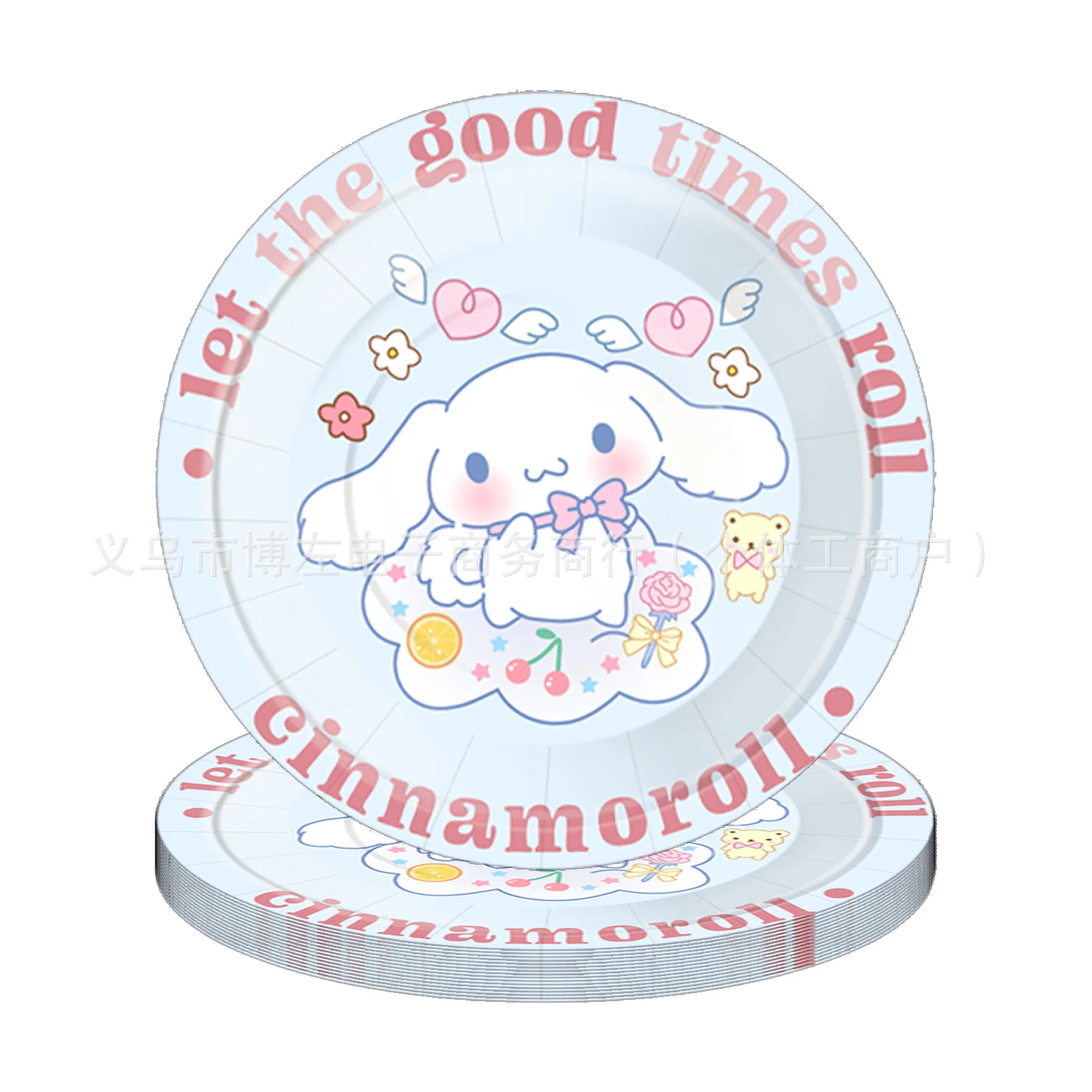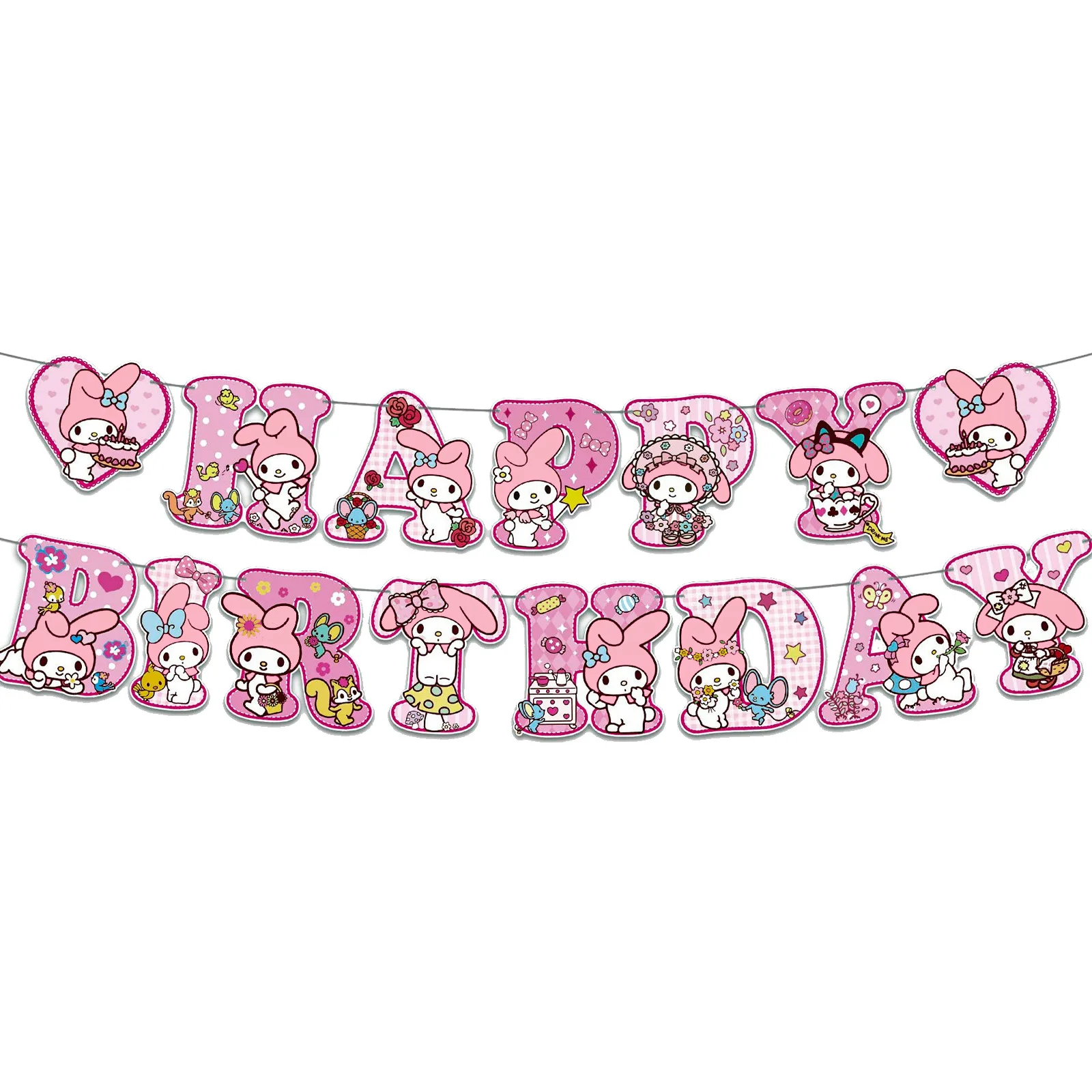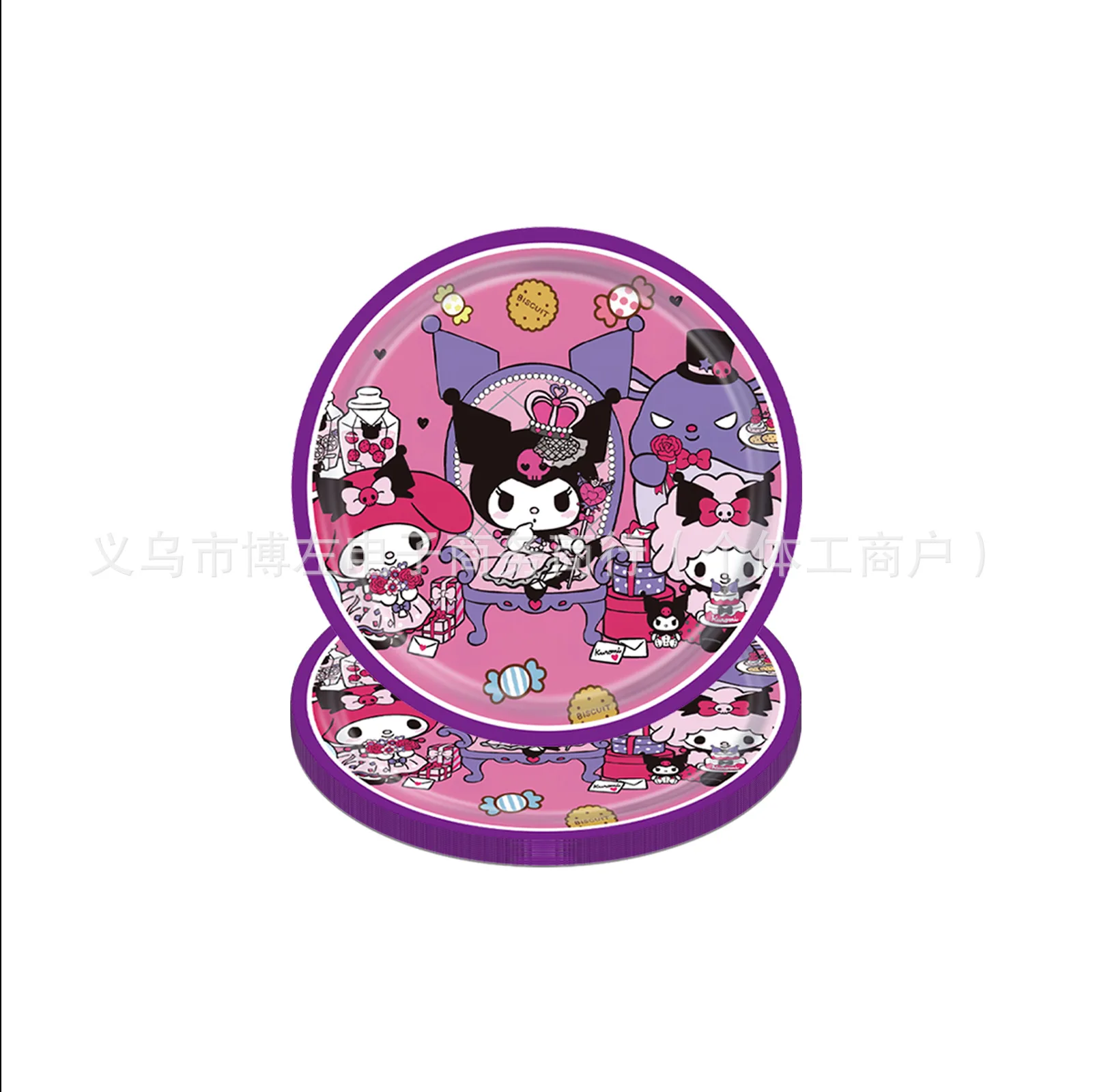 Comprar Nuevo Sanrio-Juego desechable con tema Melody Kuromi, decoración para fiesta de cumpleaños para niños, plato de papel de dibujos animados, servilleta, mantel, regalos