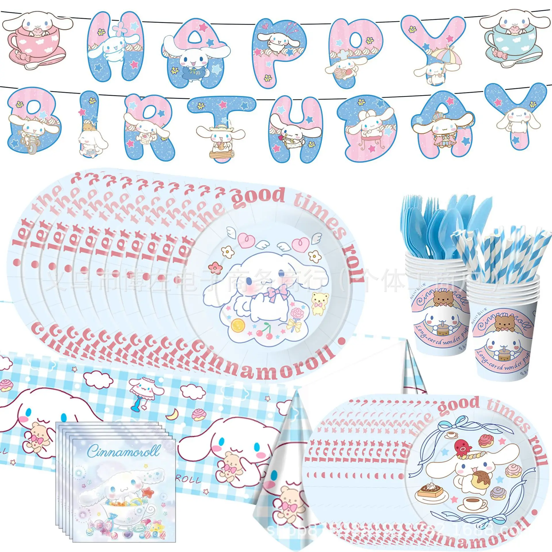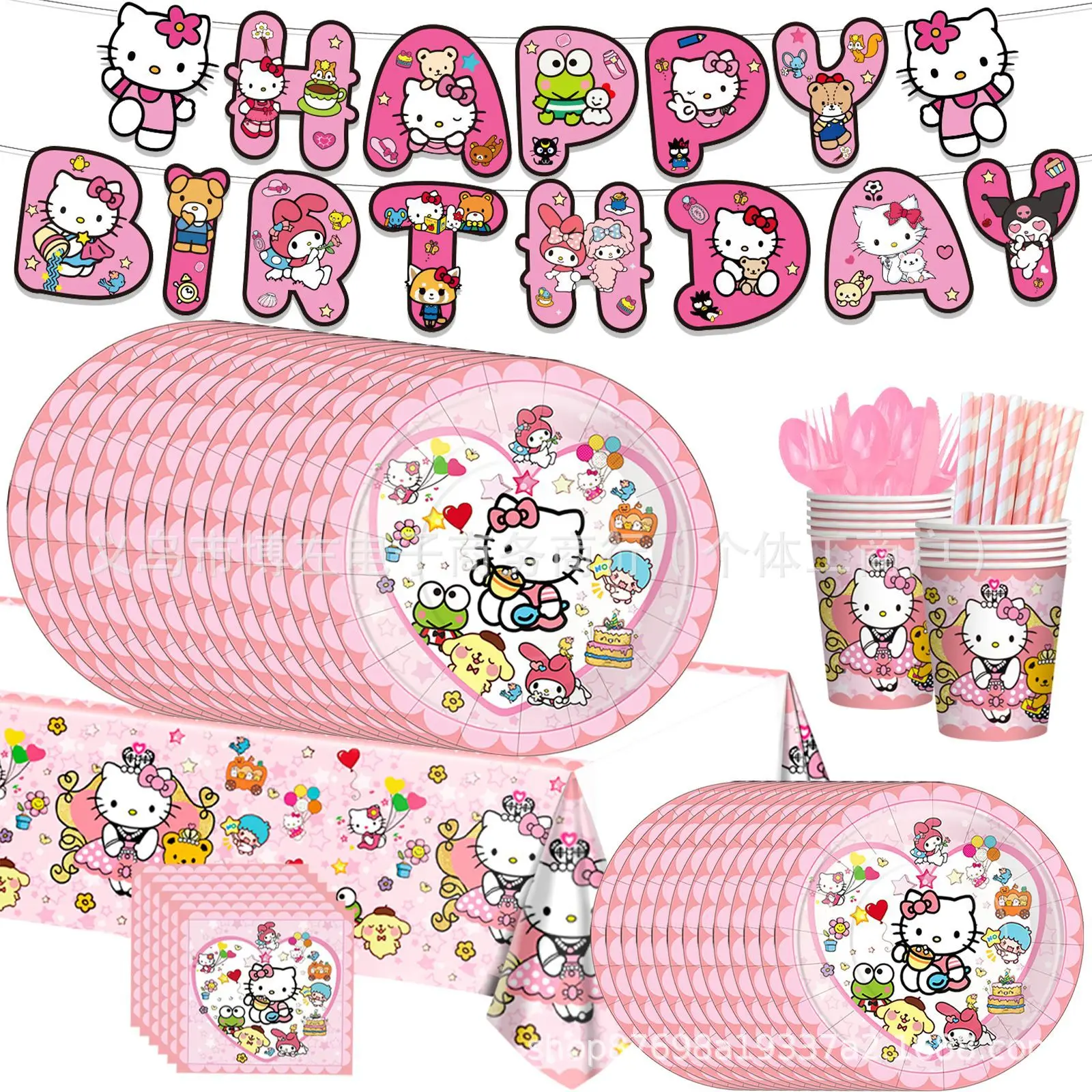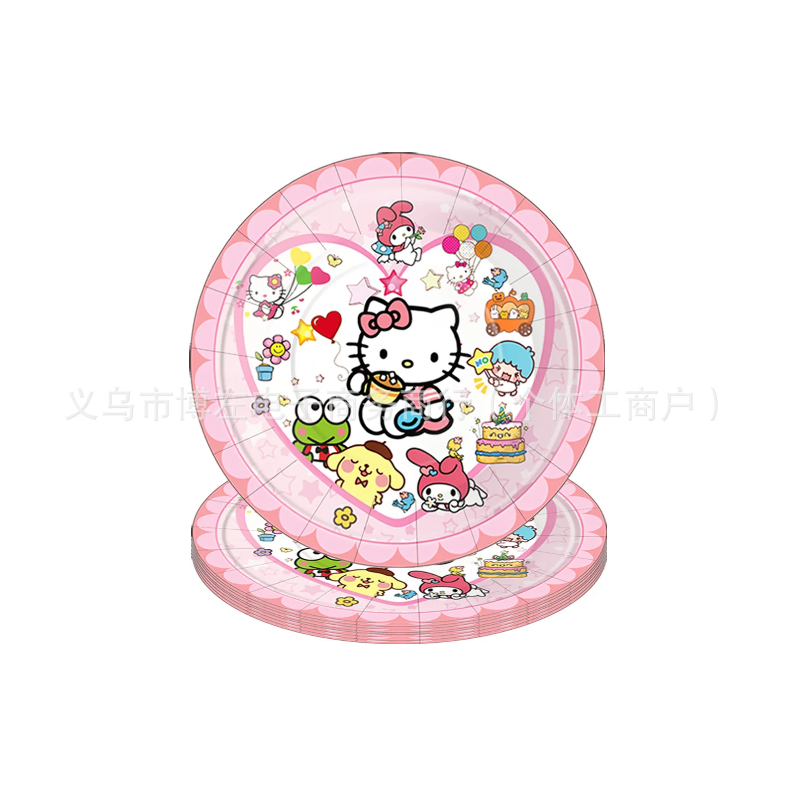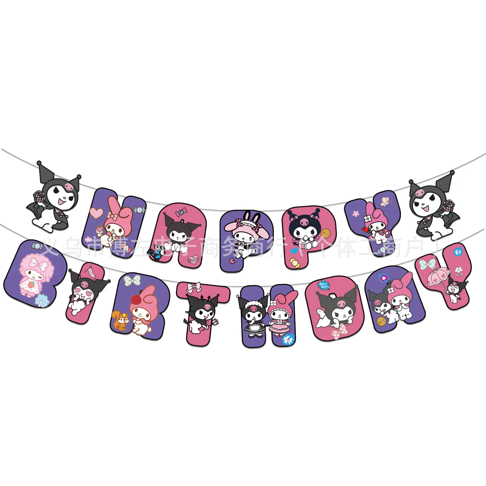 Comprar Nuevo Sanrio-Juego desechable con tema Melody Kuromi, decoración para fiesta de cumpleaños para niños, plato de papel de dibujos animados, servilleta, mantel, regalos