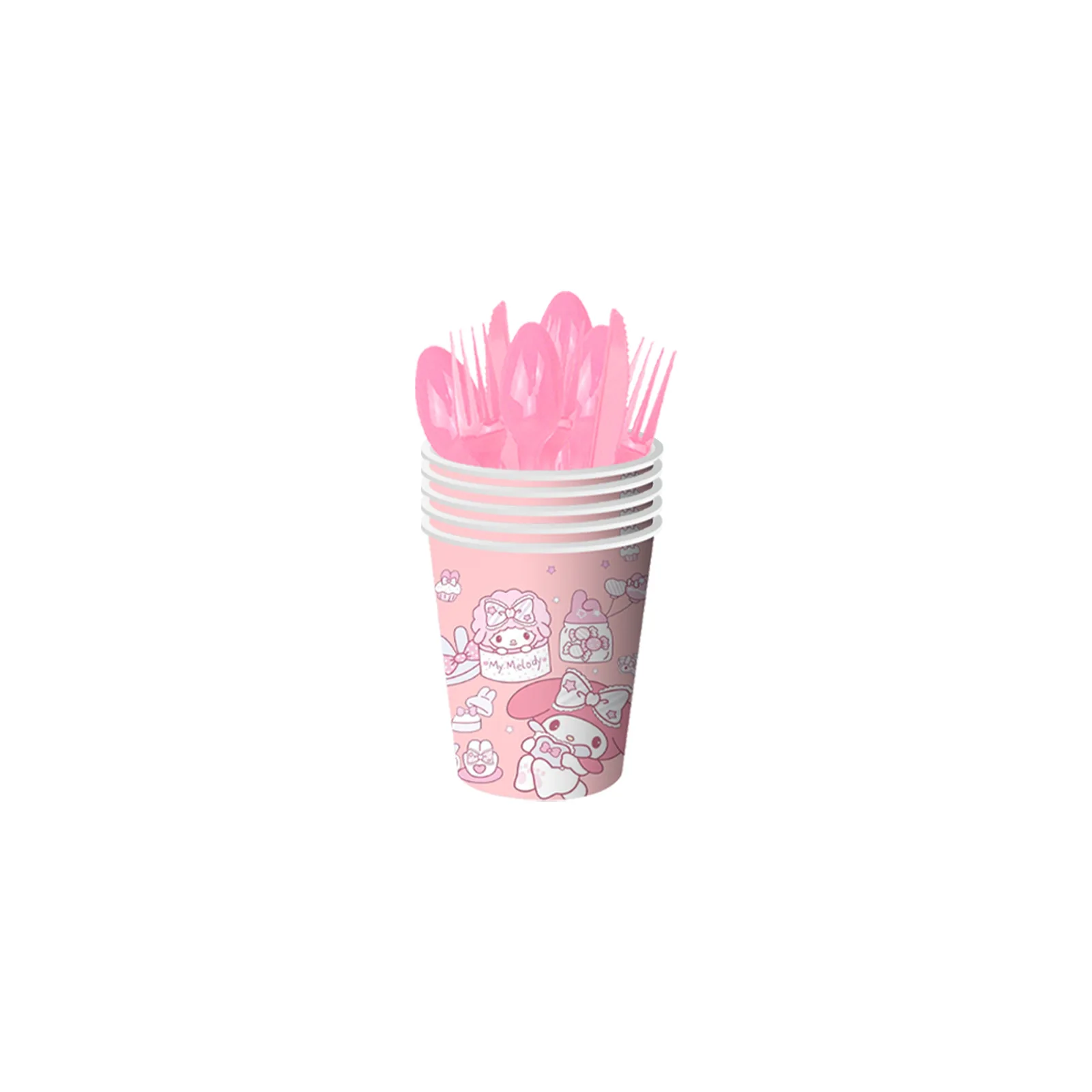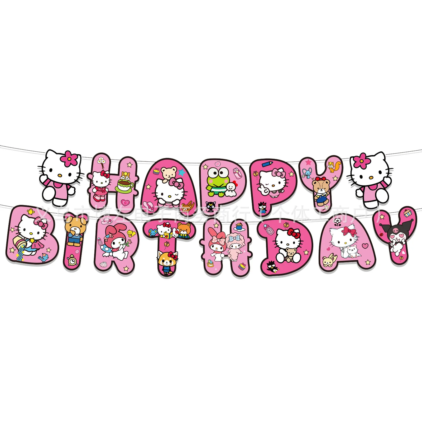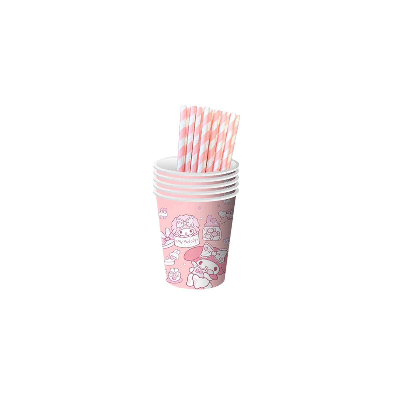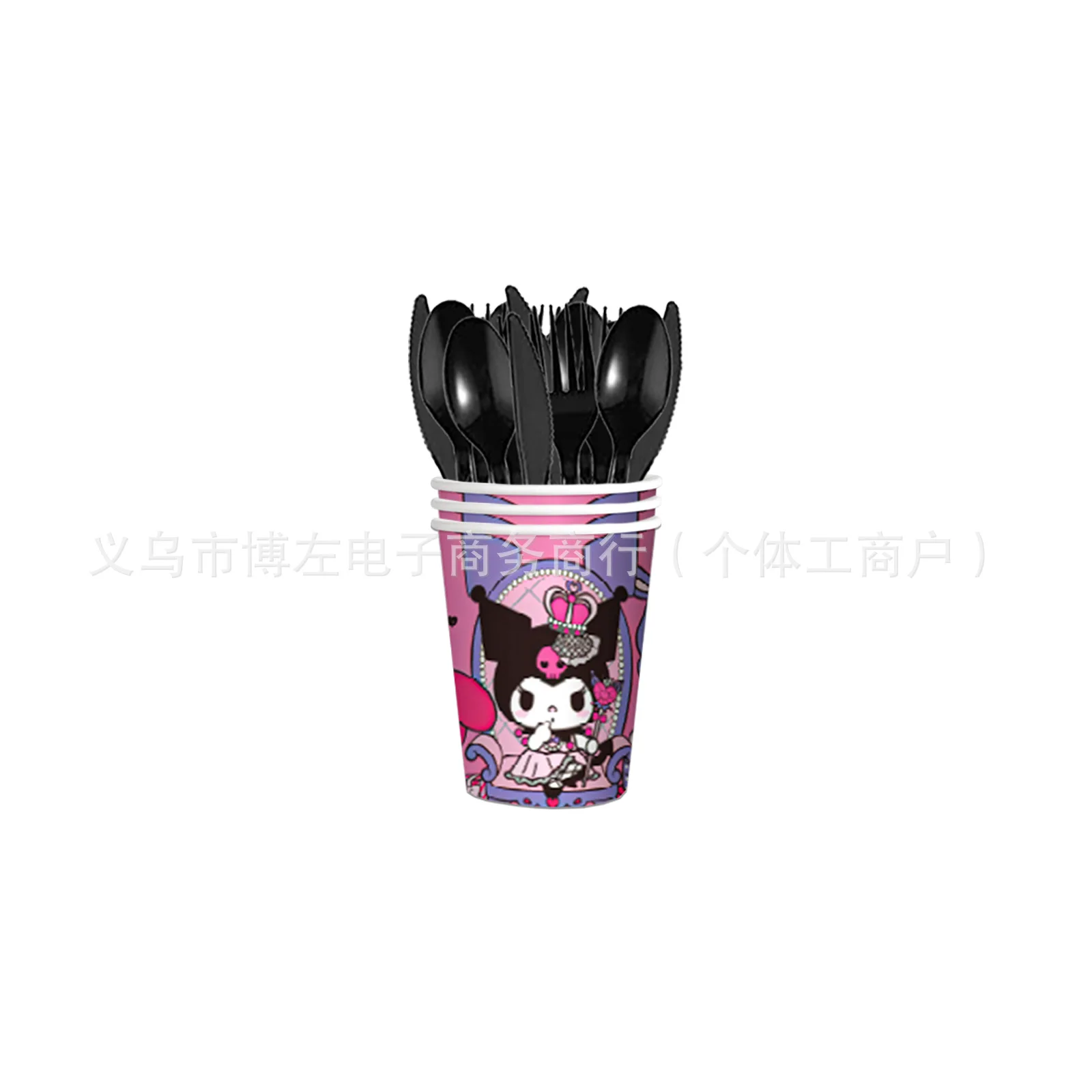 Comprar Nuevo Sanrio-Juego desechable con tema Melody Kuromi, decoración para fiesta de cumpleaños para niños, plato de papel de dibujos animados, servilleta, mantel, regalos