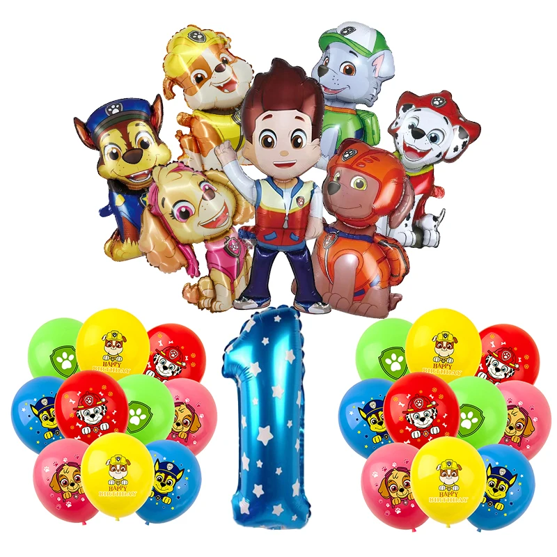 Comprar Nuevo tema Blue PAW Patrol Skye decoraciones para fiesta de cumpleaños globos de aluminio vajilla desechable telón de fondo platos tazas juguetes para niños regalos