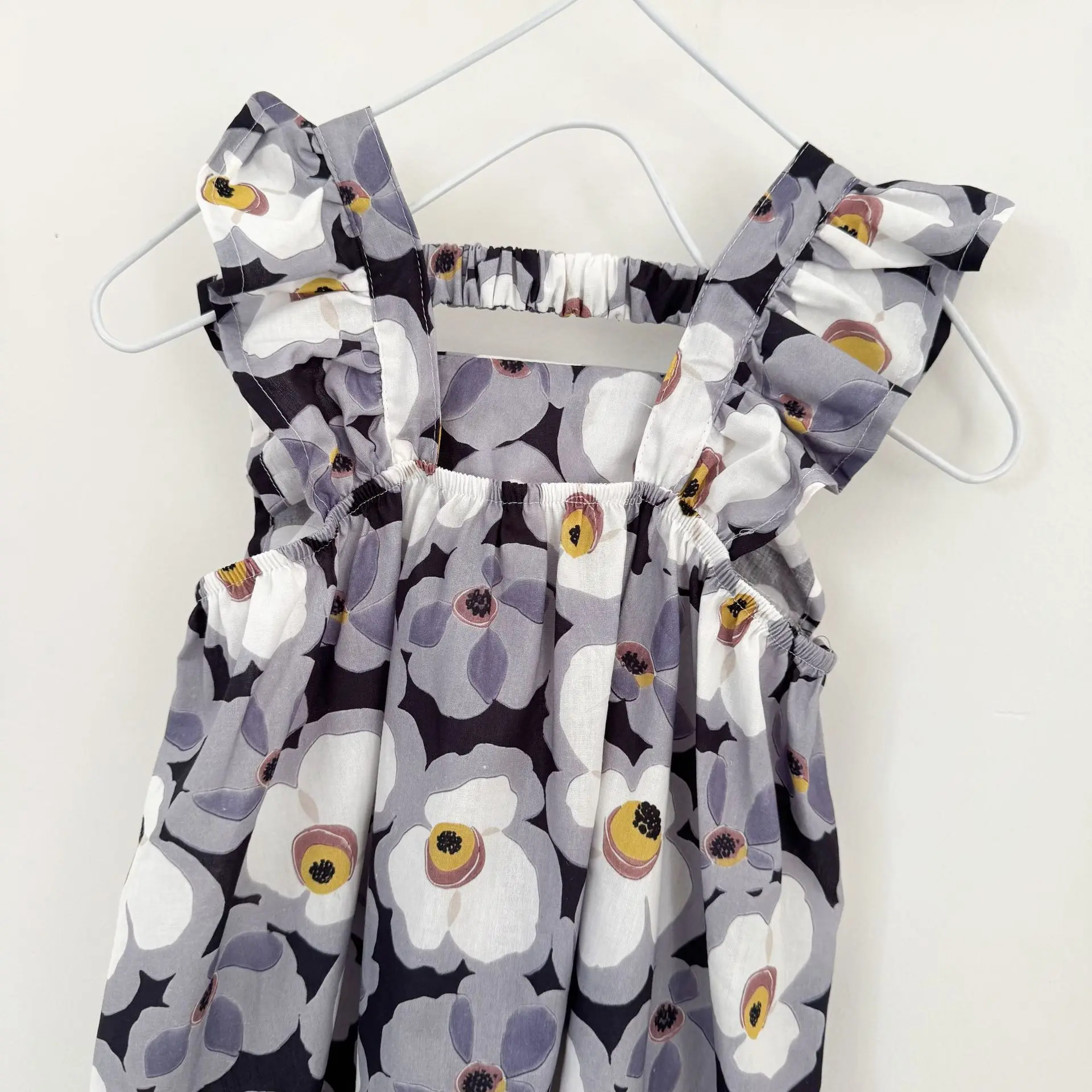 Comprar Nuevo vestido de princesa de manga voladora dulce de verano Floral para niñas vestido de algodón con estampado de flores con volantes