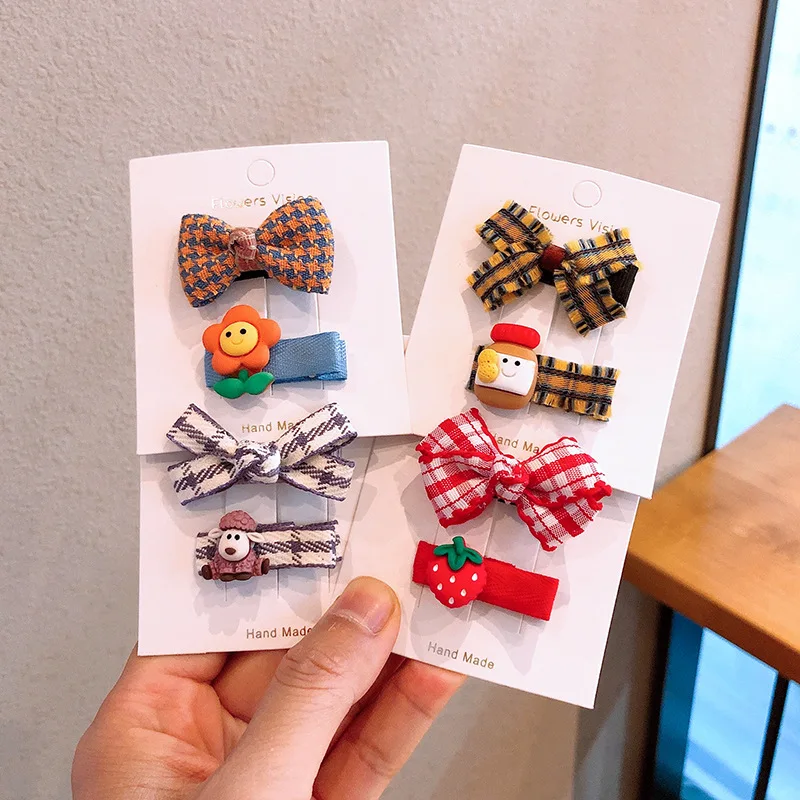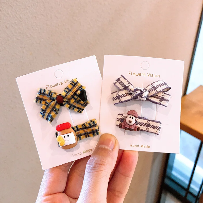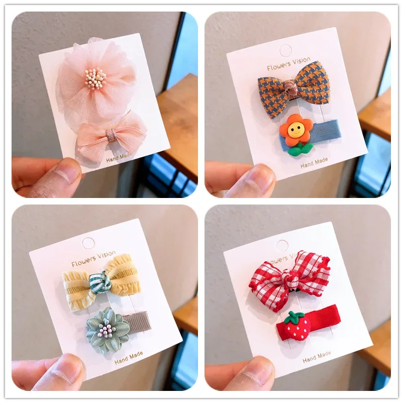Nuevos 2 uds Gilrs lindo lazo flor pinzas para el cabello encaje a cuadros Kint horquillas para niñas estilo coreano accesorios para el cabello para niños