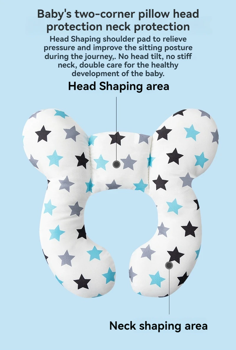Almohadas para dormir en forma de U suaves de algodón de dibujos animados para niños, cochecito de bebé, almohada para niños, almohada funcional para cochecito de bebé