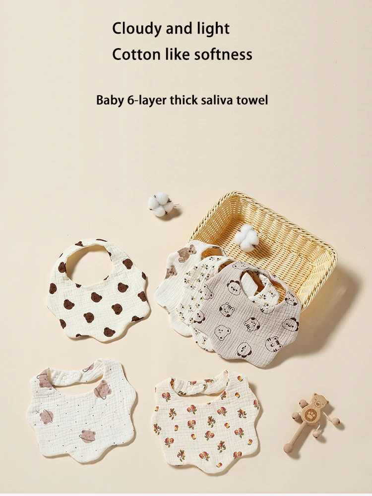 Comprar Nuevos Baberos de gasa de algodón de 6 capas para bebés, bonito estampado de dibujos animados, toalla de Saliva para alimentación, paño suave para eructar para niños recién nacidos
