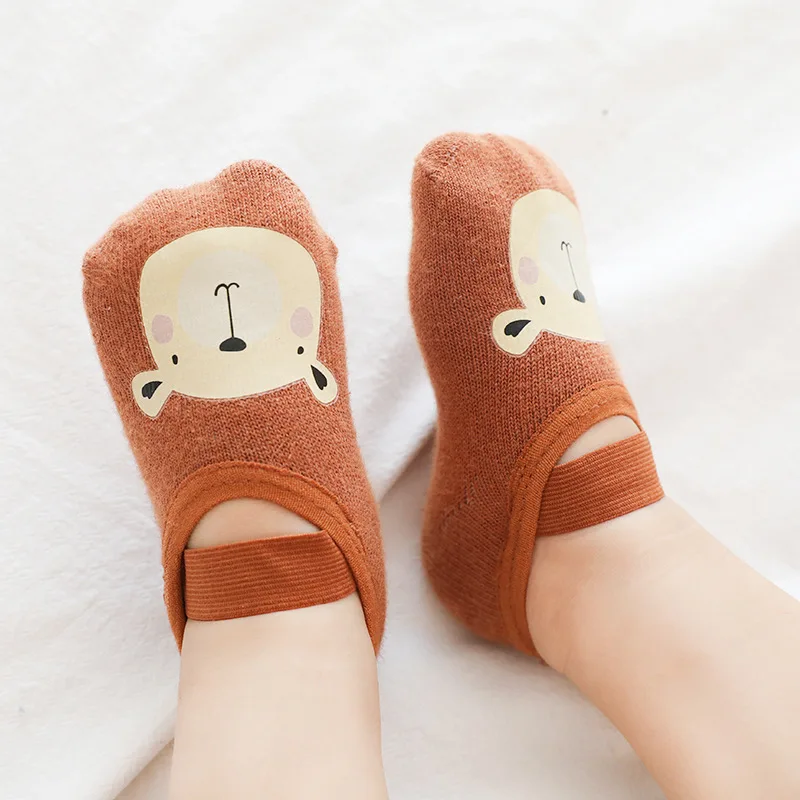 Nuevos calcetines antideslizantes para bebé de 1 a 3 años, calcetines tobilleros con dibujos animados para gatear, calcetines de algodón con lazo ajustable para niños pequeños