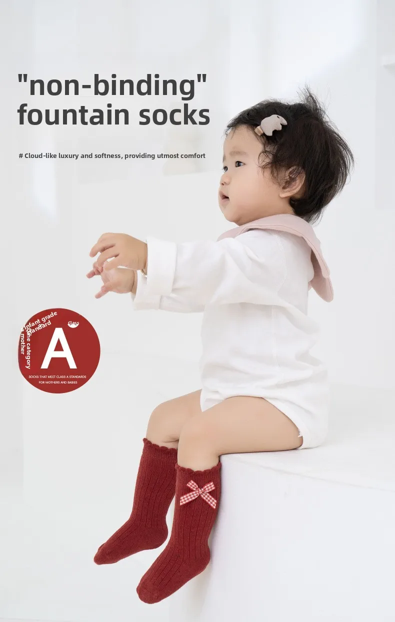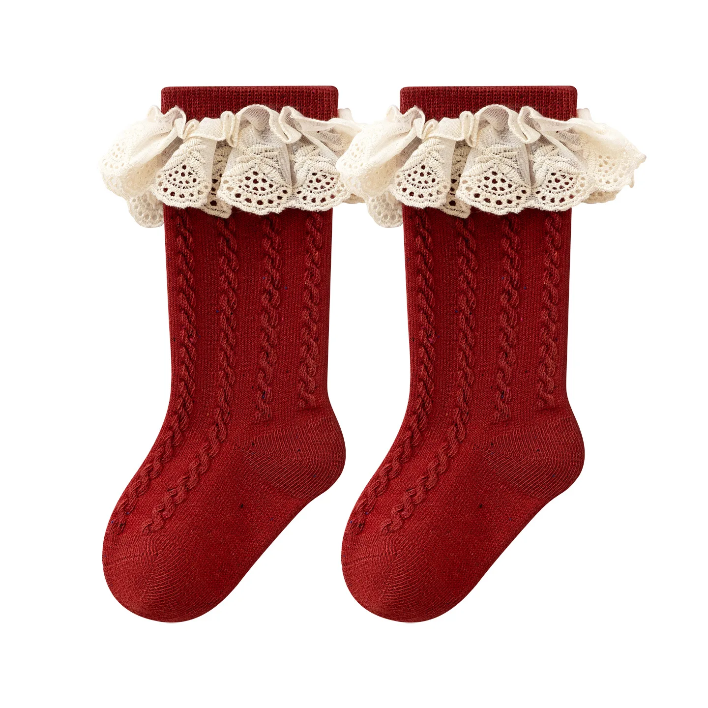 Nuevos calcetines de princesa de otoño para bebés y niñas: encaje rojo, lazo, ideales para niños pequeños, niñas mayores, bebés, Año Nuevo.