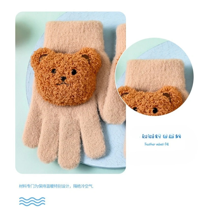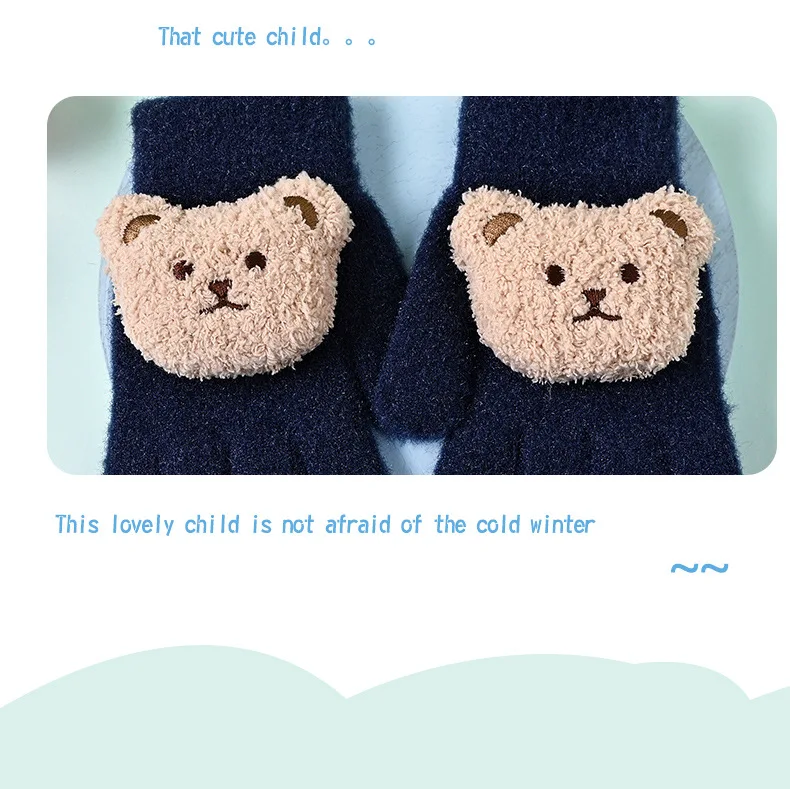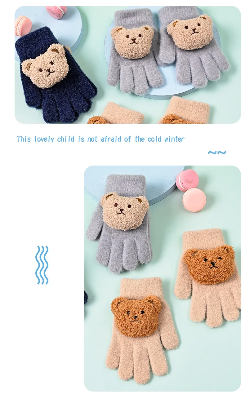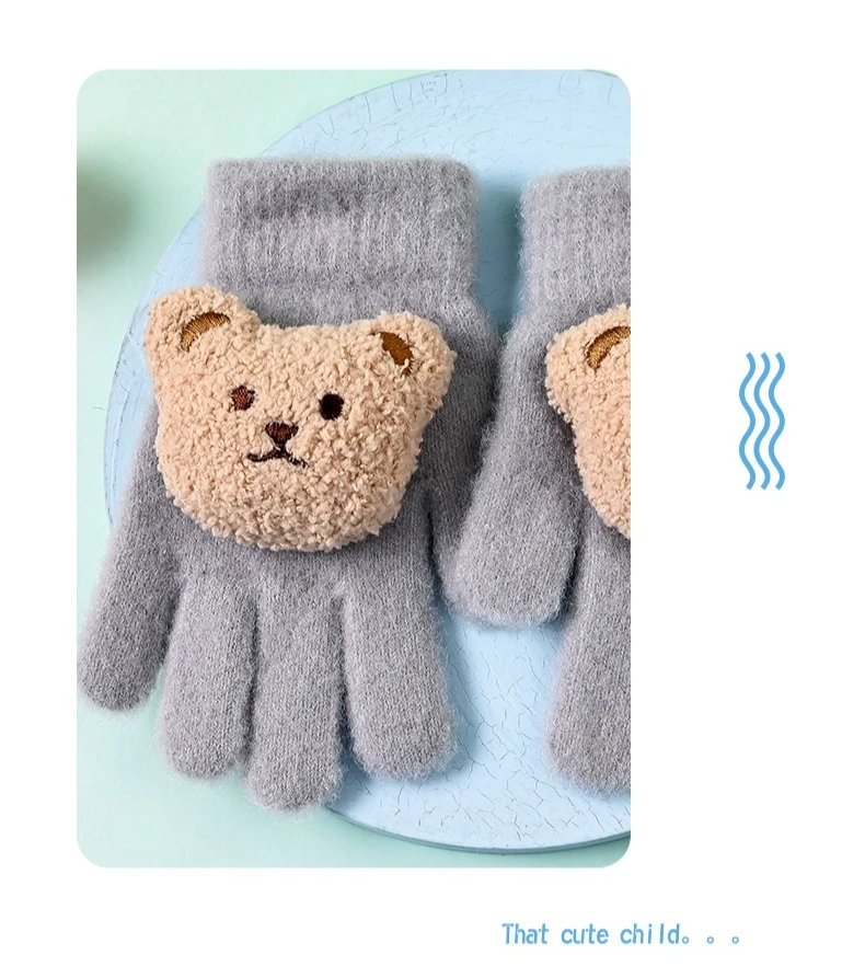 Nuevos guantes bonitos de oso de dibujos animados para niños, manoplas térmicas de invierno para niños pequeños, guantes cálidos para jugar al aire libre con animales Kawaii (1-8 años)