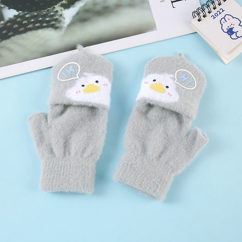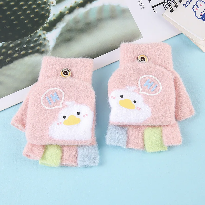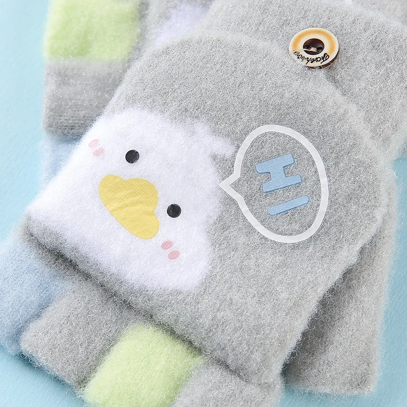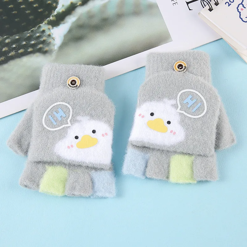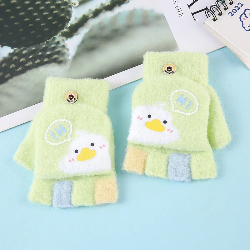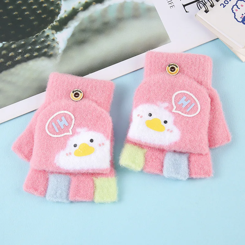 Nuevos guantes de invierno para niños: engrosados, medio dedo y ribete, tejidos con diseño de dibujos animados, cálidos dedos separados para niños, niñas