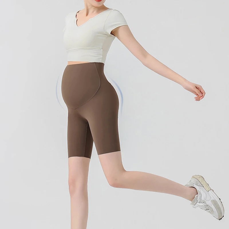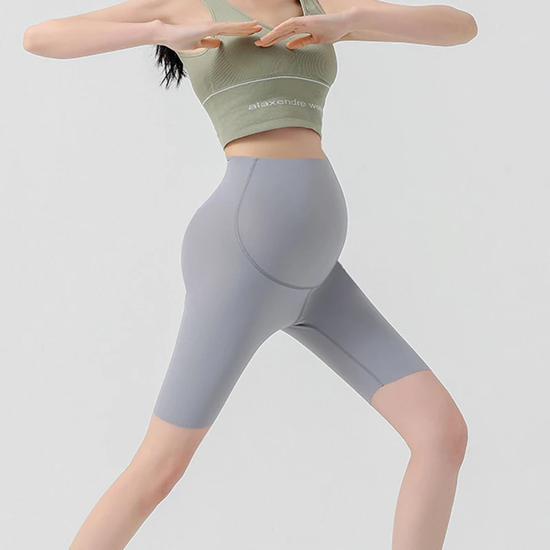 Comprar Nuevos pantalones de maternidad, mallas finas de cinco cuartos para primavera y verano, pantalones de tiburón para Yoga, pantalones cortos sin costuras con soporte para el vientre