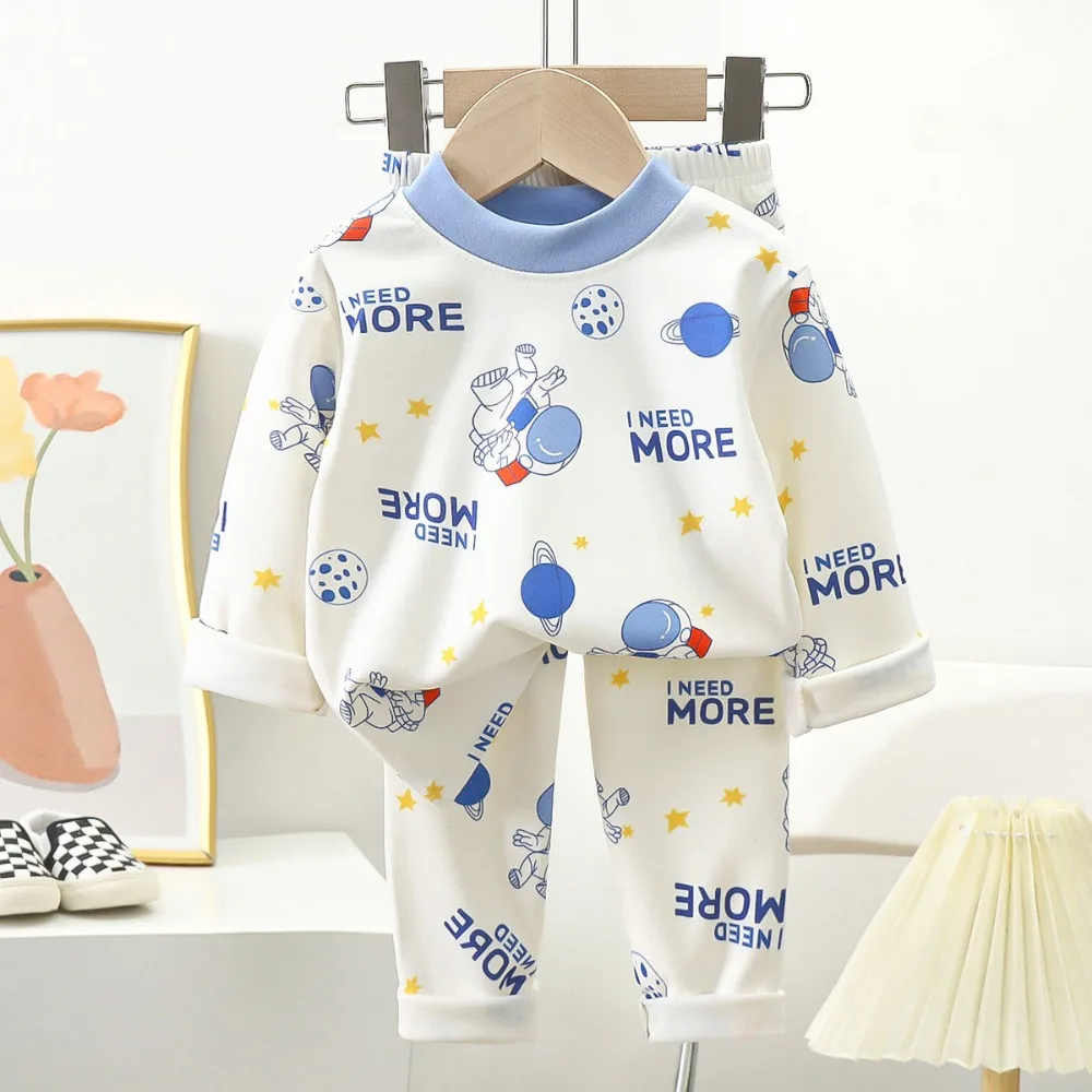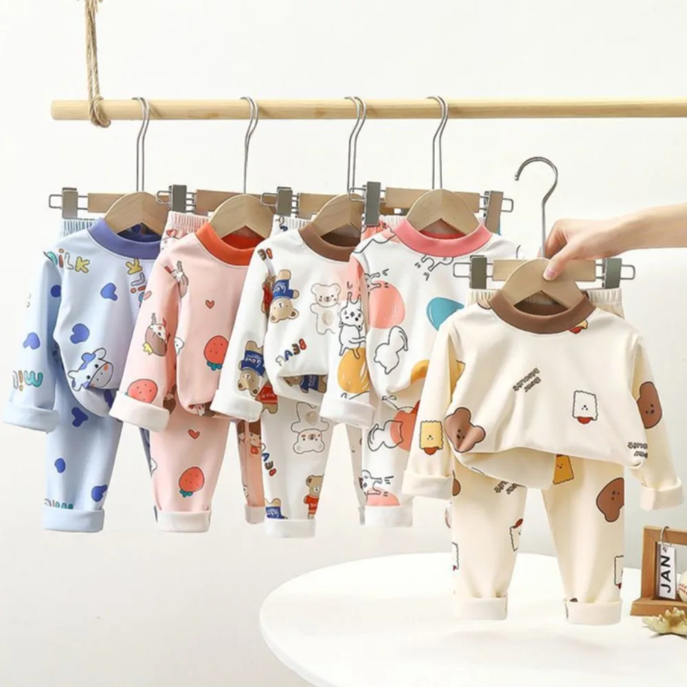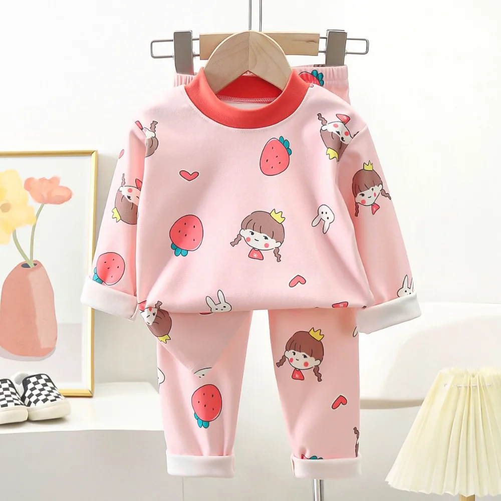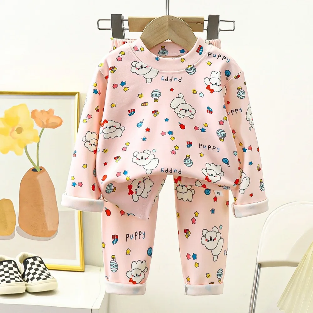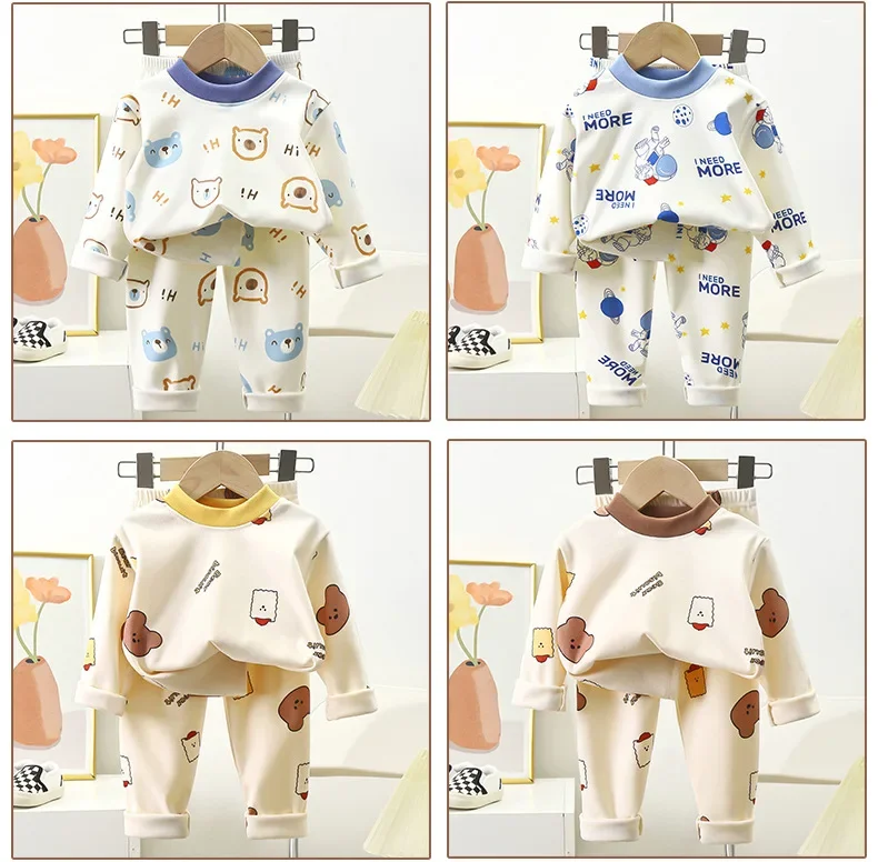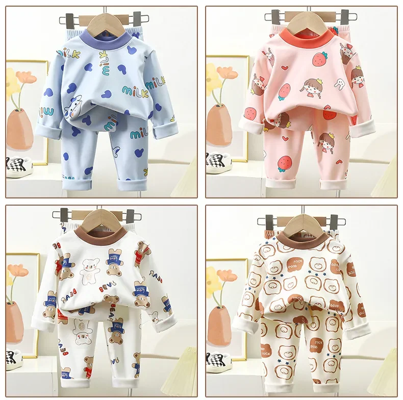 Nuevos pijamas gruesos y cálidos de otoño para niños y niñas, camiseta de manga larga con bonitos dibujos, Top + Pantalones, ropa de dormir para bebés, conjunto de ropa interior